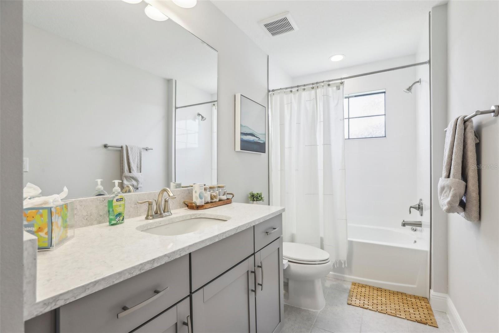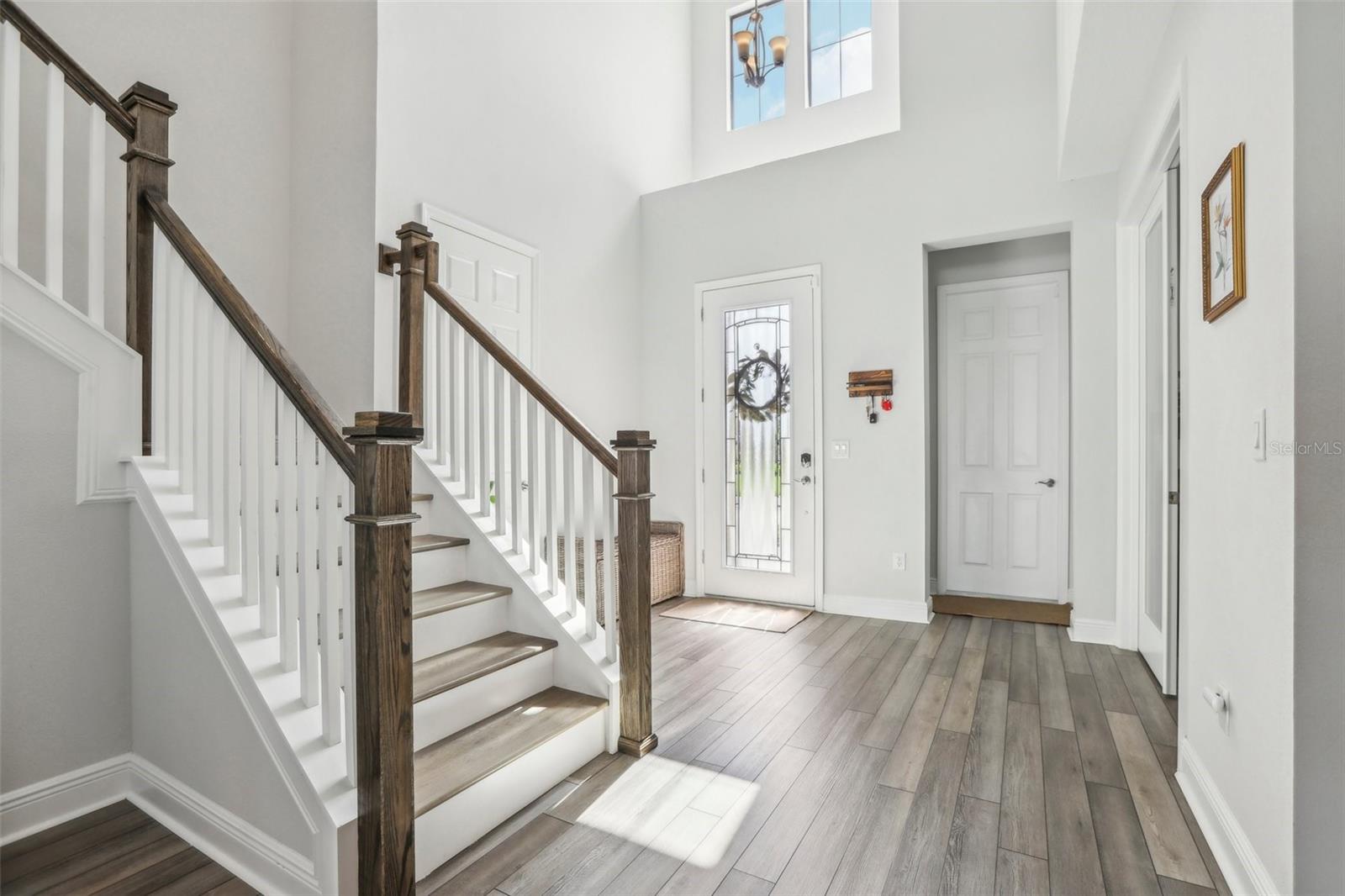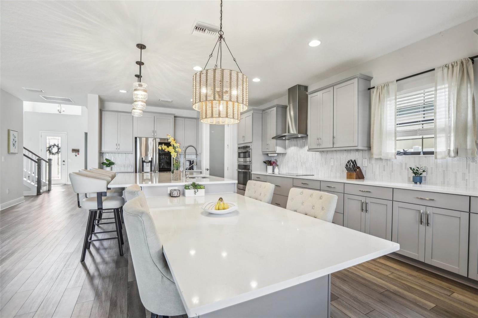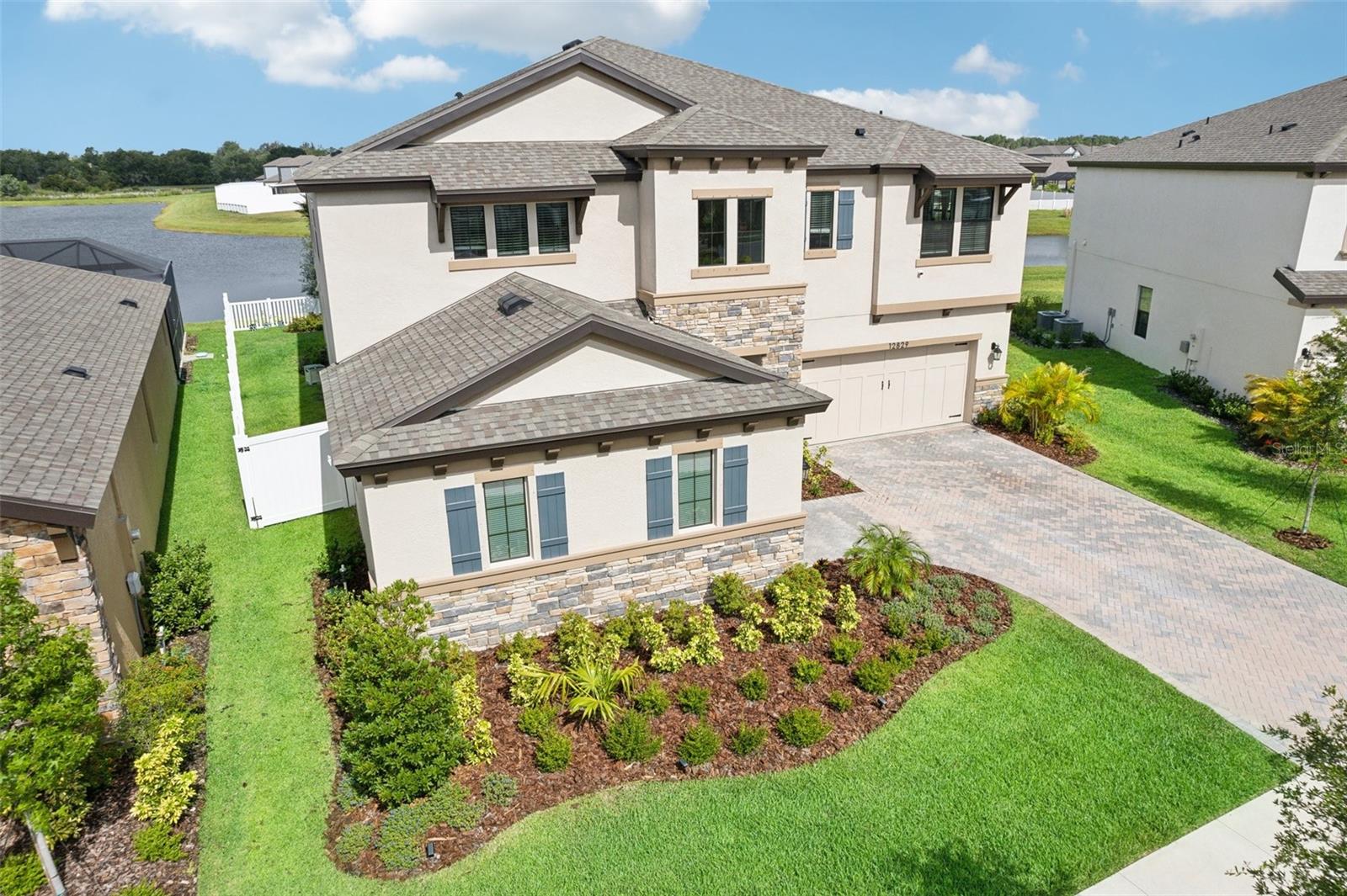 Confira este elegante Belmar com 4.219 pés quadrados de área útil, 5 quartos + escritório, 4,5 banheiros + garagem dividida para 3 carros que inclui uma suíte para sogros e sala de jantar separada. Um loft enorme que leva à varanda recém-protegida no andar de cima, onde você pode relaxar e desfrutar da linda vista da ÁGUA junto com o pôr do sol de tirar o fôlego! Esta propriedade deslumbrante oferece uma planta aberta e arejada com tetos altos, portas de 2,5 metros, cozinha gourmet, bancadas de quartzo e outros recursos de luxo em toda a casa. SEM TAPETE em toda a casa. LVP com aparência de madeira combinando em todo o primeiro andar, quartos, loft e azulejos cerâmicos nos banheiros do 2º andar. Outros toques adicionais incluem FENCED YARD, sistema de água por osmose reversa, ventiladores de teto, luminárias atualizadas e racks de armazenamento de garagem montados no teto. A poucos passos da nova piscina comunitária e do parque para cães. A comunidade Triple Creek oferece acesso às melhores escolas, comodidades fantásticas com duas piscinas estilo resort, clubhouse, quadras de tênis, quadra de basquete, academia, trilhas naturais, playground e parque para cães. A uma curta distância a pé da Dawson Elementary e da creche. Perto de Publix, Winn Dixie, Crunch Fitness, escolas, HW 301, I-75 e muito mais. Você vai adorar o charme desta comunidade amigável com eventos regulares de férias, desfiles de carrinhos de golfe e food trucks!