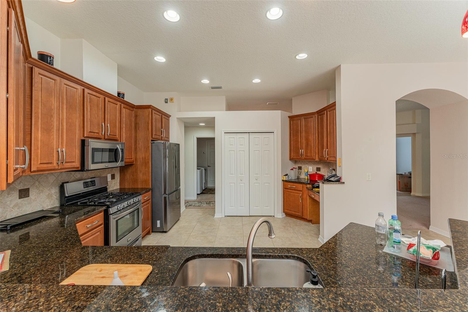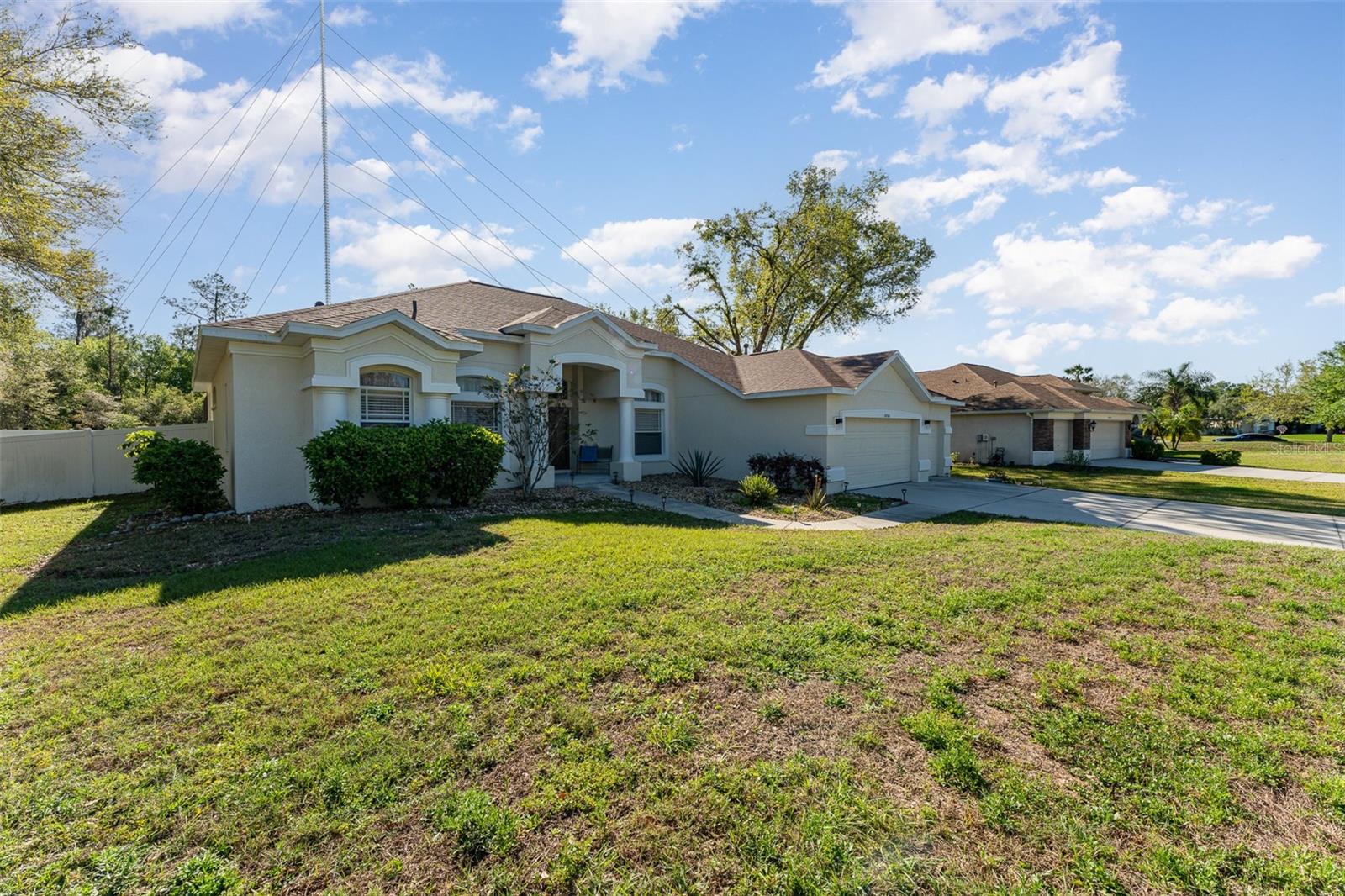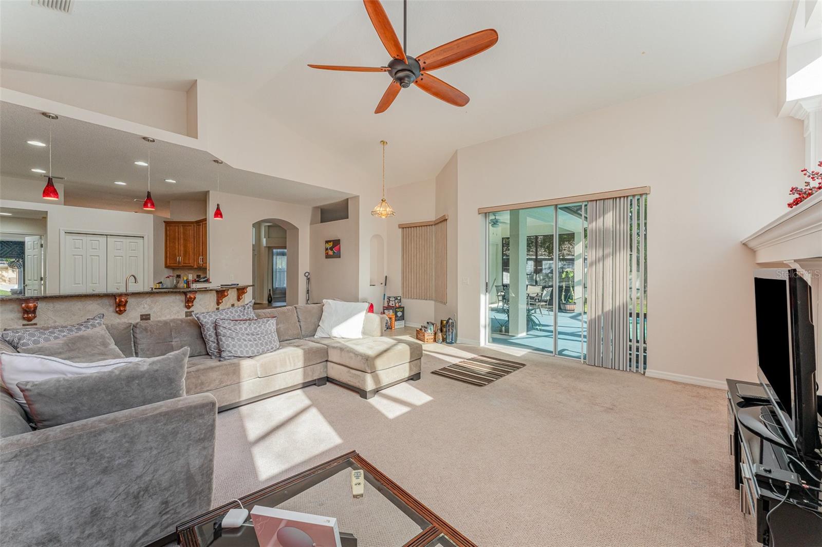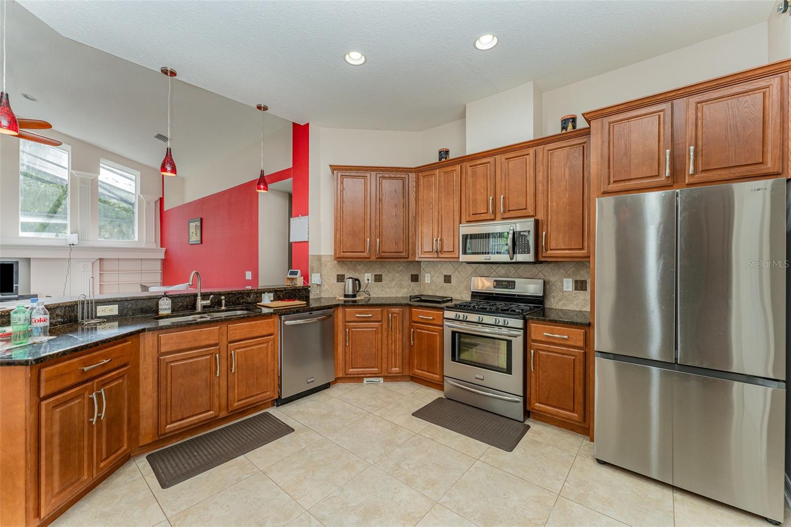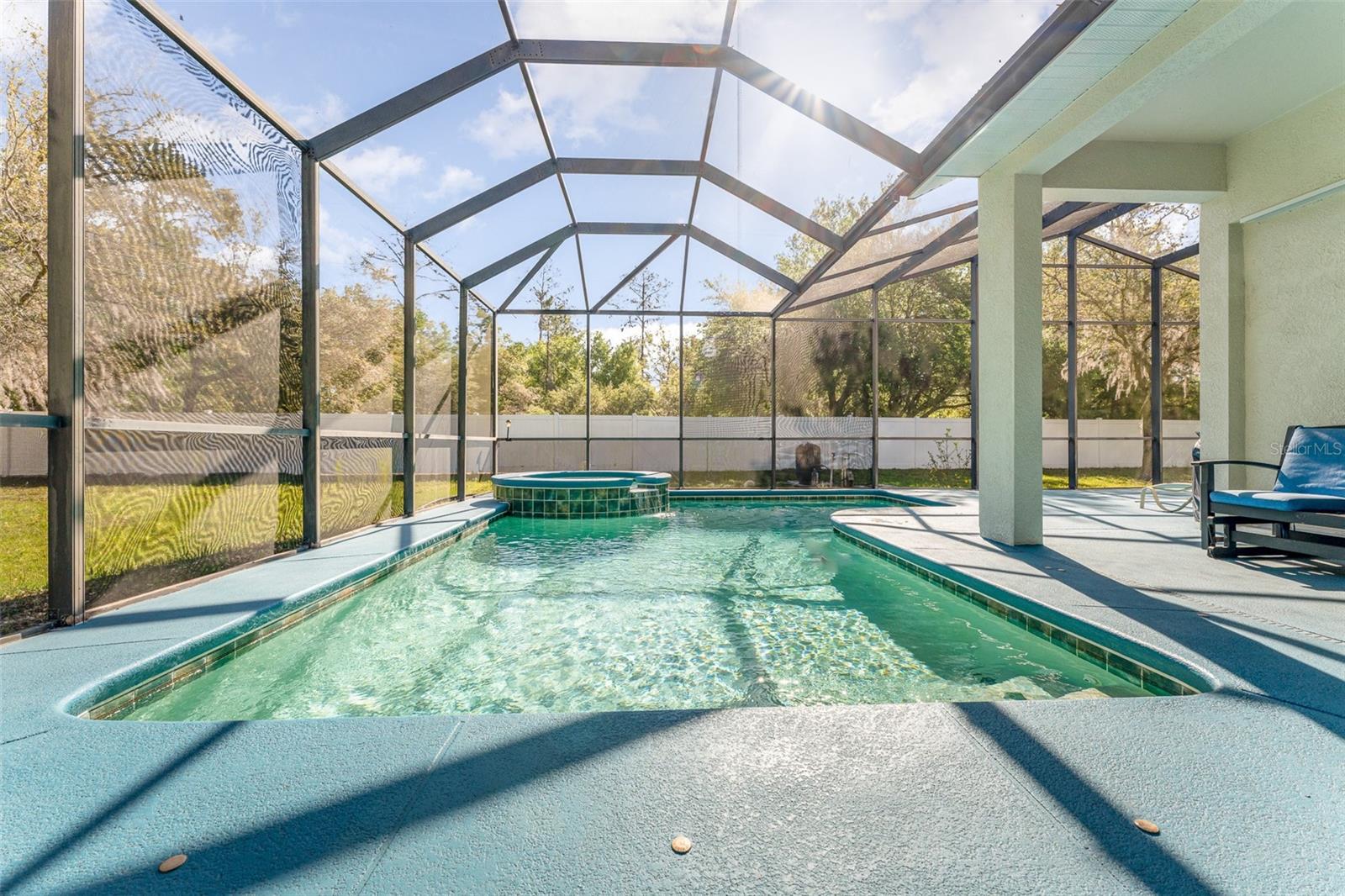 Bem-vindo a esta requintada home de 4 quartos, 3 banheiros e 3 carros, aninhada na cobiçada comunidade Creekside! Situado em quase 1/2 acre, ** novo telhado ** Revelar vistas deslumbrantes da piscina e conservação serena. O expansivo Lanai é perfeito para entretenimento. Com um apelo encantador, uma entrada de automóveis prolongada e a entrada de porta dupla, esta casa recebe você. Entre para encontrar uma casa de luxo meticulosamente mantida e atualizada. Desfrute de áreas formais de vida e jantar, juntamente com um escritório/covil particular. The chef's kitchen features granite countertops, 42" wood cabinets, stainless steel appliances, GAS stove, and a custom panoramic window in the breakfast nook. The kitchen flows into a spacious living room with vaulted ceilings, custom windows, plus POCKET sliding doors to the lanai. The master suite offers privacy, with TWO walk-in closets and an ensuite boasting dual vanities, granite countertops, garden tub and a Chuveiro de vidro sem moldura.
