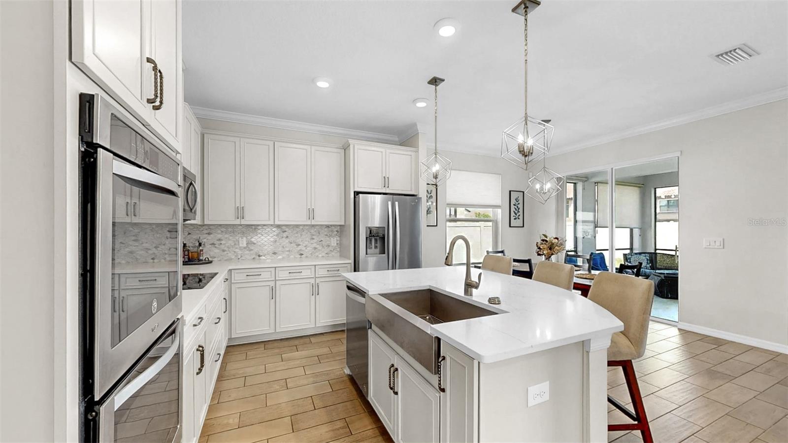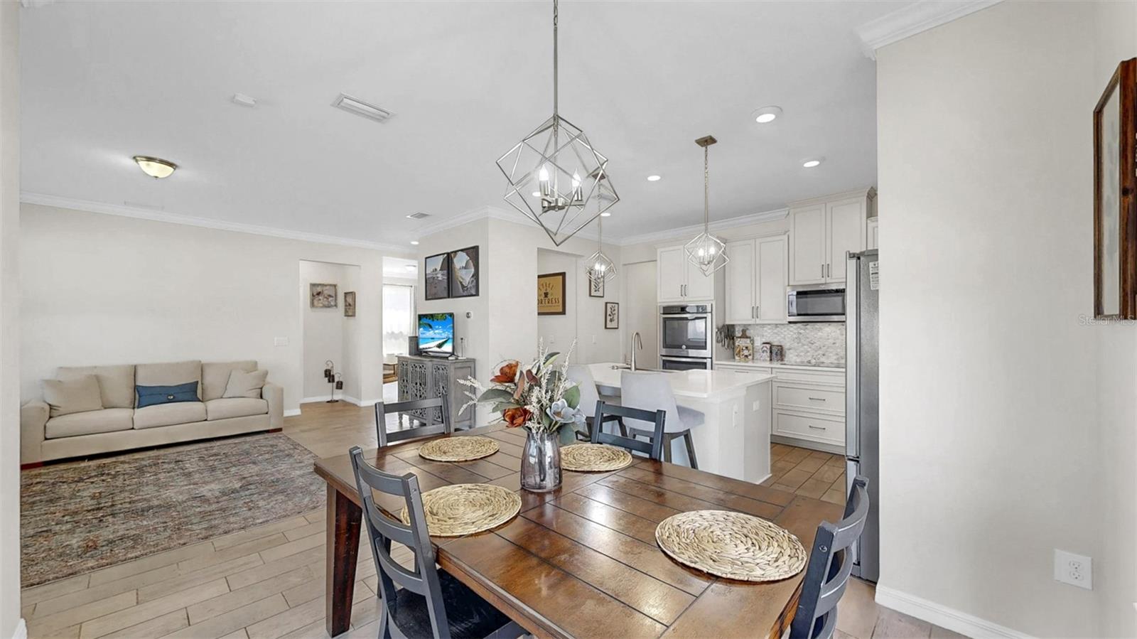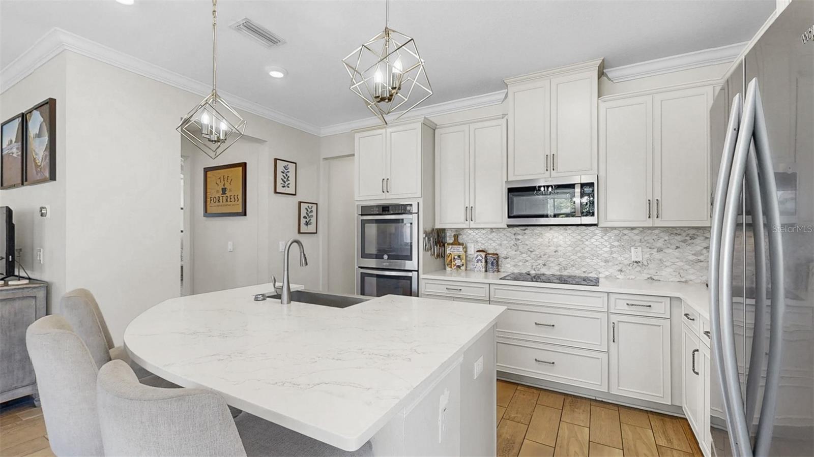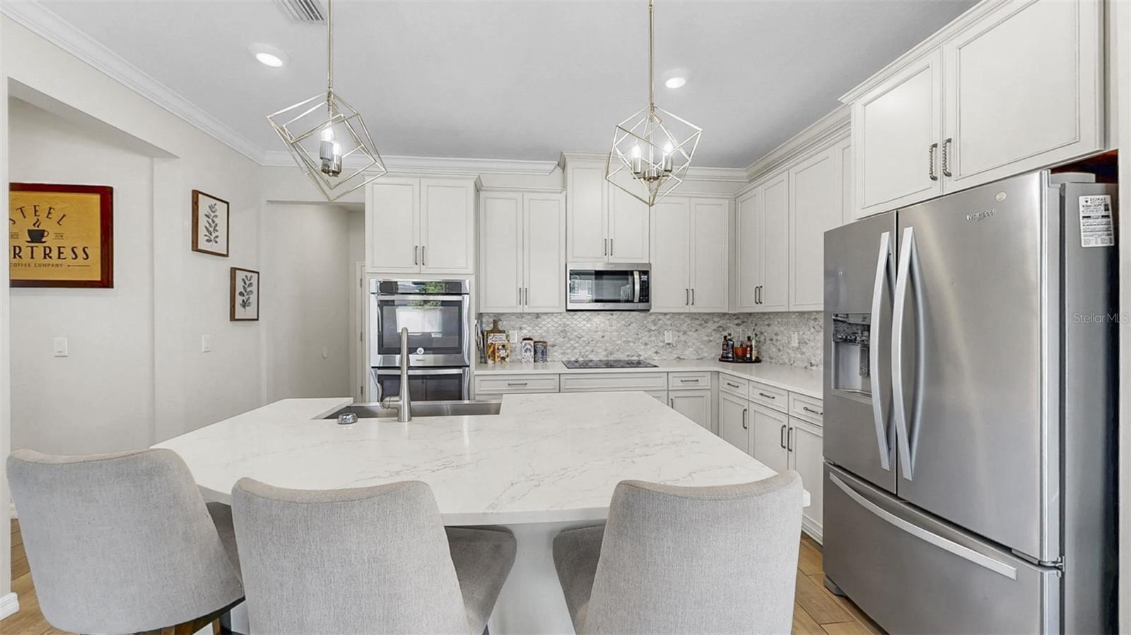 Uma casa onde a elegância encontra o conforto no coração da prestigiada Reserva de Pradera. Esta residência meticulosamente atualizada de 3.068 pés quadrados é um santuário para aqueles que desejam luxo e conveniência. Imagine entrar em um estilo de vida que combina sofisticação moderna com design atemporal, criando o cenário perfeito para a vida cotidiana e entretenimento memorável. Ao passar pela porta da frente, a luz do sol entra pelas janelas altas, iluminando uma planta aberta que irradia calor e estilo. O rico piso de cerâmica com aparência de madeira e sancas se estendem por todas as principais áreas de estar, oferecendo um fluxo contínuo que convida você a explorar mais. À sua direita, uma sala de jantar formal o aguarda, onde um lustre sofisticado emite um brilho suave - ideal para festas de fim de ano ou jantares íntimos. Um pouco além, o coração da casa se revela. Imagine-se na cozinha gourmet, o sonho de um chef tornado realidade, com suas reluzentes bancadas de quartzo e mármore, eletrodomésticos de aço inoxidável de última geração e fornos de parede dupla. O impressionante backsplash de mármore e os armários de design adicionam uma camada extra de luxo, enquanto a espaçosa ilha é a peça central, pronta para criações culinárias ou conversas casuais. Uma despensa de mordomo conecta a cozinha à área de jantar, e uma grande despensa garante que você nunca fique sem espaço. A cozinha tem vista para a ampla sala e para a área de jantar casual, perfeita para relaxar e se divertir. Imagine abrir as portas deslizantes para entrar em uma varanda com tela, seu oásis privado para café da manhã ou coquetéis ao pôr do sol. O quintal totalmente cercado oferece inúmeras oportunidades para reuniões, jardinagem ou brincadeiras. No nível principal, um versátil quarto de hóspedes e um banheiro completo oferecem opções de vida flexíveis, seja para família, amigos ou um home office dedicado. Ao subir ao segundo andar, um generoso loft bônus o aguarda, pronto para ser transformado em espaço de mídia, sala de jogos ou escritório doméstico. A suíte principal é um verdadeiro retiro, oferecendo um santuário pessoal com sua própria estação de bebidas e refrigerador de vinho. O closet grande oferece amplo armazenamento, enquanto o banheiro privativo em estilo spa convida ao relaxamento com pia dupla, banheira de imersão profunda e chuveiro de vidro sem moldura. Dois quartos adicionais, um banheiro com pia dupla e uma lavanderia no andar de cima completam o segundo andar, garantindo conforto e comodidade para todos. Os destaques adicionais desta casa extraordinária incluem um sistema de filtragem de água para toda a casa, uma garagem enorme para 3 carros e um sistema de painel solar que reduz os custos de energia - uma vida sustentável no seu melhor. A pintura externa fresca e a manutenção impecável refletem o orgulho de propriedade. Desfrute de comodidades em estilo resort, incluindo piscina, playground, trilhas de ginástica e quadras de basquete. Tudo isso fica a poucos minutos da I-75, US 301, lojas, restaurantes, MacDill AFB, centro de Tampa e das praias da Costa do Golfo. Esta casa é o pacote completo - elegante, espaçosa, com baixo consumo de energia e com localização ideal. Não perca a oportunidade de experimentar esta propriedade excepcional. Imagine o seu futuro aqui, onde cada detalhe é pensado para melhorar a sua vida. Divulgação importante: Os painéis solares estão sob um contrato de locação que exige a transferência para o novo proprietário no fechamento. Ligue para obter detalhes completos. Entre hoje mesmo na casa dos seus sonhos! Divulgação importante: Os painéis solares estão sob um contrato de locação que exige a transferência para o novo proprietário no fechamento. Ligue para obter detalhes completos.