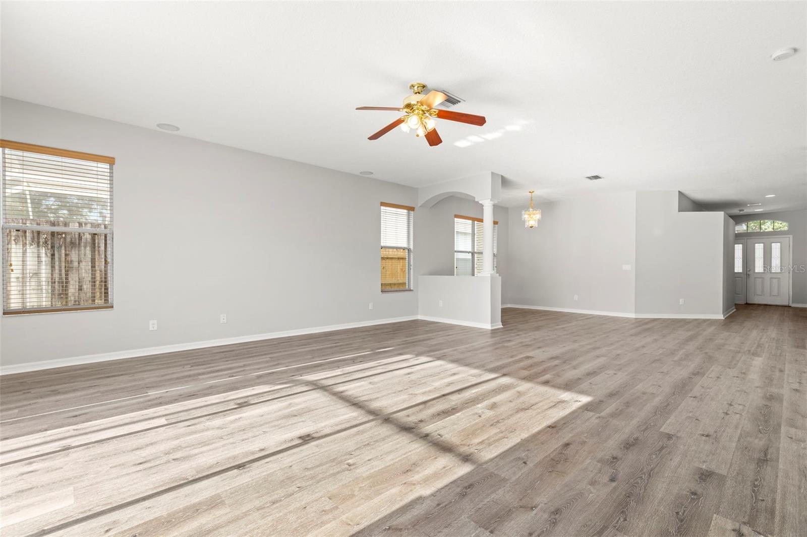 Piscina em casa com o novo telhado 2021 e 2 New Trane AC 2022 e a nova cerca de privacidade com portões duplos 2025. Raramente esse CCME da planta do piso está disponível com uma suíte verdadeira, incluindo sala de bônus, quarto com closet e banho completo com um sistema CA dedicado no andar de cima. Piso de vinil à prova de água mais recente! Tinta mais recente em cinza agradável. Seguro de proprietários inferiores com telhado de 4 anos! Porta da frente dupla com hall de entrada após a entrada! Esta planta "viva grande" tem uma grande sala grande com controles deslizantes para piscina e sala de jantar formal dedicada! A cozinha é superdimensionada com canto de café da manhã dedicado com maravilhosas janelas brilhantes! Os balcões de pedra de Cambria, amplo armário e ilha central adornados com utensílios de impressão não-dedo! A lavanderia dedicada está na entrada da garagem dupla! A suíte principal do quarto também tem um quarto muito grande com um teto de etapa dupla e banheiro da suíte! Grande caminhada no chuveiro nunca permitirá que as paredes se sintam apertadas e duplas de pia, chuveiro de grande porte e armário de água separado. Há um total de 3 quartos no primeiro andar, com 2 quartos secundários de grandes dimensões aninhados em ambos os lados do 3º banheiro completo que a casa oferece. O vinil de luxo à prova d'água foi instalado na entrada, corredor para quartos do 1º andar, sala de jantar, sala grande e quarto principal! O interior foi pintado e pintado no exterior! Esta comunidade está perfeitamente situada no atalho para 301 para se deslocar para o trabalho, perto de lojas e restaurantes! Sem CDD