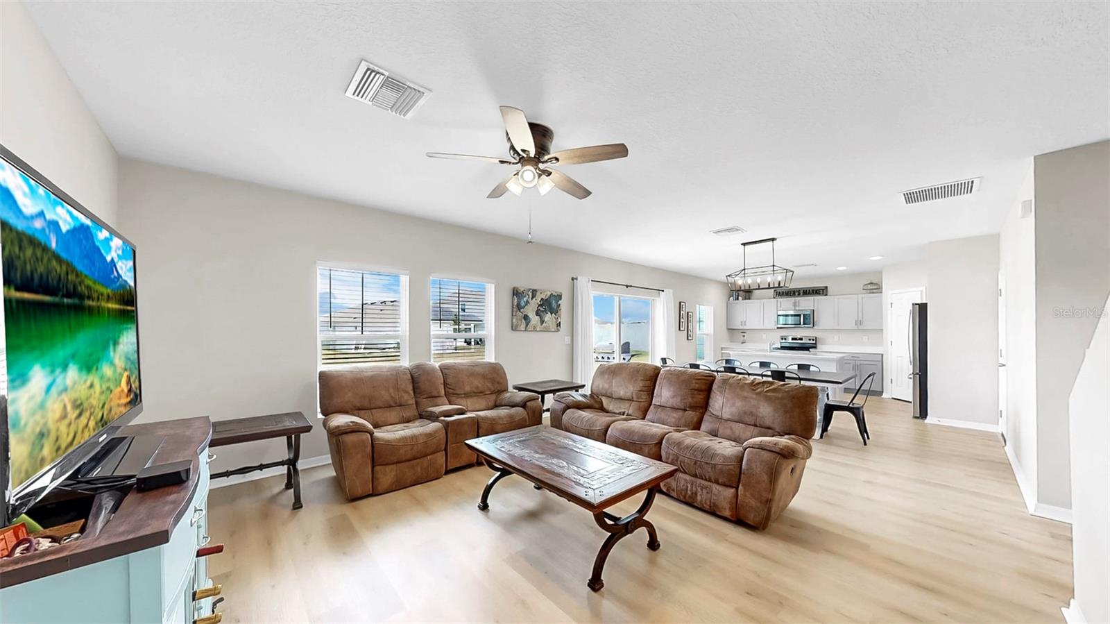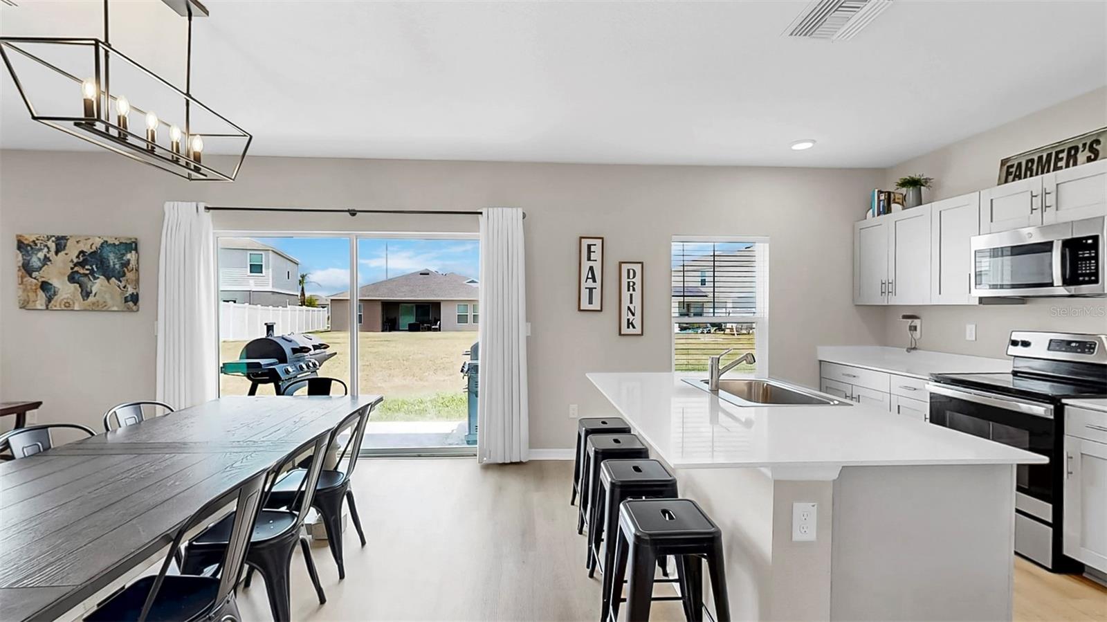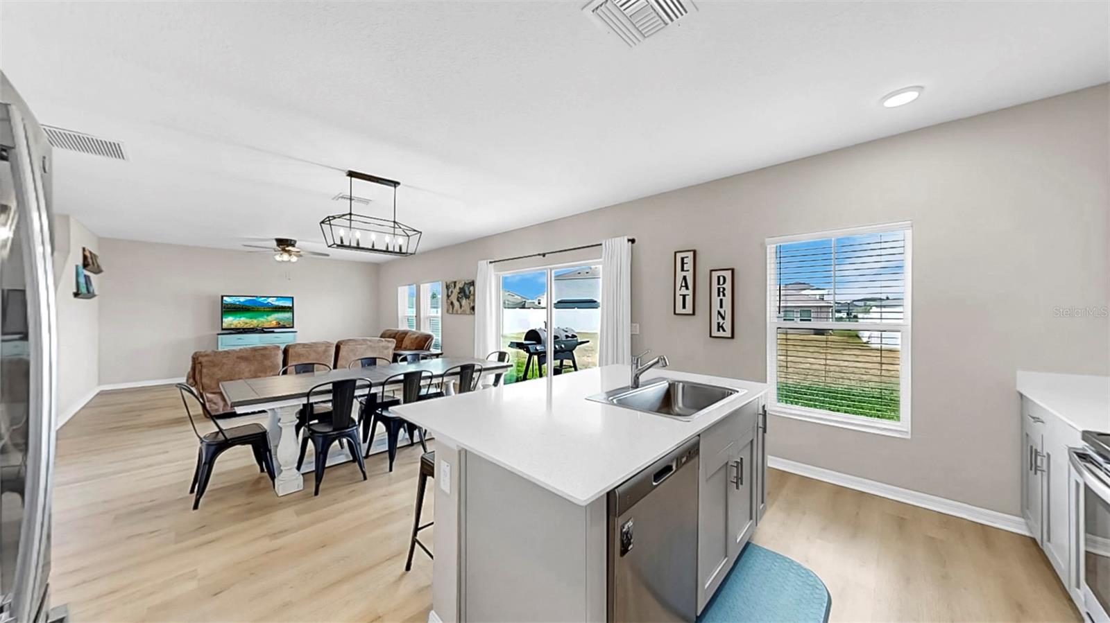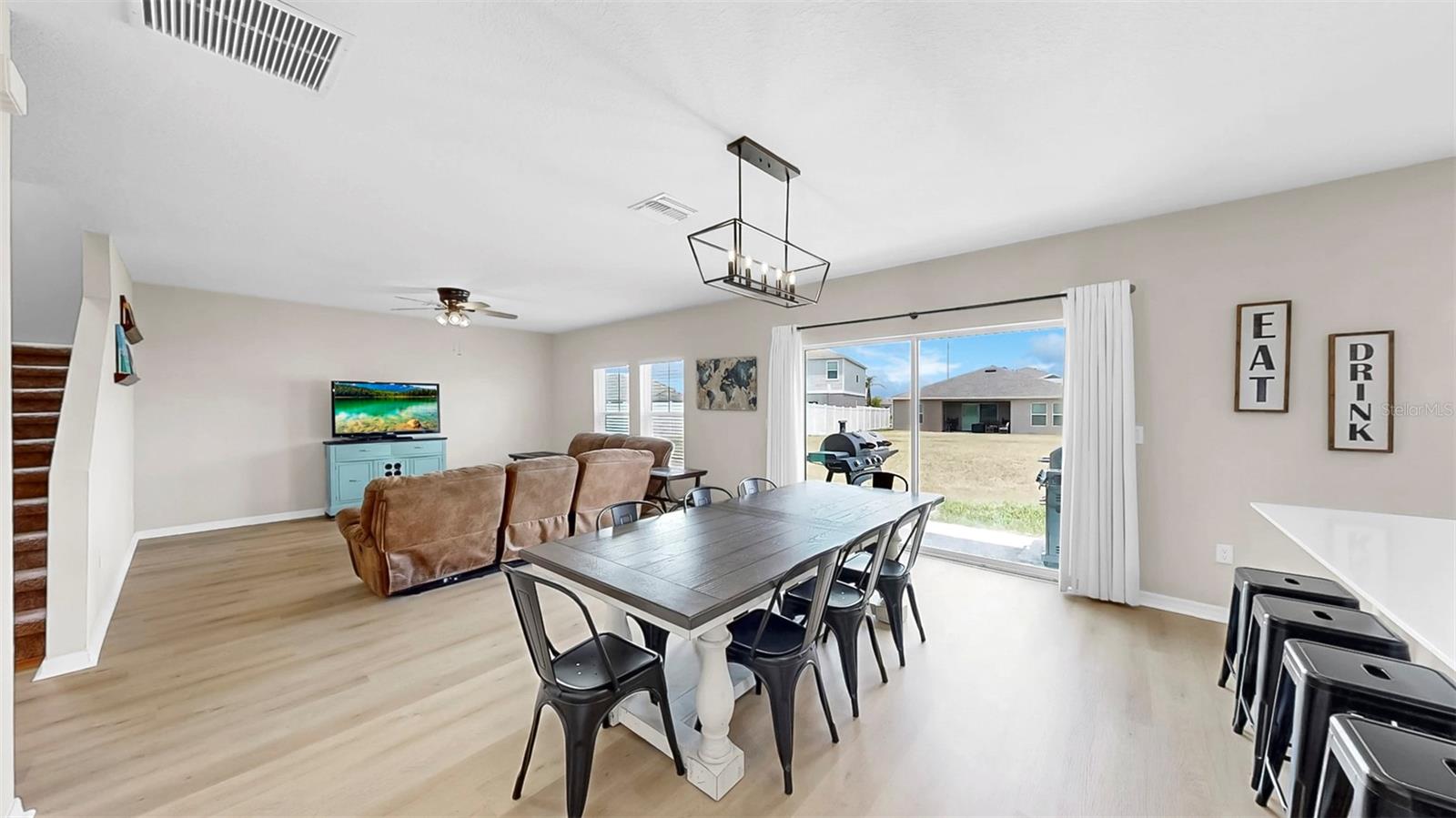 Bem -vindo ao Triple Creek! Esta casa moderna recém-construída possui 5 quartos, 3 banheiros completos e um loft no andar de cima! Entre, no vestíbulo, com pisos de LVP por toda parte! Esta planta baixa aberta inclui um layout de quartos divididos, com um quarto e um banheiro no térreo que podem ser usados como um escritório privado ou suíte de hóspedes! Bancadas de quartzo em todos os banheiros e na cozinha! Os recursos adicionais da cozinha incluem uma ilha de cozinha, despensa e utensílios de aço inoxidável da GE! No andar de cima está o loft, quartos/banheiros adicionais e a lavanderia para uso conveniente. A suíte do proprietário possui um closet e o banheiro privativo, que inclui uma vaidade prolongada de pia dupla e chuveiro! O exterior é um quintal de tamanho muito bem! As comodidades da comunidade Triple Creek incluem piscinas de duas voltas, splash pad, piscina de lagoa, fitness center, quadras de basquete/tênis, campos esportivos e playgrounds! Esta casa tem tudo! Ligue hoje para agendar uma visualização privada!