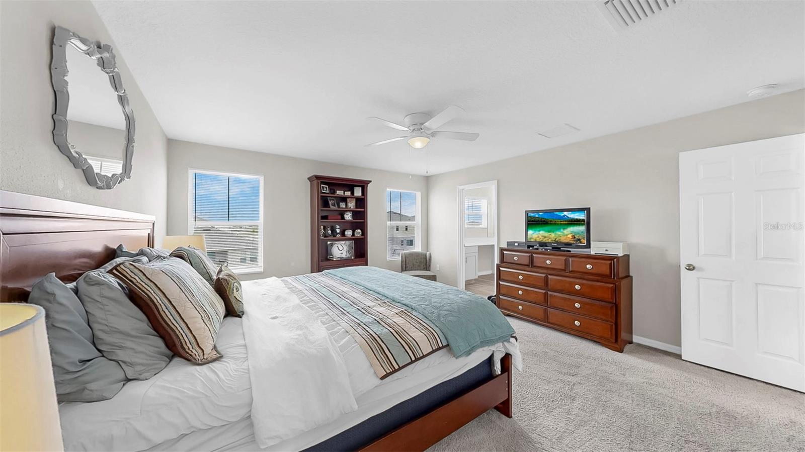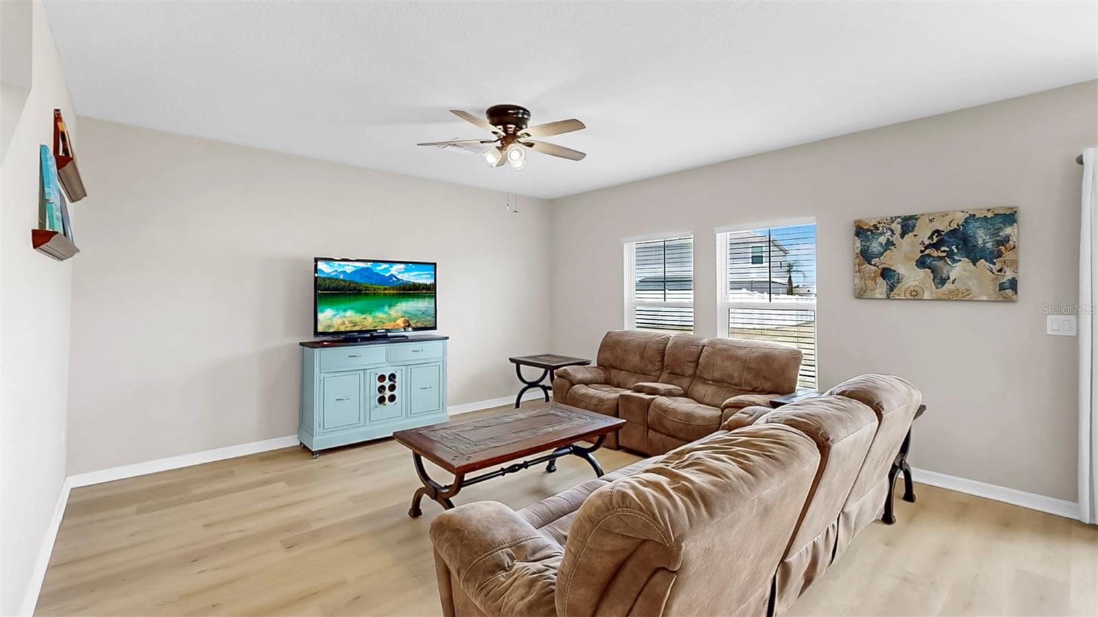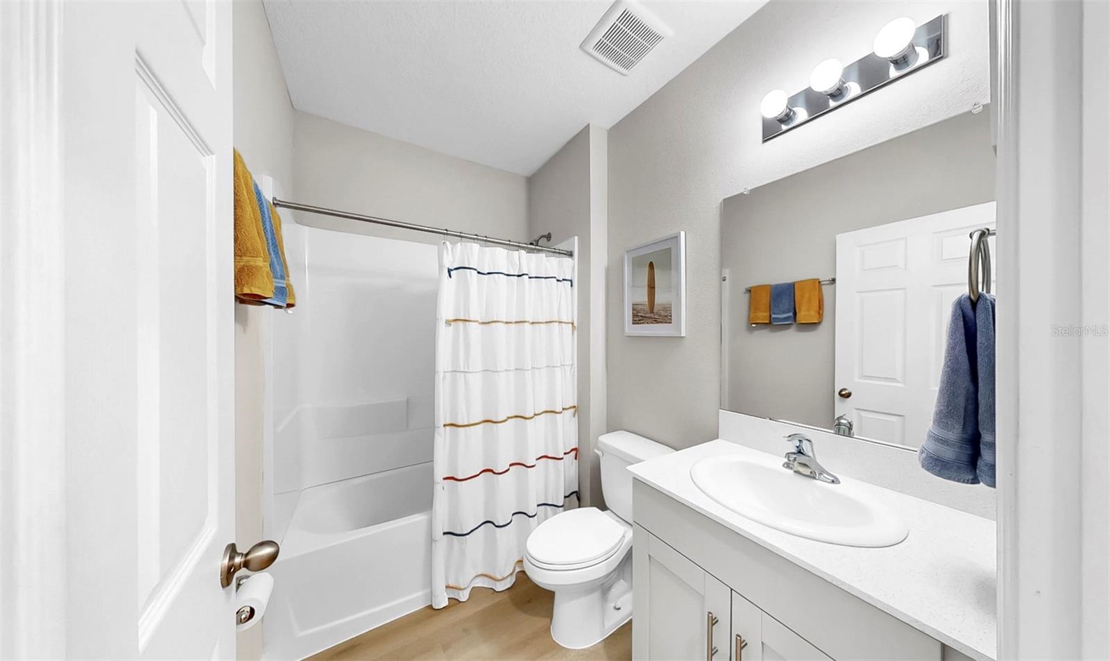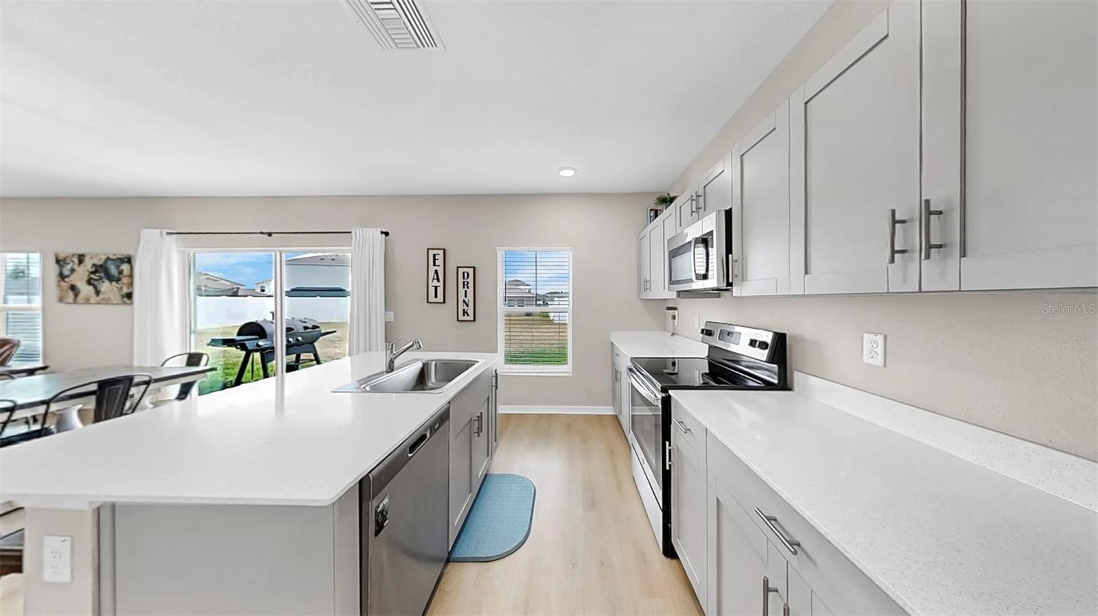 Bem -vindo ao Triple Creek! Esta casa moderna recém-construída possui 5 quartos, 3 banheiros completos e um loft no andar de cima! Entre, no vestíbulo, com pisos de LVP por toda parte! Esta planta baixa aberta inclui um layout de quartos divididos, com um quarto e um banheiro no térreo que podem ser usados como um escritório privado ou suíte de hóspedes! Bancadas de quartzo em todos os banheiros e na cozinha! Os recursos adicionais da cozinha incluem uma ilha de cozinha, despensa e utensílios de aço inoxidável da GE! No andar de cima está o loft, quartos/banheiros adicionais e a lavanderia para uso conveniente. A suíte do proprietário possui um closet e o banheiro privativo, que inclui uma vaidade prolongada de pia dupla e chuveiro! O exterior é um quintal de tamanho muito bem! As comodidades da comunidade Triple Creek incluem piscinas de duas voltas, splash pad, piscina de lagoa, fitness center, quadras de basquete/tênis, campos esportivos e playgrounds! Esta casa tem tudo! Ligue hoje para agendar uma visualização privada!