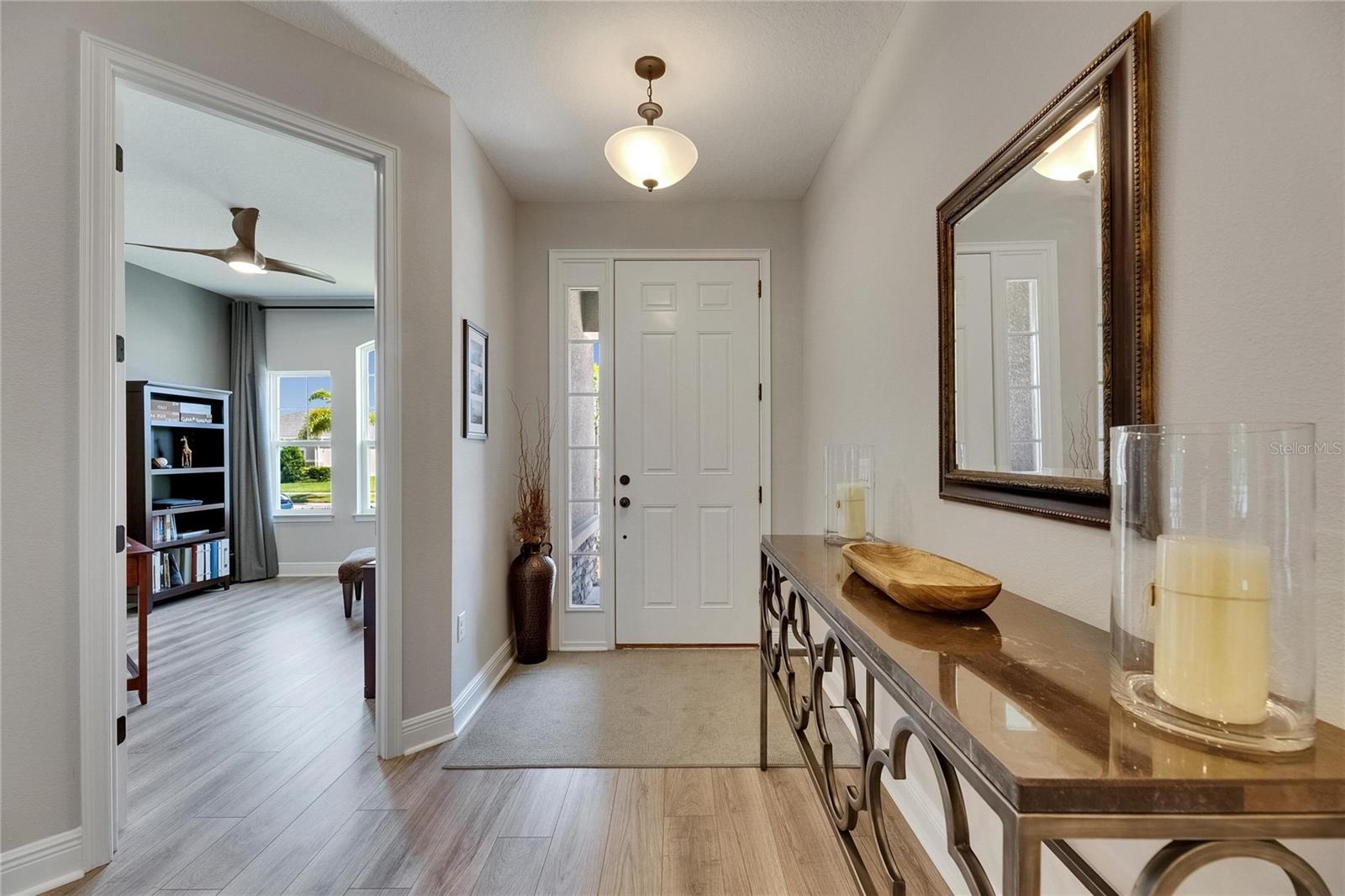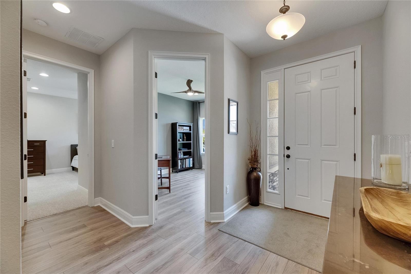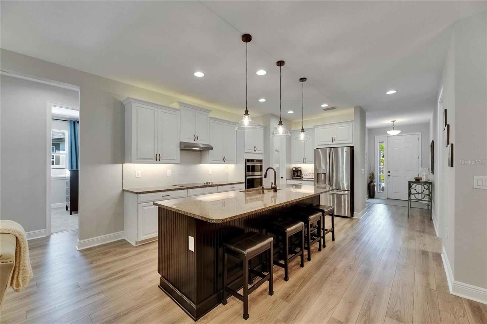 Bem-vindo ao lar de 2020, Mattamy construiu a planta coquina II, oferecendo duas suítes primárias completas-perfeitas para a vida multigeracional ou para uso como uma suíte de convidado privado para convidados fora da cidade! Os proprietários não pouparam que não poupassem a atualização desta casa - adicionando uma parede decorativa de lareira, piso de LVP com aparência de madeira, armário personalizado, carpete de macho novo, protetor de onda doméstica inteira, lanai rastreado, quintal cercado, amaciador de água e uma linha de água separada para irrigação para economizar dinheiro na sua conta de água! Esta bela casa está situada em um lote premium, com vistas de conservação pacíficas em uma seção bem procurada de Triple Creek. Esta casa espaçosa apresenta um layout dividido de 3 vias desejável com 4 quartos-incluindo duas suítes primárias de luxo, 3 banheiros completos e um escritório dedicado, oferecendo conforto e privacidade. A cozinha gourmet possui utensílios de aço inoxidável, bancadas de granito, um forno de parede/microondas embutido, armários brancos limpos, backsplash da moda e uma despensa. Aproveite as vistas pitorescas dos enormes controles deslizantes de três painéis, permitindo que a luz natural inundasse a casa ou opte por mais privacidade com os tons motorizados embutidos. O primeiro de dois quartos primários tem um teto de bandeja, closet com um sistema de organização personalizado e amplo espaço para uma área de descanso. O banheiro privativo está equipado com pias duplas, bancadas em granito, um vaso sanitário e um chuveiro com detalhes em azulejos de grife. O segundo quarto primário apresenta um novo carpete macio, um enorme armário e pode facilmente caber em móveis de tamanho king. Os dois quartos adicionais são espaçosos, com armários e acesso conveniente ao terceiro banheiro completo. A lavanderia é cuidadosamente projetada e possui uma pia de utilidades e armários para armazenar bem todos os seus suprimentos. A garagem de 3 carros é um conjunto que fornece um espaço para criar uma oficina e a oportunidade de acomodar seus veículos recreativos. Triple Creek oferece moradores ao estilo resort com duas piscinas comunitárias, duas casas de clubes, dois centros de fitness, playgrounds, trilhas para caminhada, quadras esportivas, parque de cães e planos de instalar quadras de pickleball! Agende sua exibição hoje!