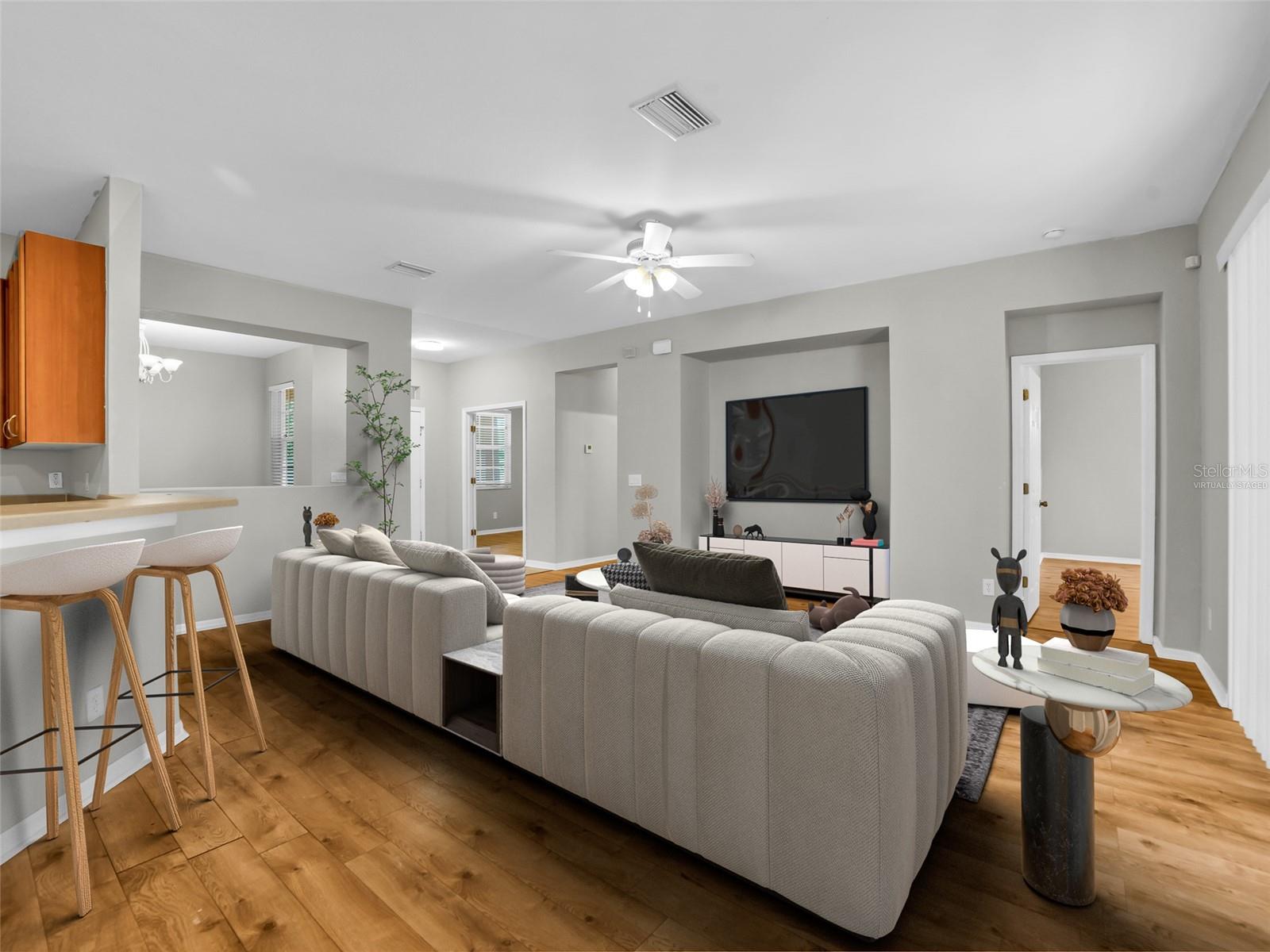 Uma ou mais fotos foram praticamente encenadas. Não procure mais, sua casa de sonho aguarda! Esta linda casa de 4 quartos de 4 quartos tem 1.886 pés quadrados aquecidos de lindamente bem cuidados para o espaço de estar. Situado em mais de um quarto de um lote de canto de hectare com quintal cercado. Sem vizinhos do quintal. Varanda da frente. Essa planta de piso conceito aberto é perfeito para entreter e permanecer conectado a todos em toda a casa. Você vai adorar o grande quarto principal com closet de grandes dimensões e mestre em suíte, com uma boa caminhada no chuveiro e uma banheira de imersão. A vaidade dupla tem um balcão de mármore cultivado com espaço para sentar. Esta planta baixa fornece privacidade adicional com os 3 quartos localizados juntos (plano dividido). Os quartos secundários compartilham um banheiro com uma combinação de banheira/chuveiro. A cozinha tem toneladas de bancada e espaço de armazenamento. Sua família vai gostar de comer espaço na barra de café da manhã e espaço para comer adicional na cozinha. A enorme e ampla sala de família aberta tem portas de vidro deslizantes, levando ao lanai exibido com vista para o quintal. Esta casa tem uma sensação aberta e oferece tetos de volume para complementar o espaço. Você vai adorar as grandes janelas do sol, que enchem a casa com luz natural. Lavanderia com acesso à garagem. Se você está procurando a casa perfeita, procure mais. A comunidade tem um parque aquático, playground e enorme piscina, casa de clubes, quadras de tênis, quadras de basquete e até creches ao virar da esquina! Esta casa está localizada a poucos minutos das principais rodovias, incluindo 301, Big Bend e I-75; A alguns quilômetros de distância para supermercados, restaurantes, compras. Esta casa tem tudo !!! Ligue hoje para uma exibição particular antes que seja tarde demais !! Interior recém -pintado e piso novo.