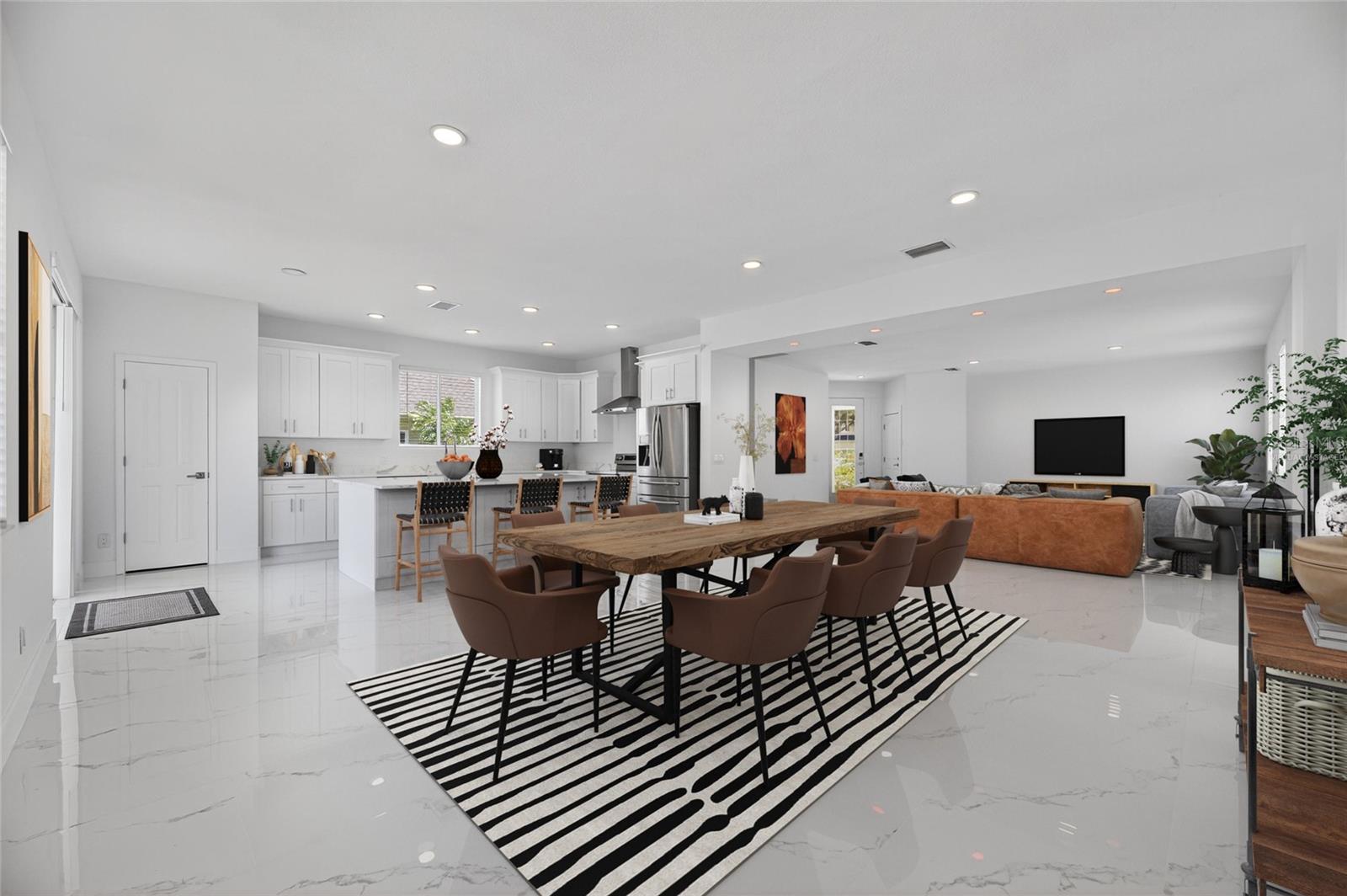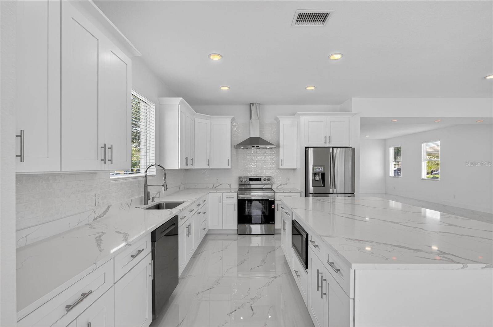 Bem-vindo ao 11055 Golden Silence Dr, localizado na comunidade altamente procurada e familiar de South Fork. Esta casa impressionante de dois andares, de 4 quartos e 2,5 banheiros, totalmente remoldada, incorpora o melhor da vida na Flórida-perfeita para relaxamento e entretenimento. Entre em um amplo design de conceito aberto, onde as áreas de cozinha, vida e jantar se misturam perfeitamente, criando o cenário ideal para reuniões com familiares e amigos. A cozinha serve como o coração da casa, com utensílios de aço inoxidável novinhos em folha, uma ilha de quartzo com microondas embutido e uma geladeira de tela sensível ao toque de última geração que sincroniza com o telefone-permitindo que você transmita música em todo o nível inferior. A ilha funciona como uma barra de café da manhã e oferece armazenamento abundante com armários de ambos os lados, complementados por armários superiores e inferiores adicionais para funcionalidade e estilo máximos. Da cozinha, saia para a piscina e o spa, onde você desfrutará de vistas tranquilas do lago e da área de conservação circundante-um espaço convidativo para relaxar ou entreter o ano todo. Um armário de armazenamento conveniente está dobrado sob a escada no piso principal. No andar de cima, a espaçosa suíte primária tem vista para a piscina, lago e vegetação exuberante. Seu banheiro inspirado em spa mostra ladrilhos de mármore do chão ao teto, torneiras e acessórios de ouro e uma luxuosa sala molhada com um chuveiro, banheira independente e chuveiro de chuva. Três quartos adicionais de tamanho generoso compartilham um banheiro elegante de salão com uma combinação de barra de banheira e chuveiro de chuva. Os moradores de South Fork desfrutam de comodidades comunitárias, incluindo um playground, piscina, quadra de tênis e fitness center. A localização privilegiada da casa fica perto das escolas de primeira linha, um hospital, restaurantes, compras e destinos principais, como Tampa e São Petersburgo. Faça sua consulta de exibição hoje! Bem -vindo para casa!