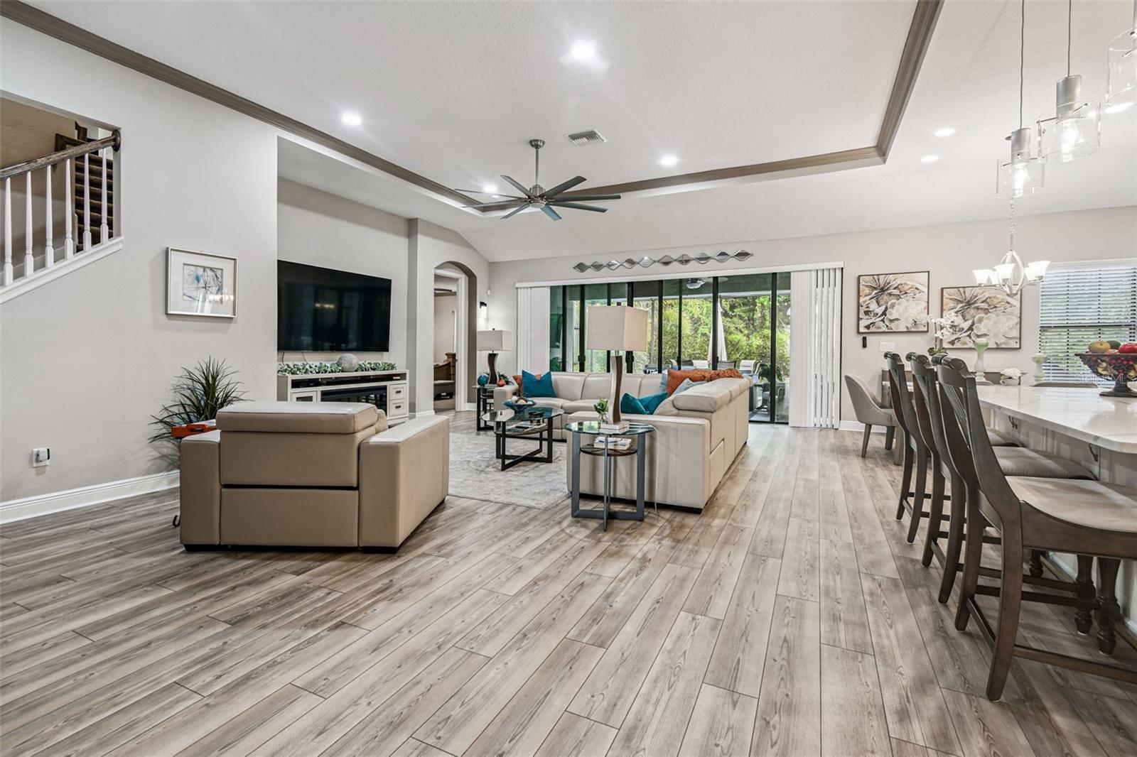 Bem-vindo à casa dos seus sonhos em Triple Creek, Riverview, FL! Esta deslumbrante casa de 4 quartos e 4 banheiros está localizada no muito procurado condomínio Triple Creek, oferecendo elegância e funcionalidade em cada detalhe. A partir do momento em que você chega, você será recebido por uma enorme entrada de pavimentação que leva a uma bela varanda frontal e portas duplas com inserções de vidro decorativas, dando o tom para o estilo e sofisticação encontrados por toda parte. Entre em um hall de entrada convidativo adornado com um lindo lustre e arcos graciosos que levam você a uma espaçosa sala de estar de conceito aberto com teto falso e portas de vidro deslizantes de grandes dimensões que se abrem para uma grande varanda com tela - perfeita para entretenimento ou simplesmente relaxar ao ar livre. A cozinha gourmet é o coração da casa, completa com uma grande ilha, amplos armários e balcão, closet, eletrodomésticos de aço inox, iluminação pendente e área de jantar conectada ideal para reuniões. A casa também possui um "Sistema de Amaciamento de Água Culligan" e Osmose Reversa embaixo da pia da cozinha! Retire-se para a luxuosa suíte do proprietário, com banheiro privativo inspirado em spa com pia dupla, box amplo grande, toalete privativo e closet espaçoso. O primeiro andar também inclui dois quartos grandes adicionais, dois banheiros completos e uma sala bônus versátil, perfeita para home office, academia ou sala de jogos. Você também apreciará a lavanderia bem projetada e o prático mudroom que se conecta à garagem para três carros. No andar de cima, você encontrará um loft, um banheiro completo e uma suíte de hóspedes privativa, oferecendo a configuração ideal para uma vida multigeracional, família extensa ou visitantes. Localizados na vibrante comunidade planejada de Triple Creek, os moradores desfrutam de uma abundância de comodidades em estilo resort, incluindo dois clubhouses, várias piscinas, um splash pad, parque para cães, quadras de tênis e basquete, trilhas para caminhada e ciclismo, playgrounds e academias de ginástica. A comunidade é enriquecida por um lago natural de 50 acres, pântanos, áreas de preservação e topografia ondulada, todos delimitados pela pitoresca Reserva Natural Triple Creek. Com baixas taxas de HOA e sem necessidade de seguro contra inundações, esta casa oferece um valor excepcional em uma localização bonita e conveniente, perto das melhores escolas, lojas, restaurantes e recreação, com fácil acesso à US-301, I-75 e I-4. Venha experimentar o melhor da Flórida vivendo na bela Triple Creek!