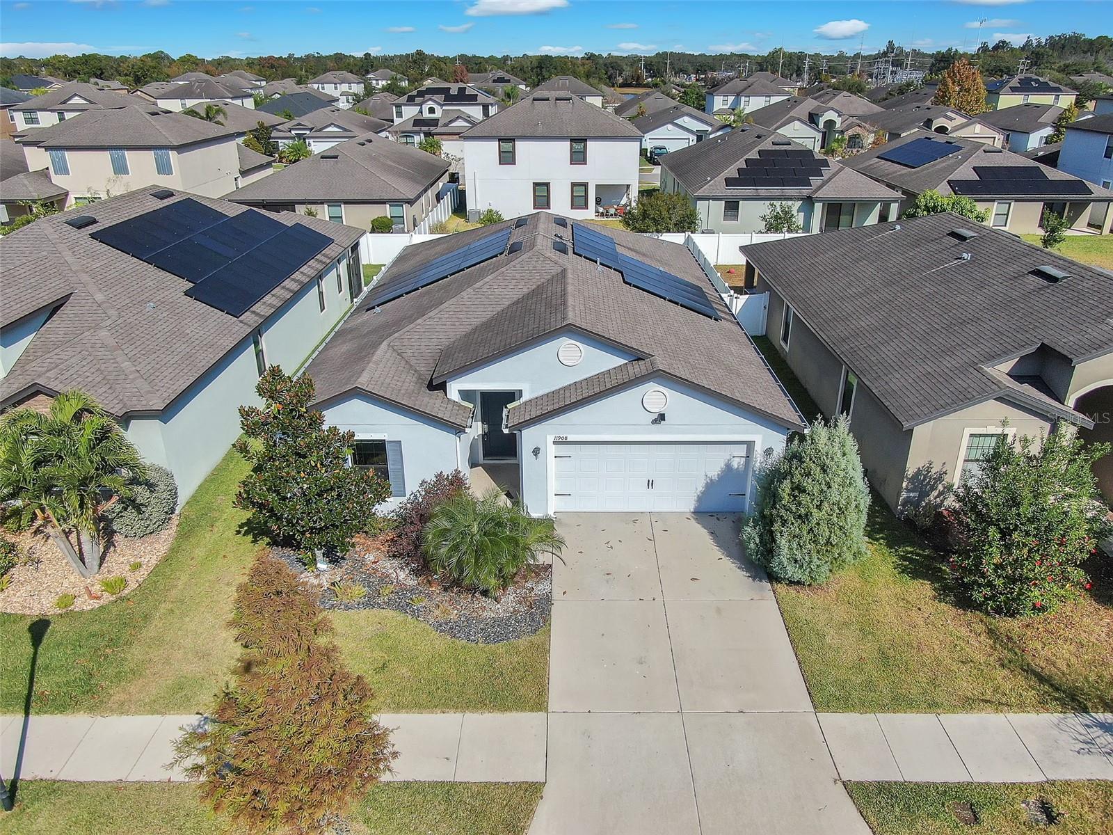 CASA COM ENERGIA SOLAR (SOLAR É DE PROPRIEDADE) ~ PISO ATUALIZADO ~ ESPAÇOSO PLANO DE DIVISÃO DE 5 QUARTOS ~ Bem-vindo à sua próxima casa em 11908 Winterset Cove Dr.! Esta fantástica propriedade oferece uma mistura de conforto, espaço e eficiência moderna, perfeita para uma família em crescimento ou para quem procura um estilo de vida de baixa manutenção. Principais recursos que você vai adorar: * ENORME economia em energia elétrica! Esta casa dispõe de painéis solares totalmente pagos, oferecendo poupanças imediatas e a longo prazo nas suas contas de energia! Aproveite a tranquilidade de possuir sua fonte de energia. * Espaço generoso: com uma planta impressionante com 5 quartos e 3 banheiros completos, você terá todo o espaço que precisa para viver, trabalhar e se divertir. * Comodidades modernas: Construída em 2018, a casa está equipada com refrigeração/aquecimento central, piso cerâmico e carpete e uma cozinha pronta para suas aventuras culinárias. * Localização privilegiada: Localizado na desejável área de Riverview, você se beneficiará da conveniência de estar próximo a shopping centers locais, parques recreativos e principais vias de acesso a Tampa e arredores. * Estacionamento: Inclui uma garagem dedicada para estacionamento conveniente e seguro. Não perca a oportunidade de possuir esta joia com eficiência energética! Experimente o conforto e a economia da energia solar paga em um ambiente bonito e espaçoso. Agende sua exibição hoje mesmo!