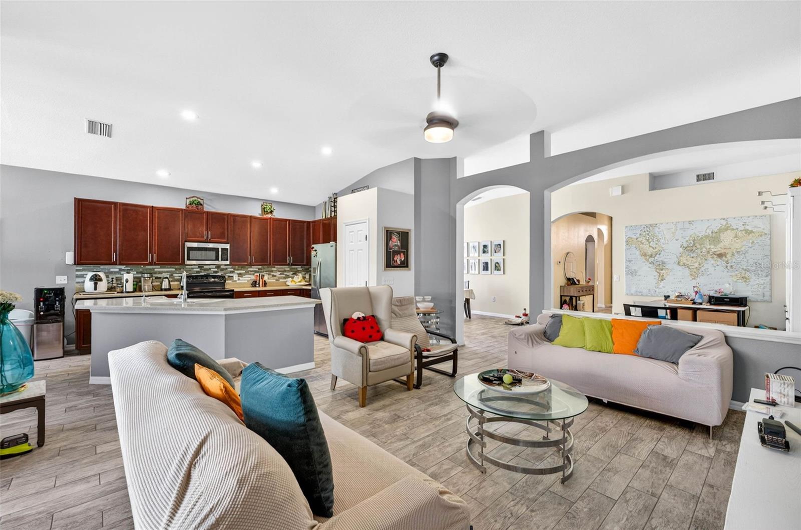 Bem-vindo a esta maravilhosa casa Suarez localizada na altamente desejável comunidade de Southfork! Esta residência imaculada e bem conservada de 4 quartos, 2 banheiros e garagem para 3 carros está situada em um terreno de conservação privado, oferecendo conforto e tranquilidade. Ao entrar pelas portas duplas da frente, você é recebido por um hall de entrada de azulejos que mostra imediatamente o calor e o charme da casa. A espaçosa planta baixa apresenta uma grande sala familiar com portas de vidro deslizantes que se abrem para a varanda coberta, proporcionando vistas deslumbrantes sobre a conservação - perfeitas para relaxar ou se divertir. A cozinha dos sonhos oferece um balcão para café da manhã, bancadas em Corian salpicadas, armários de madeira de 42" e uma copa separada com vista para o quintal. A casa também inclui uma sala de jantar formal e uma sala de estar formal separada, destacada por colunas elegantes, meia parede, luz natural abundante e vistas serenas. A planta dividida oferece privacidade, com três quartos adicionais e um banheiro completo localizado longe da suíte principal. O espaçoso quarto principal possui banheiro privativo com banheira de jardim, chuveiro separado e pias duplas. Uma lavanderia separada acrescenta comodidade no dia a dia. A comunidade de South Fork oferece ótimas comodidades, incluindo piscina comunitária, parques, playgrounds, quadras de basquete, quadras de tênis e trilhas para caminhada.