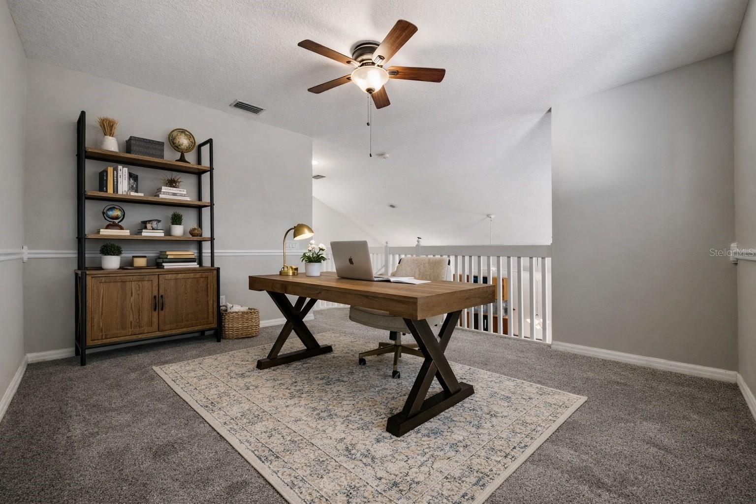 Entre e fique instantaneamente impressionado com o espaço dramático, onde tetos altos e luz natural abundante criam uma atmosfera aberta e arejada que realmente diferencia esta casa. Recém-pintado com carpete novo, o interior parece nítido, limpo e totalmente pronto para morar. A planta cuidadosamente projetada combina conforto e funcionalidade, apresentando uma cozinha espaçosa equipada com eletrodomésticos de aço inoxidável, armazenamento generoso e vista perfeita para a área de jantar - perfeita tanto para a vida cotidiana quanto para entretenimento sem esforço. O nível principal também oferece um lavabo conveniente, área de serviço e um belo piso que adiciona calor e estilo por toda parte. Com localização privativa no primeiro andar, a suíte principal oferece conforto e conveniência, completa com um amplo closet e um banheiro privativo bem equipado com pias duplas, uma relaxante banheira de jardim e um chuveiro separado. No andar de cima, um loft versátil oferece infinitas possibilidades – ideal para home office, sala de mídia ou área de lazer – junto com dois quartos adicionais e um banheiro completo. A vida ao ar livre é onde esta casa realmente brilha. Desfrute de uma varanda coberta e um amplo pátio projetado para reuniões, grelhados ou simplesmente relaxar. O enorme quintal totalmente cercado oferece um espaço incrível para relaxar, brincar ou se divertir, e ainda inclui uma área dedicada para fogueira, perfeita para noites aconchegantes. Idealmente localizada perto de lojas, restaurantes e principais rodovias, esta casa oferece conveniência excepcional com fácil acesso ao centro de Tampa, ao Aeroporto Internacional de Tampa, à Base Aérea MacDill e às deslumbrantes praias da Costa do Golfo. - Certas fotos foram encenadas virtualmente para demonstrar possíveis layouts de salas e opções de design.
