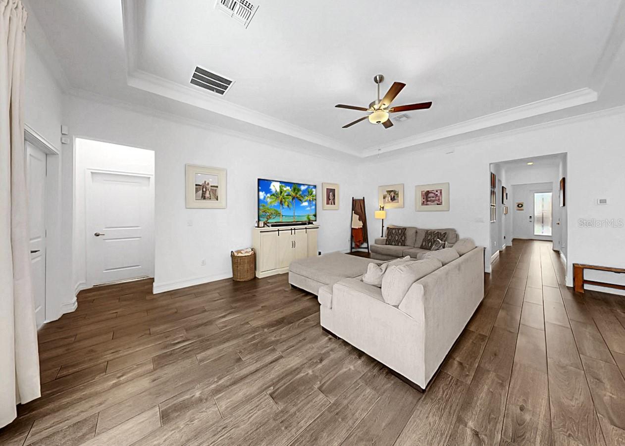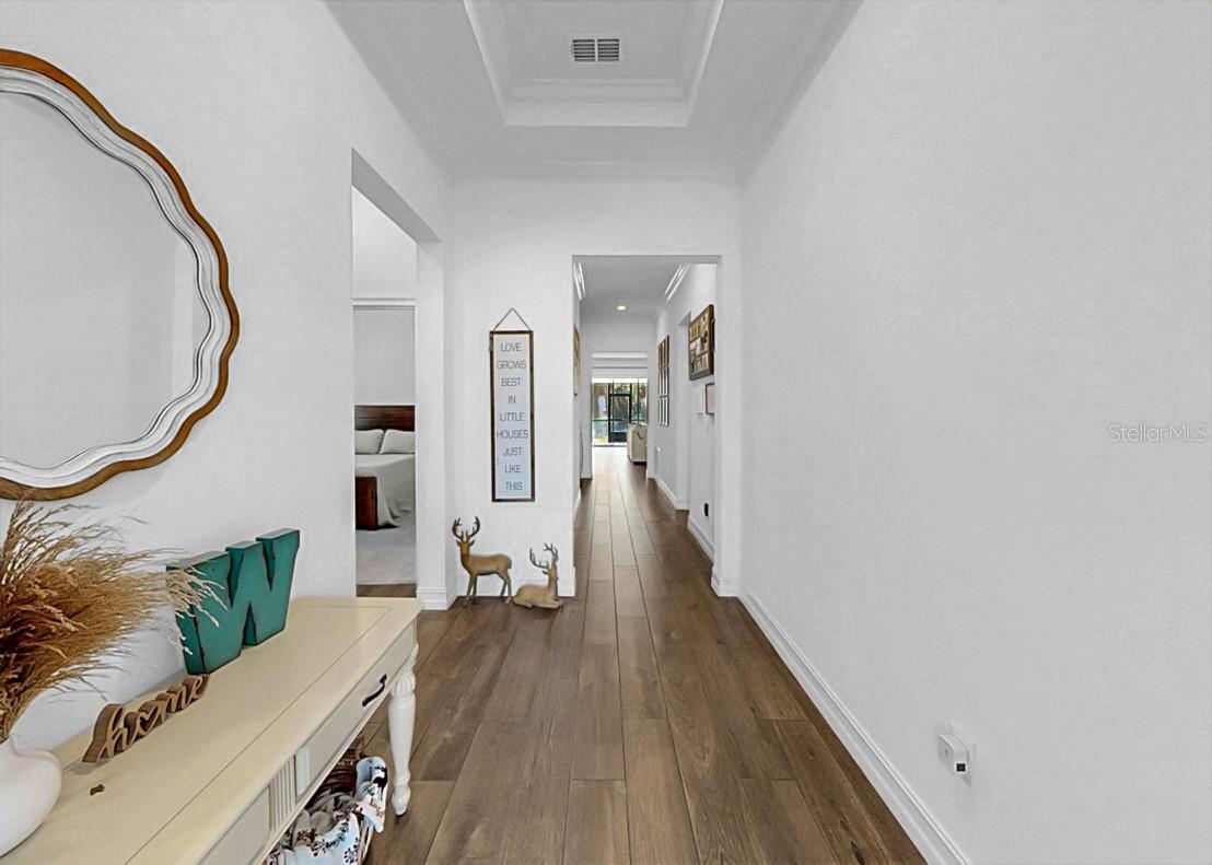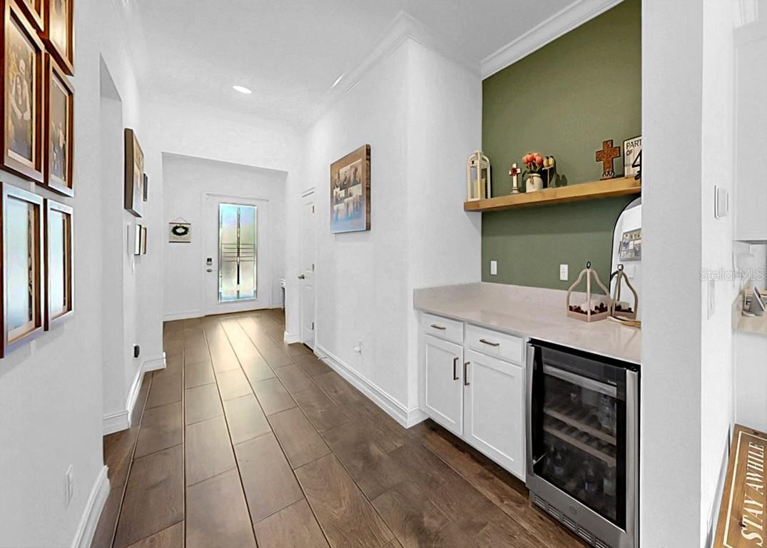 Bem-vindo a esta bela casa de 4 quartos, 3 banheiros, garagem para 3 carros e escritório privativo, perfeitamente situada entre vistas SERENES de CONSERVAÇÃO e situada em uma RUA TRANQUILA e sem saída. A partir do momento em que você chegar, você ficará impressionado com o excepcional CURB APPEAL, que apresenta uma grande entrada para 3 carros, paisagismo tropical e uma porta frontal acolhedora com elegante inserção de vidro. No interior, o SPLIT FLOOR PLAN cuidadosamente projetado oferece privacidade e funcionalidade. Dois quartos espaçosos estão localizados na frente da casa e compartilham um banheiro completo com pias duplas. Um quarto separado com banheiro completo privativo oferece a suíte de hóspedes perfeita ou retiro para sogros. Escondida na parte traseira da casa, a EXPANSIVA SUÍTE PRIMÁRIA apresenta VISTAS DE CONSERVAÇÃO tranquilas, um teto falso e um luxuoso banheiro privativo completo com banheira de imersão, chuveiro de pé, cômoda privativa e penteadeiras separadas para ele e ela. A casa está repleta de LUZ NATURAL graças a uma abundância de janelas e uma enorme PORTA DESLIZANTE DE VIDRO TRIPLO que se abre para a varanda com tela. Projetada com estilo e conveniência em mente, esta casa possui piso de TELHA DE MADEIRA, teto de bandeja na sala, BAR SECO EMBUTIDO com adega refrigerada, posto de coleta próximo à entrada da garagem, sistema AMACIADOR DE ÁGUA e piso de EPÓXI na garagem. A cozinha deslumbrante possui armários brancos, eletrodomésticos elegantes de aço inoxidável, uma enorme ilha central perfeita para reuniões e uma despensa grande para armazenamento excepcional. Esta linda casa também inclui PAINÉIS SOLARES para eficiência energética e máxima ECONOMIA DE CUSTOS! Com suas atualizações premium, layout funcional e CENÁRIO NATURAL DE TIRAR O FÔLEGO, esta casa oferece a combinação perfeita de elegância, conforto e vida moderna.