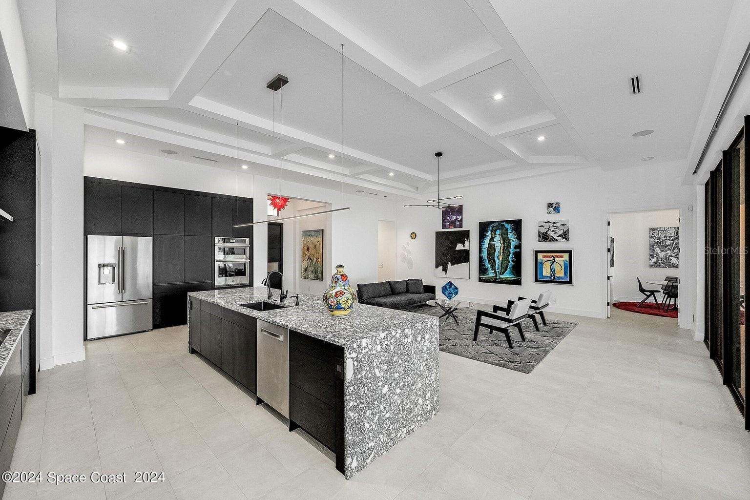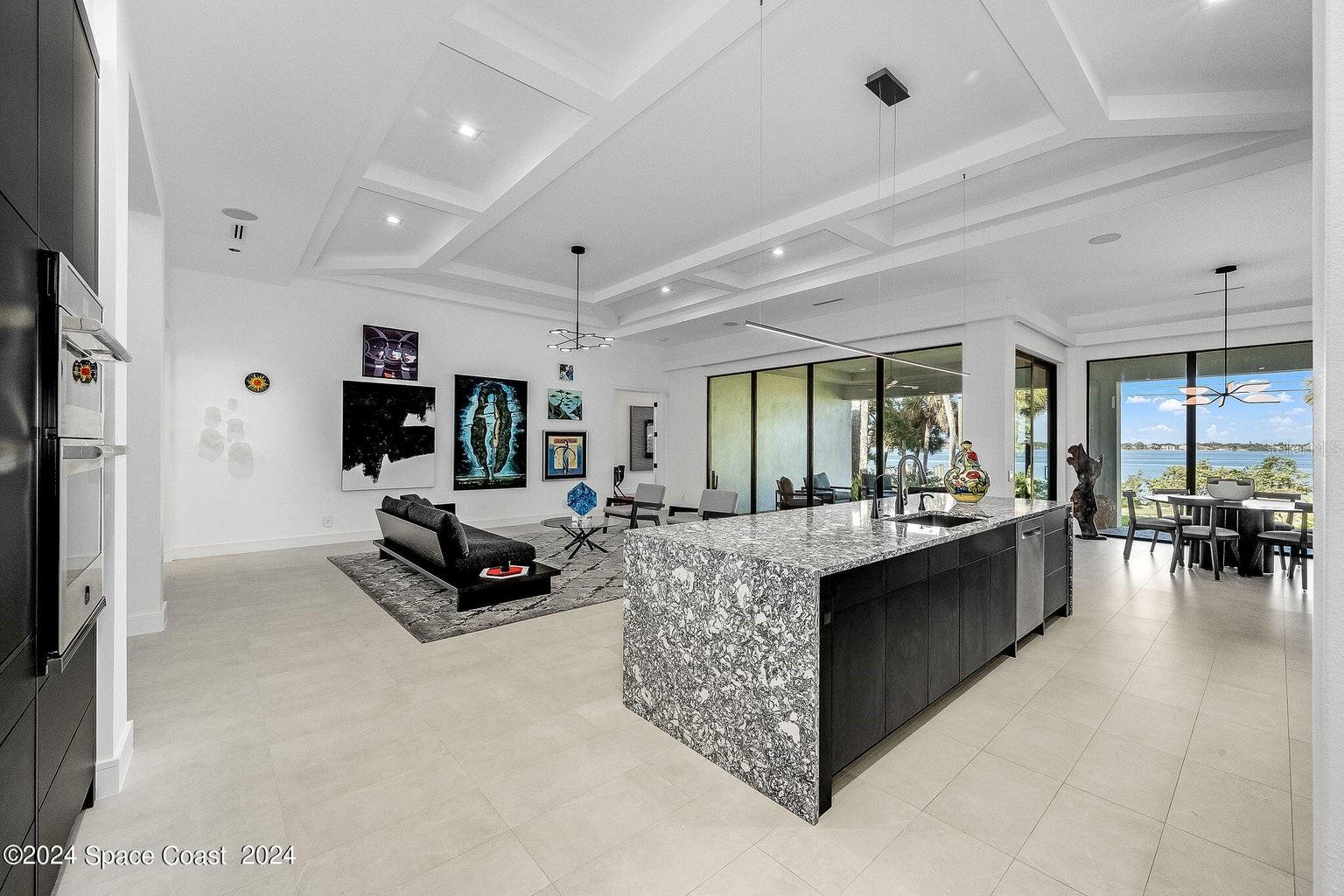 Linda casa personalizada por Christopher Burton situada às margens do Indian River, oferecendo um total de 4.946 SF de espaço refinado. A entrada apresenta uma porta de mogno resistente a furacões que leva a um hall de entrada iluminado por um lustre de vidro soprado à mão. No interior, o Great Room possui tetos de 12 pés, vigas personalizadas e uma parede de arte com iluminação artística regulável. A cozinha do chef inclui eletrodomésticos JennAir de primeira linha, uma despensa escondida e torneira sem toque Moen. A Suíte Primária é um retiro luxuoso com tetos de 10 pés, banheira com chinelos, box amplo, Toto Washlet e armário artístico personalizado. Entretenimento ao seu alcance na sala de mídia com TV OLED de 77'' em cenário personalizado. Saia para um pátio coberto com vista para o rio e cozinha ao ar livre. Estacione seus carros na enorme garagem para 3 carros. Automação avançada; persianas motorizadas, Wi-Fi th/out, sistema de segurança, alto-falantes embutidos, gerador para toda a casa. Recursos sustentáveis: irrigação inteligente do gramado e pronto para EV de 50 AMP. Uma mistura perfeita de elegância e recursos modernos com vistas pitorescas à beira-rio!