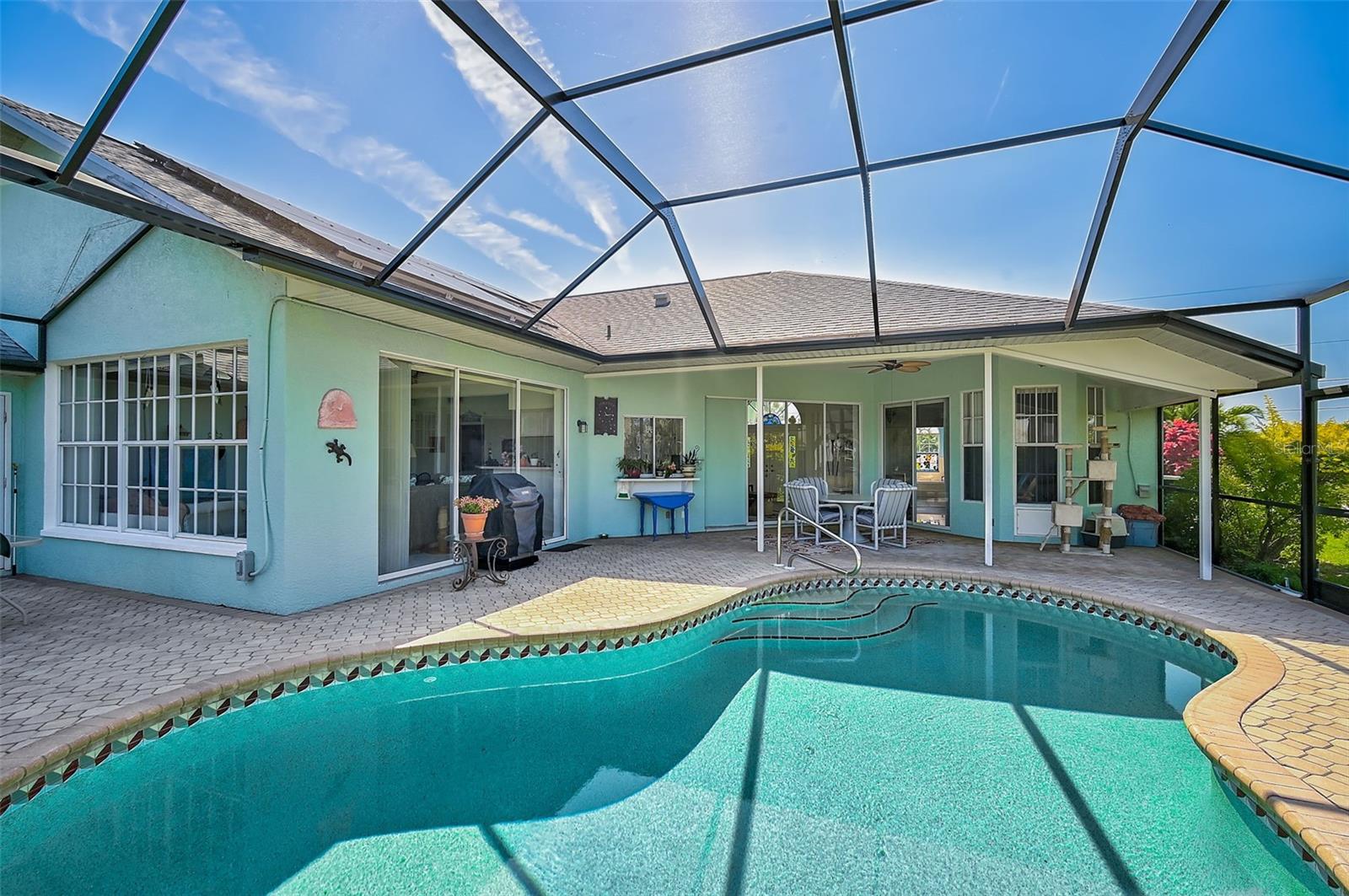 * * * NÃO PERCA - NOVA GAIOLA * * * PAINÉIS SOLARES gerando uma conta de energia extremamente baixa * * * Grande lote, X zona de inundação * * * Bem-vindo a esta deslumbrante casa com piscina personalizada localizada em Rotonda West, uma charmosa e bem - comunidade estabelecida. Situada num enorme canal, esta propriedade oferece um ambiente sereno e pitoresco. Com 4 quartos e 2 banheiros, esta planta de quartos divididos garante privacidade e comodidade para toda a família. Ao se aproximar da casa, você será saudado por um paisagismo exuberante e uma porta dupla, proporcionando uma entrada grandiosa. Os tetos altos em toda a casa criam um ambiente aberto e luminoso, fazendo com que todos os quartos sejam espaçosos e convidativos. A área de estar principal possui tetos de catedral e se conecta perfeitamente ao deck da piscina, criando um espaço perfeito para receber convidados ou desfrutar de momentos tranquilos com sua família. Uma sala de jantar separada oferece um ambiente elegante para refeições formais. A cozinha apresenta um design bem pensado, permitindo fácil preparo e hospedagem das refeições. A planta aberta garante que o chef da casa ainda possa fazer parte da conversa enquanto prepara delícias culinárias. O quarto principal é um retiro por si só, com teto abobadado e banheiro privativo com banheira de imersão, perfeito para relaxar após um longo dia. Os outros três quartos oferecem amplo espaço para familiares ou convidados. O espaço exterior é igualmente impressionante, com um deck de piscina pavimentado que acena para relaxamento e diversão. A refrescante piscina é perfeita para se refrescar durante os dias quentes da Flórida. A propriedade também possui árvores frutíferas, acrescentando um toque de beleza natural. Rotonda West é conhecida por seu extenso sistema de canais, oferecendo 42 quilômetros de cursos de água que serpenteiam pela comunidade, além de lagoas e lagos repletos de peixes e vida selvagem. Se gosta de pescar ou explorar a natureza, este é o local ideal para si. Além disso, os locais de pesca de classe mundial e as deslumbrantes praias do Golfo de Boca Grande e Englewood Beach ficam a uma curta distância de carro. Para os entusiastas do golfe, existem vários campos de golfe nas proximidades, proporcionando muitas oportunidades para praticar o seu swing. O Rotonda Community Park oferece comodidades recreativas adicionais para toda a família desfrutar. A conveniência é fundamental, com lojas, opções gastronômicas, instalações de atendimento médico e locais de entretenimento a uma curta distância. Os fãs de esportes podem assistir a um jogo ou evento no Charlotte Sports Park, nas proximidades. Esta notável casa em Rotonda West oferece uma combinação de luxo, tranquilidade e acessibilidade a todas as comodidades e belezas naturais que o sudoeste da Flórida tem a oferecer. Novo aquecedor de água 2023.. Não perca a oportunidade de personalizá-lo e aproveitar ao máximo o estilo de vida da Flórida.