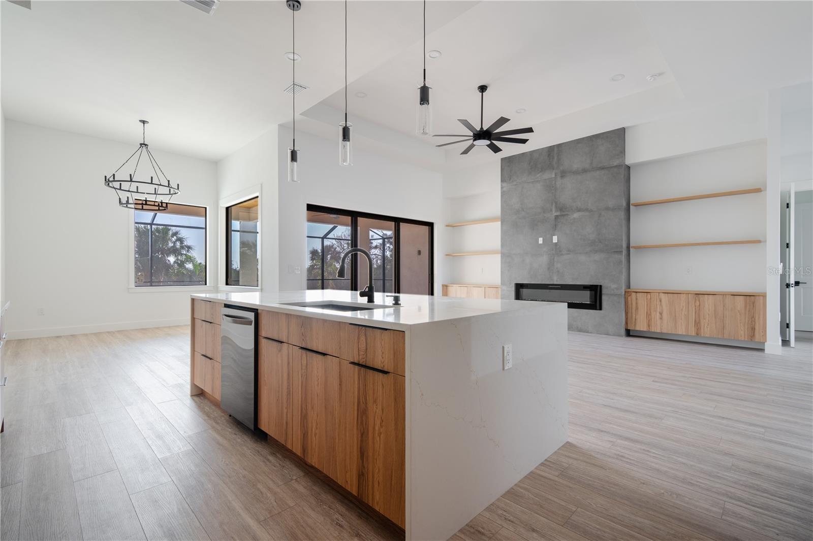 REDUÇÃO DE PREÇO! Esta deslumbrante residência de 3 quartos e 3,5 banheiros ocupa mais de 2.300 pés quadrados de espaço cuidadosamente projetado. Situada num bairro tranquilo com água e esgoto urbanos, esta casa combina facilmente conforto moderno com estilo atemporal. Entre para descobrir um amplo piso plano aberto com tetos altos, apresentando um centro de entretenimento personalizado, perfeito para reuniões e entretenimento. A casa é adornada com belos pisos, incluindo tábuas de vinil premium e azulejos personalizados em todos os banheiros, adicionando um toque de luxo a todos os quartos. A cozinha do chef é um sonho culinário, completa com elegantes bancadas de quartzo, armários sem moldura e eletrodomésticos embutidos para uma experiência culinária perfeita. A luxuosa suíte master oferece um retiro privado, com dois closets espaçosos com embutidos personalizados e um banheiro amplo projetado para relaxar. Cada quarto está equipado com armários embutidos, garantindo amplo armazenamento e organização. Cada um dos dois quartos adicionais possui banheiro completo, proporcionando privacidade e comodidade para familiares ou convidados. A casa também inclui um versátil escritório/escritório bônus, perfeito para trabalhar ou relaxar. Saia para o seu próprio paraíso ao ar livre. Relaxe na piscina aquecida de água salgada, cercada por uma paisagem exuberante que permanece verde e vibrante graças a um eficiente sistema de irrigação. A espaçosa garagem para 3 carros, com acabamento em piso epóxi, oferece muito espaço para seus veículos e necessidades de armazenamento. Mas não se trata apenas da casa – trata-se do estilo de vida. Os entusiastas do golfe apreciarão a proximidade de campos de primeira linha, como Riverwood Golf Club, The Palms e Sarasota National. Além disso, você está a uma curta distância de carro de algumas das praias mais conceituadas da Flórida, incluindo a mundialmente famosa Siesta Key e a serena Englewood Beach. Esta casa é uma verdadeira obra-prima de artesanato de qualidade, oferecendo uma vida luxuosa num ambiente tranquilo. Localizada numa zona calma e apetecível, esta propriedade é o local ideal para chamar de lar. Não perca - agende hoje mesmo sua exibição privada e descubra tudo o que esta casa excepcional tem a oferecer!