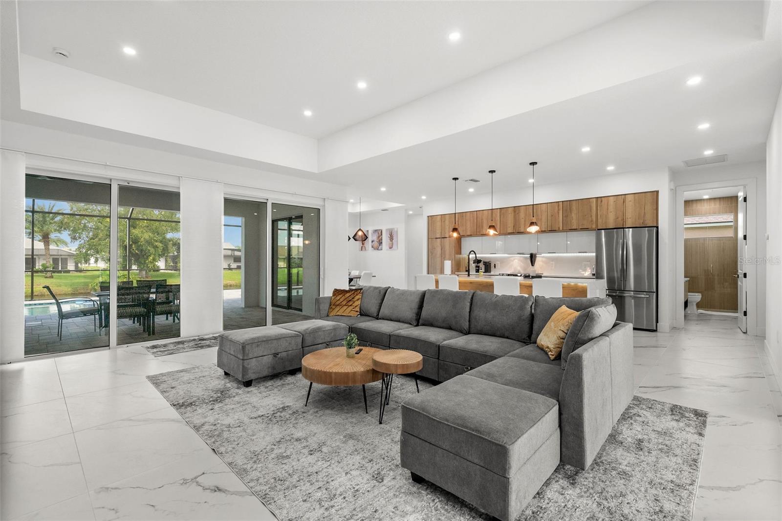 REDUÇÃO DE PREÇO Significativa! Atualmente disponível por apenas US$ 243 por metro quadrado, para um total de 2.857 pés quadrados, esta nova construção luxuosa à beira-mar representa um valor excepcional em comparação com outras propriedades nas proximidades. A vida MODERNA nesta nova residência em Rotonda West é a prova de que você realmente pode ter tudo! Invejavelmente situada em um cobiçado lote À BEIRA-MAR em uma COMUNIDADE DE GOLFE de primeira linha, esta residência incrível exala um apelo impressionante do meio-fio, aprimorado por um jardim frontal com paisagismo impecável. Deleite-se com a tranquilidade com CÂMERAS DE SEGURANÇA integradas. Através das portas duplas incrustadas em vidro, descubra um interior magnificamente trabalhado com ricos detalhes em madeira, tons brancos nítidos, armários flutuantes personalizados e lindo piso de cerâmica. Tetos altos adornados com iluminação embutida criam uma atmosfera acolhedora nas áreas de estar de conceito aberto, ancoradas por extensos controles deslizantes de vidro que inspiram entretenimento interno e externo perfeito. Luminárias chiques lançam um brilho quente sobre a alcova de jantar e a ilha com cascata da cozinha. Com eletrodomésticos de aço inoxidável de primeira linha, armários bonitos e elegantes bancadas de quartzo, é o espaço culinário ideal para um cozinheiro ávido. Vistas deslumbrantes cumprimentam você nos quatro quartos de bom tamanho, todos agraciados com amplo armazenamento e organizadores embutidos. Dois são privativos, incluindo o retiro principal que tem dois closets e um banheiro excepcional com pias duplas, um chuveiro sem moldura e uma banheira independente tipo spa. Saia para a varanda coberta, onde você pode relaxar e desfrutar de reuniões festivas na PISCINA DE ÁGUA SALGADA AQUECIDA, em um cenário idílico do CANAL DE ÁGUA DOCE e fairways exuberantes. Além disso, há lavanderia e garagem anexa para 2 carros. Como vantagens de morar aqui, você terá acesso a comodidades de classe mundial, como cinco campos de golfe, quadras de tênis, parques e vias verdes pitorescas. Além disso, o Complexo Esportivo do Condado de Charlotte, lojas, restaurantes e as praias imaculadas de Englewood, Manasota Key e Boca Grande são de fácil acesso. Venha fazer uma visita enquanto esta fantástica casa ainda está disponível! !!!!O credor Rob Kozina, com NMLS # 1081156 da Midamerica Lenders & Co, está estendendo uma oferta de até 1% do valor do empréstimo para uma taxa de recompra ou crédito do credor especificamente para esta propriedade. Midamerica Lenders & Co, NMLS#309009, é uma Equal Housing Lender. Informamos que esta oferta não constitui um compromisso de empréstimo e certas restrições podem ser aplicadas!!!!