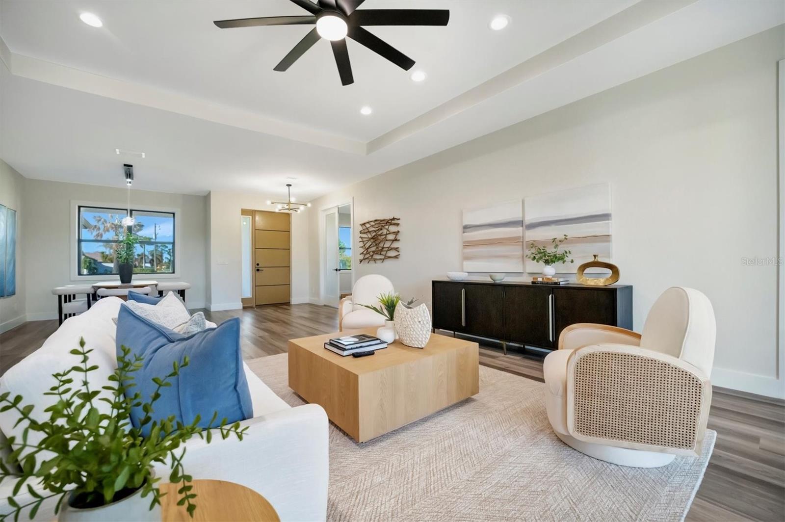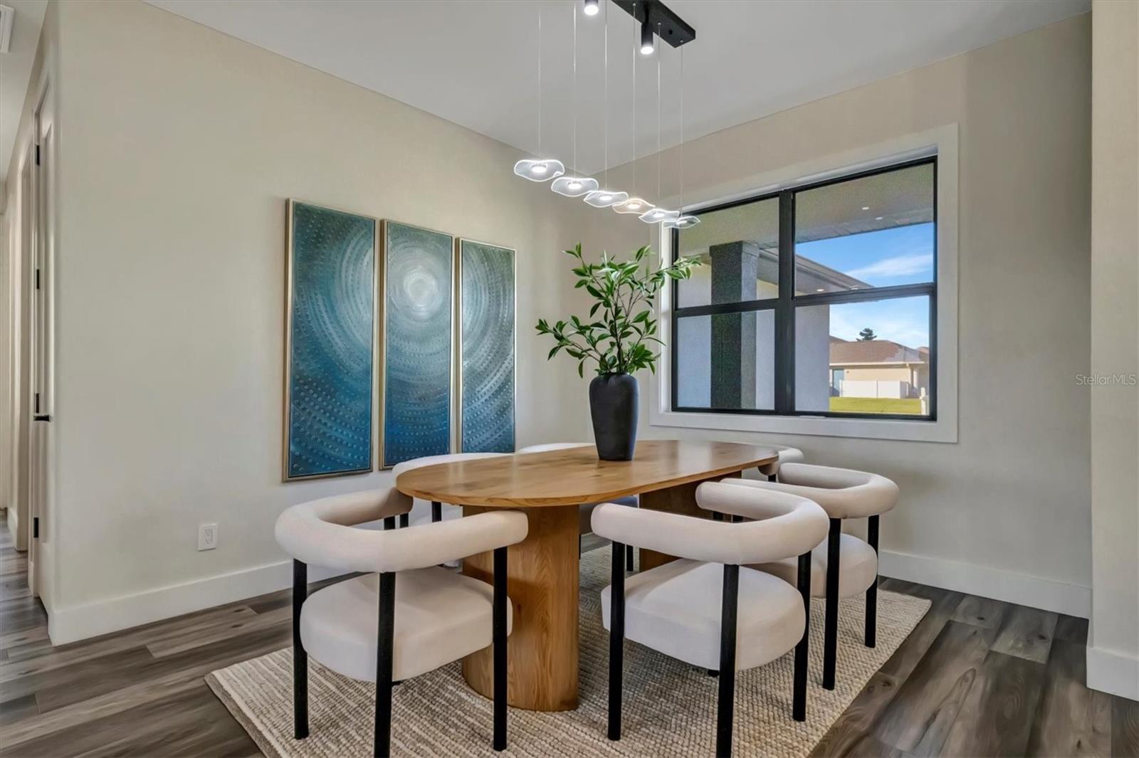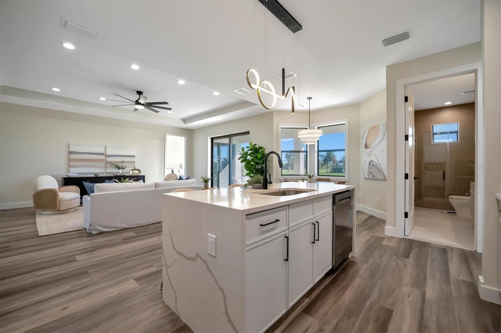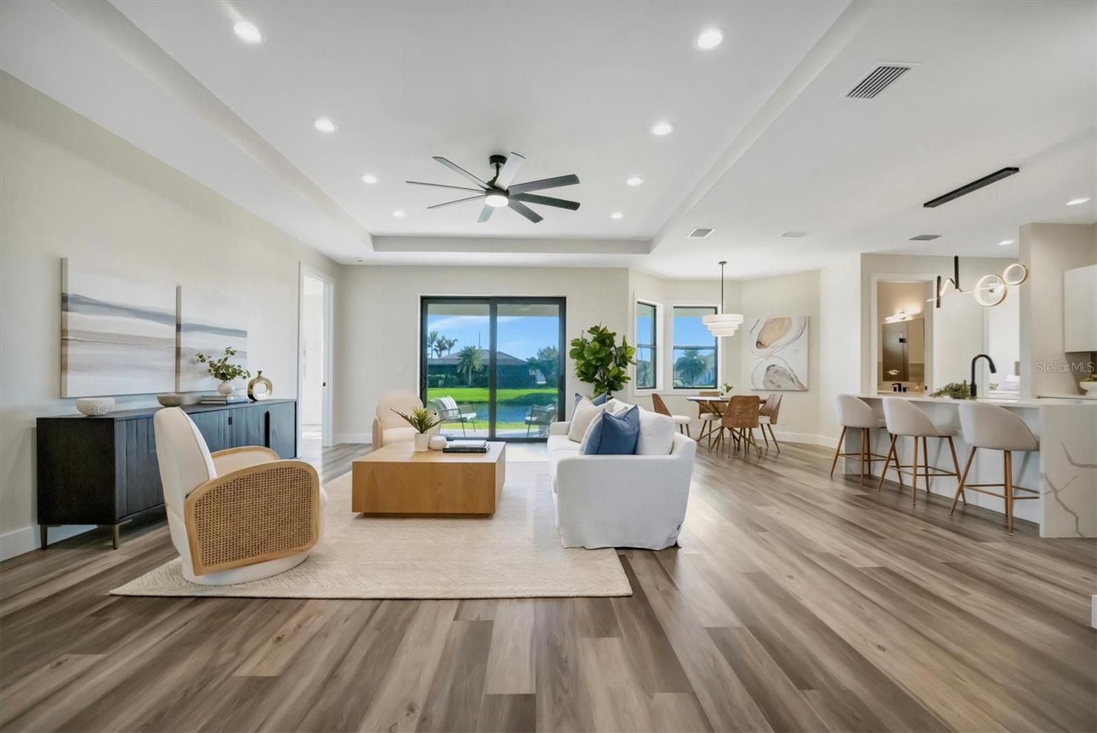 Casa moderna de nova construção de luxo, com acabamentos premium e vistas deslumbrantes de água, aninhadas ao longo de um canal sereno em Pine Valley, Rotunda West. Esta residência cuidadosamente projetada possui 2.486 ± pés quadrados de área de estar, quartos, 3 banheiros, uma garagem de 2 carros de grandes dimensões e uma sala flexível versátil. A cozinha gourmet é um showstopper, com bancadas de quartzo, armários modernos de close suave, uma ilha em cascata, utensílios de aço inoxidável e um elegante backsplash. Os espaços brilhantes e abertos são enquadrados por grandes janelas de impacto, oferecendo vistas serenas de água. A suíte primária é um verdadeiro retiro, completo com armários duplos, um banheiro inspirado em spa com uma banheira de imersão de porcelana, vaidades flutuantes duplas e um chuveiro de grandes dimensões, além de acesso direto à Lanai. Destaques adicionais incluem uma lavanderia totalmente equipada, acabamentos premium e áreas de estar ao ar livre convidativas, perfeitas para entretenimento ou desenrolamento. Aproveite o melhor da vida no sudoeste da Flórida - faça um cruzeiro ao pôr do sol no seu pontão ou peixe do seu barco de baixo desde o seu quintal. *Pergunte sobre o nosso programa de credor