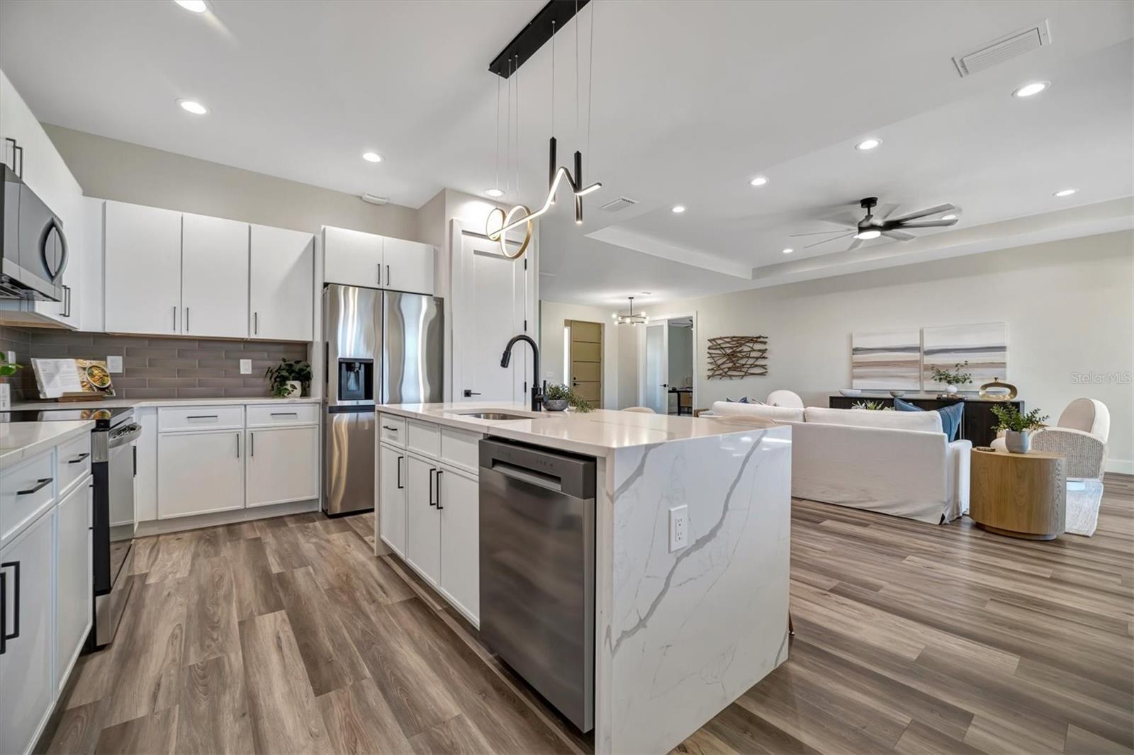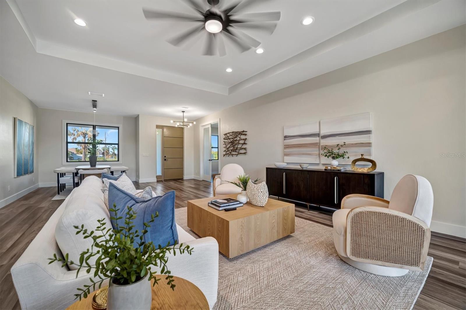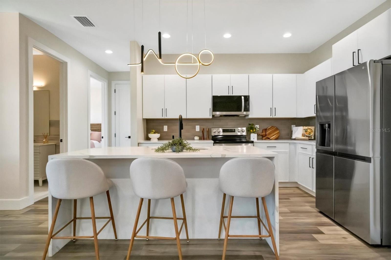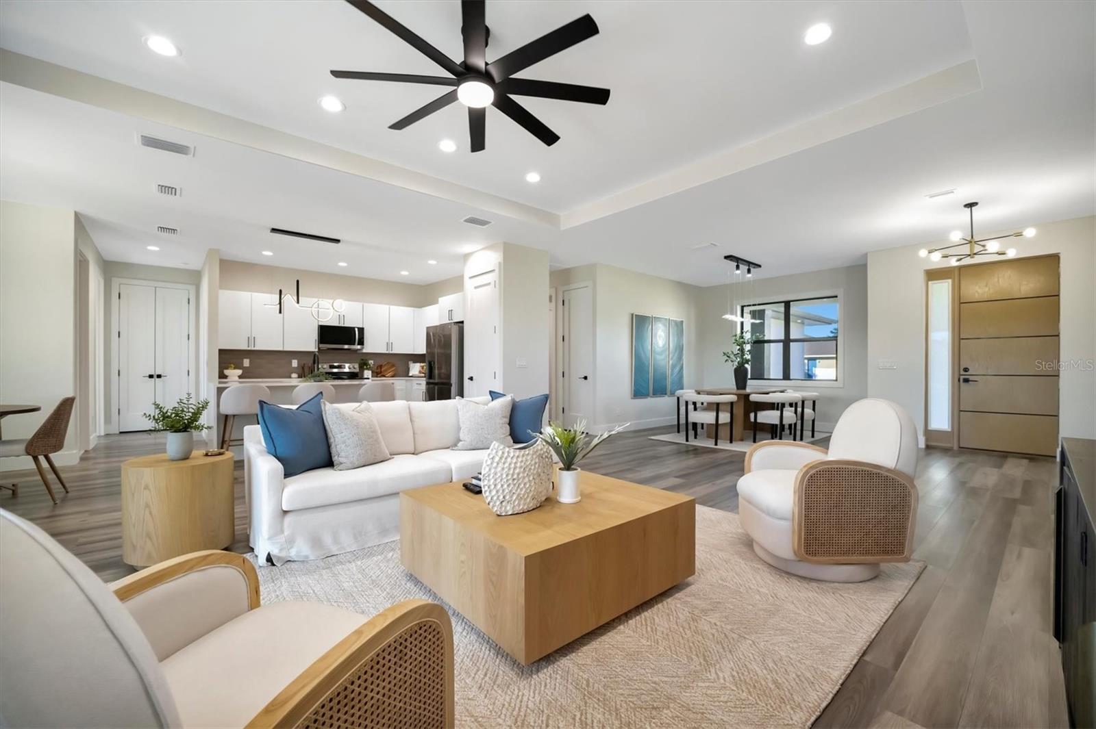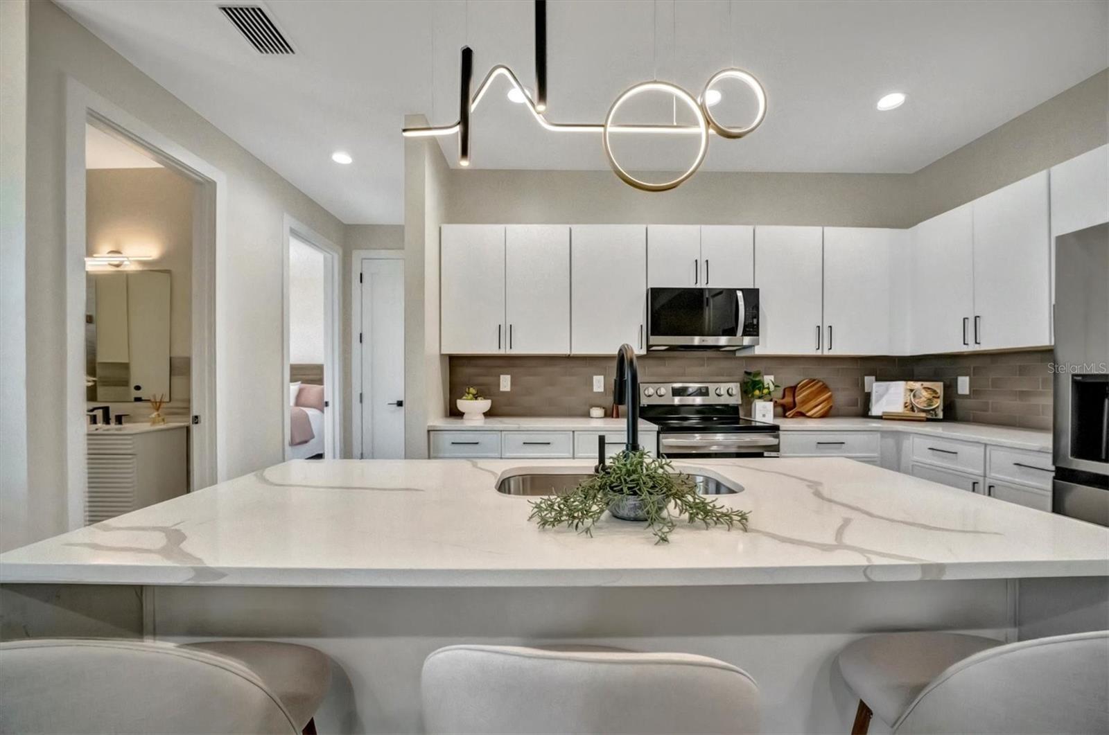 Casa moderna de nova construção de luxo, com acabamentos premium e vistas deslumbrantes de água, aninhadas ao longo de um canal sereno em Pine Valley, Rotunda West. Esta residência cuidadosamente projetada possui 2.486 ± pés quadrados de área de estar, quartos, 3 banheiros, uma garagem de 2 carros de grandes dimensões e uma sala flexível versátil. A cozinha gourmet é um showstopper, com bancadas de quartzo, armários modernos de close suave, uma ilha em cascata, utensílios de aço inoxidável e um elegante backsplash. Os espaços brilhantes e abertos são enquadrados por grandes janelas de impacto, oferecendo vistas serenas de água. A suíte primária é um verdadeiro retiro, completo com armários duplos, um banheiro inspirado em spa com uma banheira de imersão de porcelana, vaidades flutuantes duplas e um chuveiro de grandes dimensões, além de acesso direto à Lanai. Destaques adicionais incluem uma lavanderia totalmente equipada, acabamentos premium e áreas de estar ao ar livre convidativas, perfeitas para entretenimento ou desenrolamento. Aproveite o melhor da vida no sudoeste da Flórida - faça um cruzeiro ao pôr do sol no seu pontão ou peixe do seu barco de baixo desde o seu quintal. *Pergunte sobre o nosso programa de credor