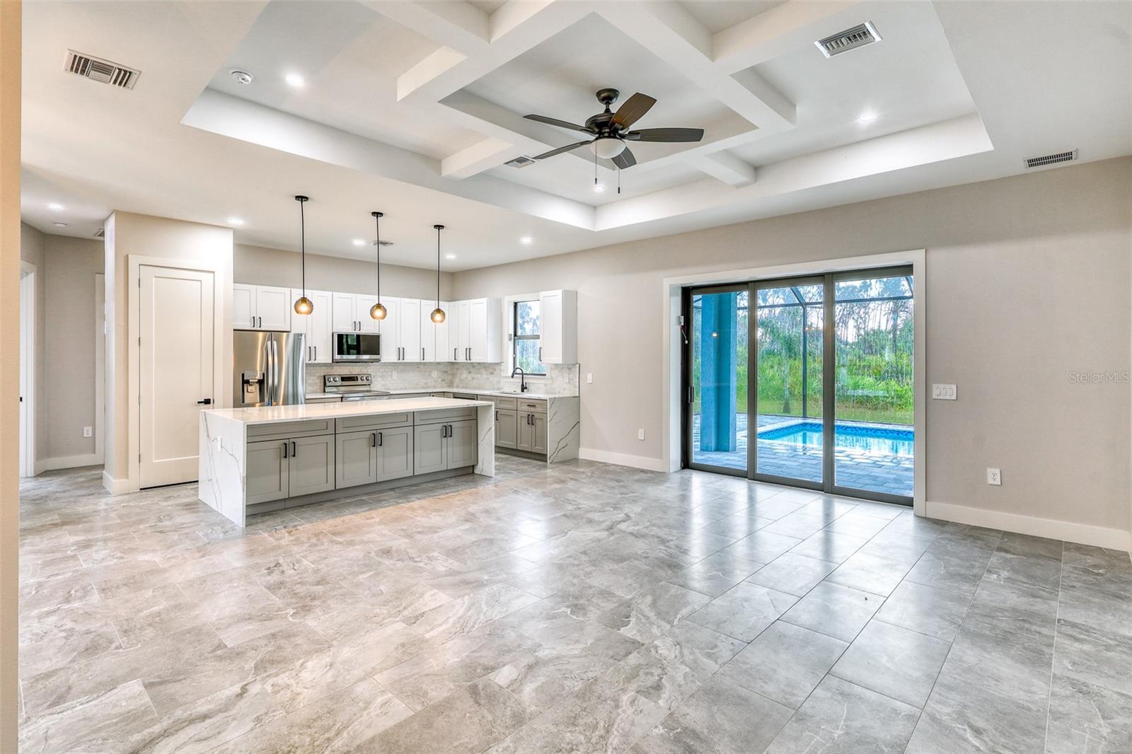 Bem-vindo a esta deslumbrante casa com um ano de idade, com uma linda piscina, situada numa rua tranquila perto do campo de golfe e a uma curta distância de carro das melhores praias! Ao entrar, você notará a espaçosa planta aberta com tetos de 3 metros que criam uma sensação arejada, complementada por elegantes tetos na sala de estar, no quarto principal e na área de jantar. A cozinha é perfeita para cozinhar e se divertir, oferecendo muitos armários e uma grande ilha de 2,7 metros para espaço adicional no balcão. Desfrute de elegantes bancadas em cascata de quartzo e piso cerâmico de baixa manutenção em toda a casa. O banheiro principal é um verdadeiro oásis, com pias duplas, banheira independente e chuveiro com box de vidro. A área da piscina está totalmente protegida para maior conforto e já existem canalizações e ligações eléctricas para uma futura cozinha exterior! Esta casa também possui portas de 2,5 metros e portas e janelas de impacto duráveis para maior tranquilidade e está localizada em uma zona livre de inundações, tornando-a um lugar fantástico para viver e desfrutar!