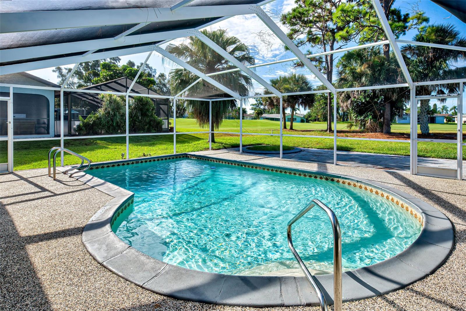 Uma ou mais fotos foram virtualmente encenadas. NO CAMPO DE GOLFE, COM PISCINA! Totalmente renovada e atualizada, pronta para morar, 1756 SF, casa com PISCINA de 3 quartos e 2 banheiros entre o 13º green e o 14º tee do campo de golfe The Hills, com vista deslumbrante para a água, na popular COMUNIDADE DE GOLFE com escritura restrita de ROTONDA WEST! Perto de pesca e golfe de classe mundial, parques de beisebol, várias praias do Golfo, restaurantes, lojas e muito mais! Enganosamente espaçoso (parece pequeno visto da rua). Planta baixa muito versátil, com sala de estar formal + ampla sala de família e portas de correr que levam a uma linda piscina / varanda de grandes dimensões. Azulejo e laminado por toda parte (sem carpete!). Cozinha totalmente refeita, com lindos armários novos, bancada em granito, backsplash de azulejos, eletrodomésticos em inox! NOVO telhado! Muitas outras melhorias feitas nos últimos 2 anos e meio, incluindo NOVO AC, ambos os banheiros atualizados, NOVO aquecedor de água quente, NOVA lavadora e secadora, NOVA porta de garagem incluindo abertura automática, NOVO painel elétrico. A linda piscina de tecnologia de seixo recém-reformada e a varanda expandida são uma delícia para o artista! Piscina com exposição sul! Banho de piscina! Bairro charmoso, com NOVO clube comunitário e lindo parque com trilhas para caminhada. Garantia residencial de um ano incluída! A MISTURA PERFEITA DE VIDA CONFORTÁVEL, LOCALIZAÇÃO ESCOLHIDA E PREÇO ACESSÍVEL!