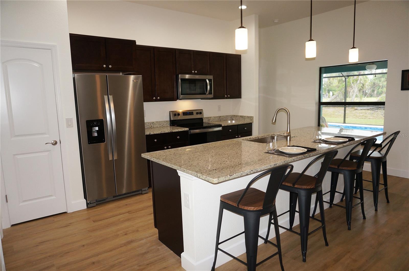 ***NOVA CONSTRUÇÃO 2023*** Casa de 3 quartos, 2 banheiros e garagem anexa de grandes dimensões para 3 carros localizada EM UM CAMPO DE GOLFE na desejável comunidade de golfe com escritura restrita de ROTONDA WEST PINEHURST. Esta casa leve e luminosa oferece belos recursos de design em toda a casa. Há um conceito aberto e planta de quarto dividido com ótima sala e área de jantar, cozinha bem equipada, lavanderia interna com lavadora e secadora Samsung de carregamento superior e Lanai blindado. A Grande Sala e a Área de Jantar oferecem tetos planos e luxuosos pisos de pranchas de vinil. A bela cozinha possui armários de madeira, balcões de granito, eletrodomésticos Whirlpool em inox, balcão para café da manhã com capacidade para quatro pessoas, despensa e abertura para a Sala Grande. A espaçosa suíte Master tem DOIS closets, teto falso e banheiro privativo com penteadeira de madeira, balcão de granito e chuveiro amplo. Há dois quartos adicionais de tamanho generoso e o banheiro de hóspedes tem uma combinação de banheira/chuveiro. Sua área de estar se estende através de portas de vidro deslizantes na Grande Sala até a área de Lanai e Piscina com ampla área coberta, amplo deck para banhos de sol e piscina subterrânea aquecida 24X12. A gaiola da piscina é NOVA. Fabulosa VISTA DO CAMPO DE GOLFE e vistas de árvores e plantas maduras da Flórida. Outras características incluem 7 ventiladores de teto de luxo com luzes, piso de pranchas de vinil de luxo por toda parte, paisagismo encantador, entrada de automóveis de grandes dimensões, tetos de bandeja, cores neutras por toda parte. ** MUITOS ITENS transmitem com a casa. Peça ao seu agente a lista anexa de itens que transmitem** ROTONDA WEST oferece quarenta quilômetros de canais, além de lagoas e lagos repletos de peixes e vida selvagem, atrações comunitárias, golfe, bem como diversas praias de areia nas proximidades. Os passeios de barco são populares em Lemon Bay e nos arredores de Boca Grande. O vizinho Golfo do México oferece algumas das melhores pescarias do mundo. Esta é uma bela casa NOVA em uma grande comunidade!