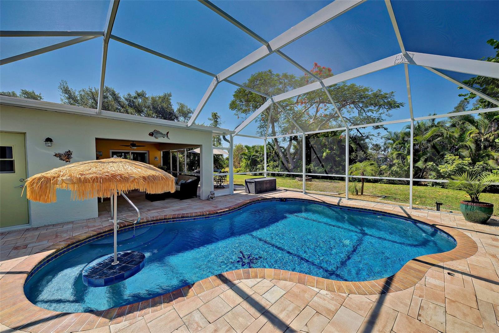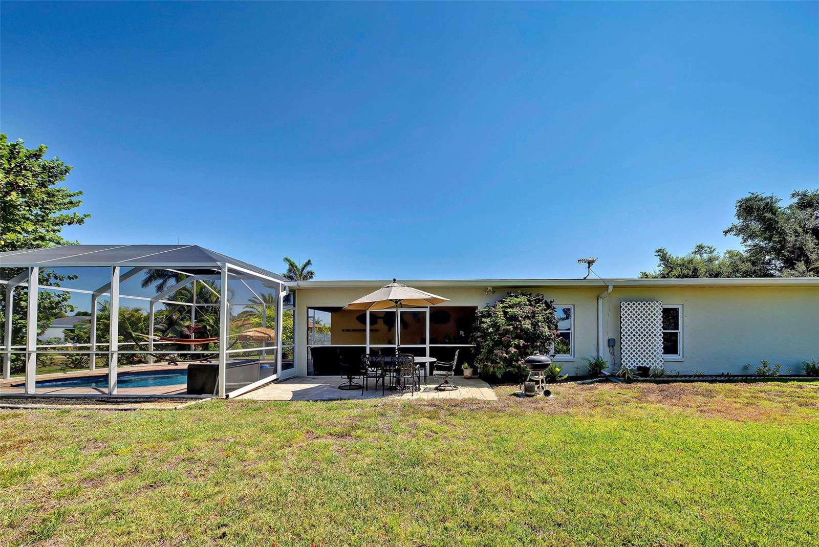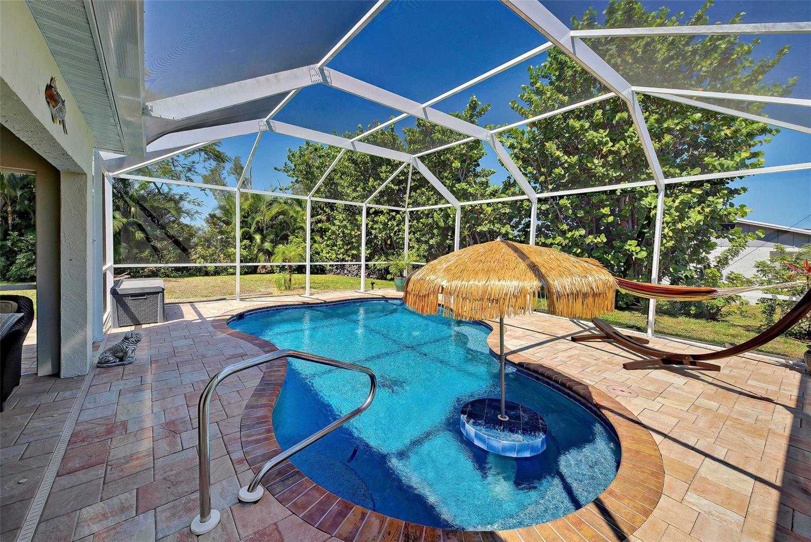 Completamente ileso pelas tempestades recentes! Esta bela casa na Caddy Rd NÃO ESTÁ EM ZONA DE INUNDAÇÃO!!! Sua busca acabou, esta CASA COM PISCINA de 4 quartos e 2 banheiros, maravilhosamente bem conservada e exterior recém-pintada está esperando por você!!! Esta casa fica num LOTE DUPLO com água municipal e esgoto, tem poço para irrigação e NÃO ESTÁ EM ZONA DE INUNDAÇÃO. Suba a entrada para um gramado verde bem cuidado, um paisagismo tropical maduro ao redor da casa e da piscina. A varanda frontal fechada oferece um ótimo lugar para desfrutar do seu café da manhã. Ao entrar na casa, você será recebido na bela sala de estar. A cozinha possui muitos armários para arrumação e abre-se para a sala de estar para entretenimento. Existe também um “dry bar” para preparar aos seus convidados as suas bebidas preferidas. A sala de estar principal, cozinha, sala de jantar, lavanderia e banheiros possuem revestimento cerâmico, enquanto os 4 quartos apresentam piso laminado mais recente. O vendedor mandou instalar em 2016 a piscina AQUECIDA DE ÁGUA SALGADA que conta com 2 jatos terapêuticos e 2 “deck shooters” e se não bastasse confira a mesa embutida com guarda-sol de grama para saborear aqueles coquetéis enquanto flutua na piscina. A seguir está uma lista das atualizações mais recentes da casa: Sistema RO na cozinha também conectado ao refrigerador, janelas com painel térmico 2021 instaladas e porta deslizante que dá para a piscina (persianas incluídas), telhado 2023 instalado e telhado plano recertificado, piscina nova gaiola e varanda frontal em 2023 (depois de Ian), novo AC instalado em 2024, poços de irrigação instalados em 2020 e 16 pol. de novo isolamento soprado instalado em 2019, aquecedor de água quente 2021. TODOS OS ITENS GRANDES DO BILHETE FORAM SUBSTITUÍDOS, vire a chave e desfrute do seu animal de estimação em casa gratuitamente. A Rotunda oferece 5 campos de golfe, esta casa fica em frente ao 13º green. Localizado a cerca de 20 minutos das nossas belas praias da Costa do Golfo!