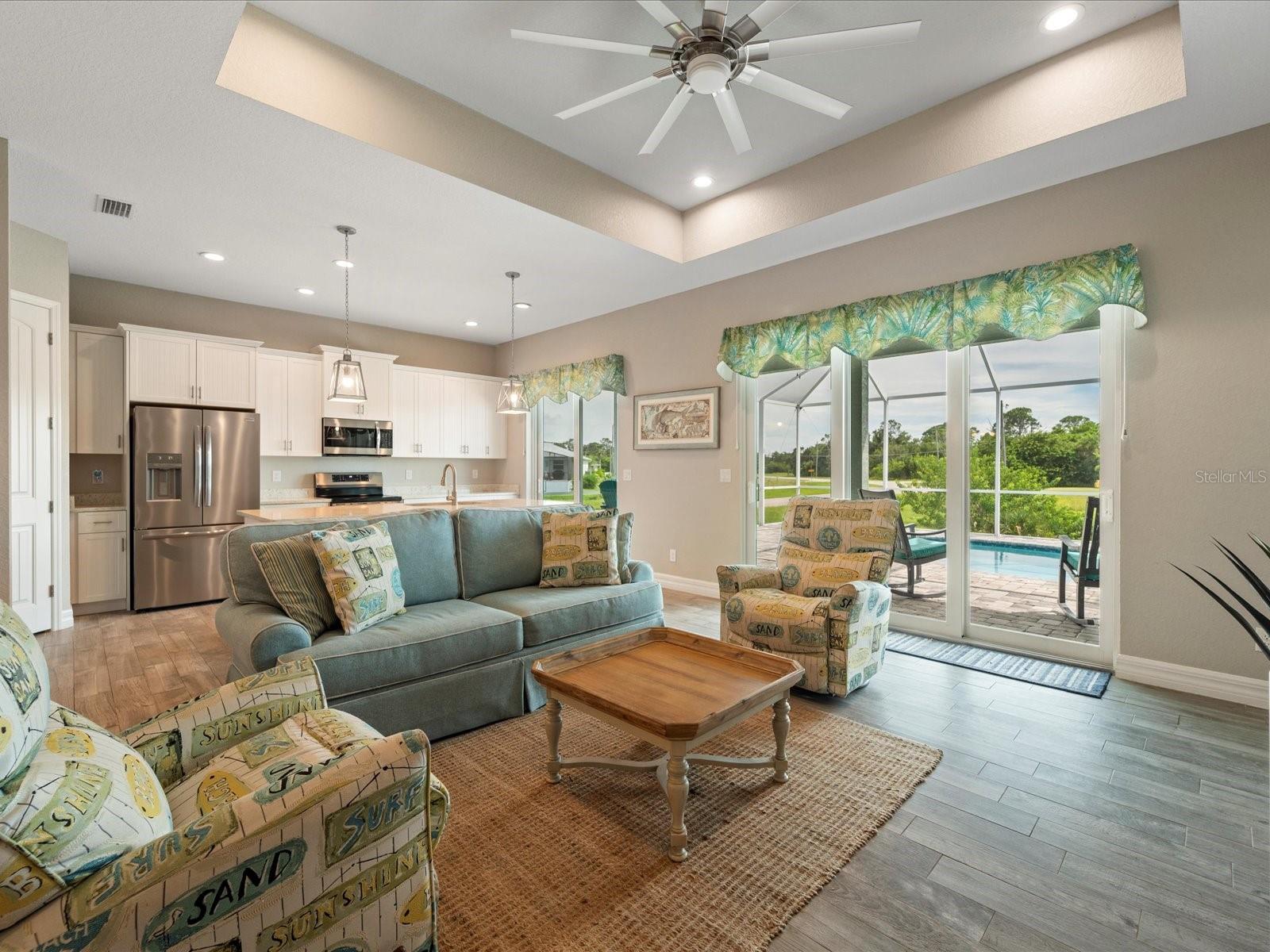 Totalmente mobiliada Home de 3 anos, localizada em Lovely Lake, na comunidade de praia de Rotonda Heights! Just bring your toothbrush to this welcoming home with an open floor plan that throughout entire house has modern, soaring 10' high ceilings with volume trays, 8' doors, millennium durable allergen-free porcelain plank flooring (a MUST in Florida with all the sand), high end Quartz countertops, cabinetry that has its own crown molding plus elegant handles on doors & drawers with 42" uppers that are stepped, fully tiled Bathrooms, utensílios de aço inoxidável, uma despensa grande e de canto, rodapés de mais de 5 polegadas, pacote de iluminação completa atualizada, incluindo ventiladores de teto em todos os quartos, sala de estar e lanchonete! Linda ladrilho de sotaque de vidro decorativo e iluminação LED também tem uma margem de sol para mergulhar de pé, brincadeira de criança ou diversão na família! As lajes como areia podem lavar, mas não os blocos de cimento! Além disso, a construção de 3 anos traz seguro de baixo custo e uma tranqüilidade com a propriedade da casa de baixa manutenção. Todos os móveis têm menos de 3 anos e mal foram usados desde que o proprietário não conseguiu encontrar mais de algumas semanas para se descer para desfrutar de sua nova construção. O proprietário lutou para o lar de seus meses pós-Hurricane Ian & Insurance pagou por um novo telhado em 2024. Prometa que você não ficará desapontado com esta linda e fabulosamente construída Geme Gem, localizada na incrível comunidade de Rotonda Heights!