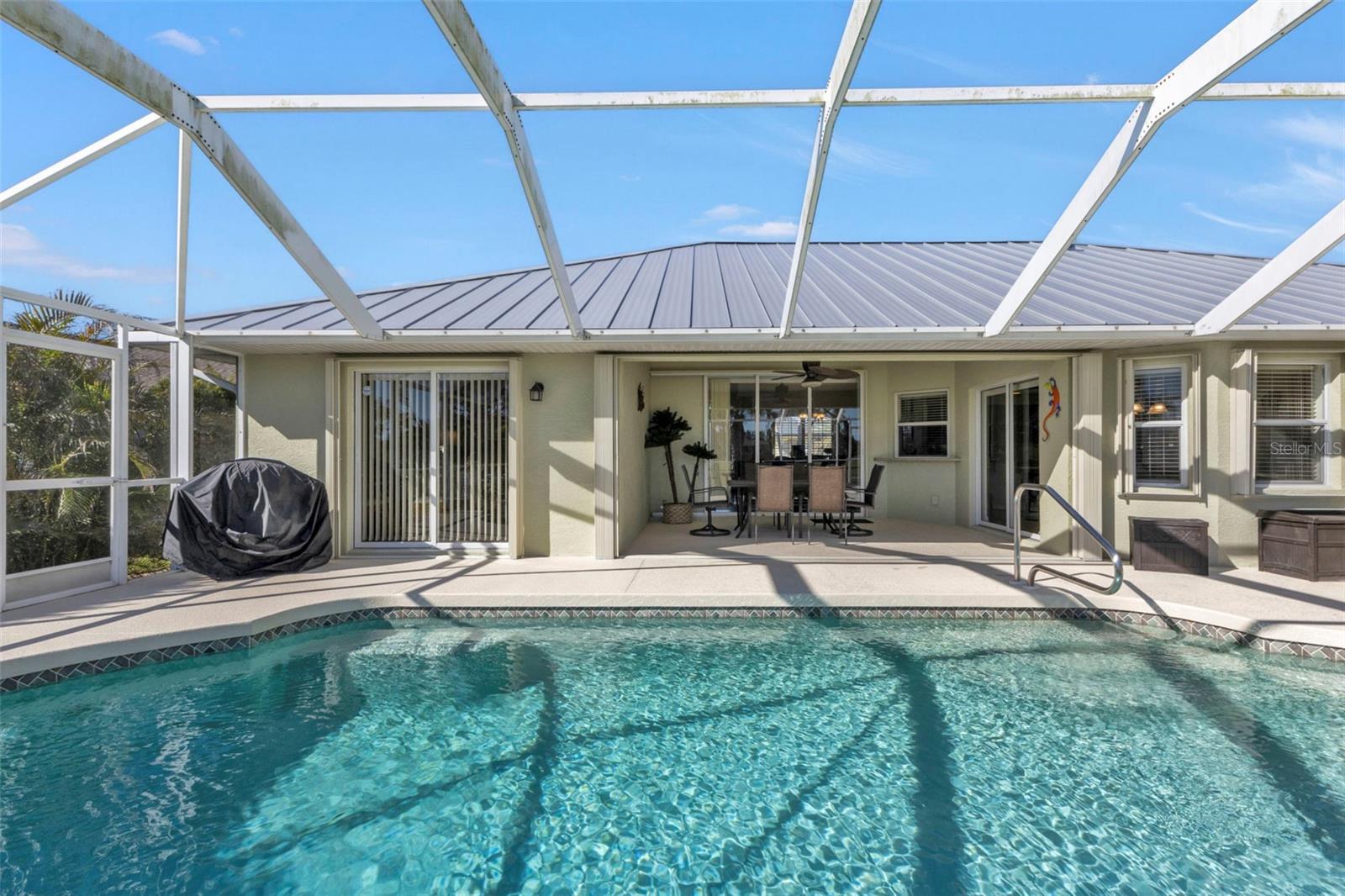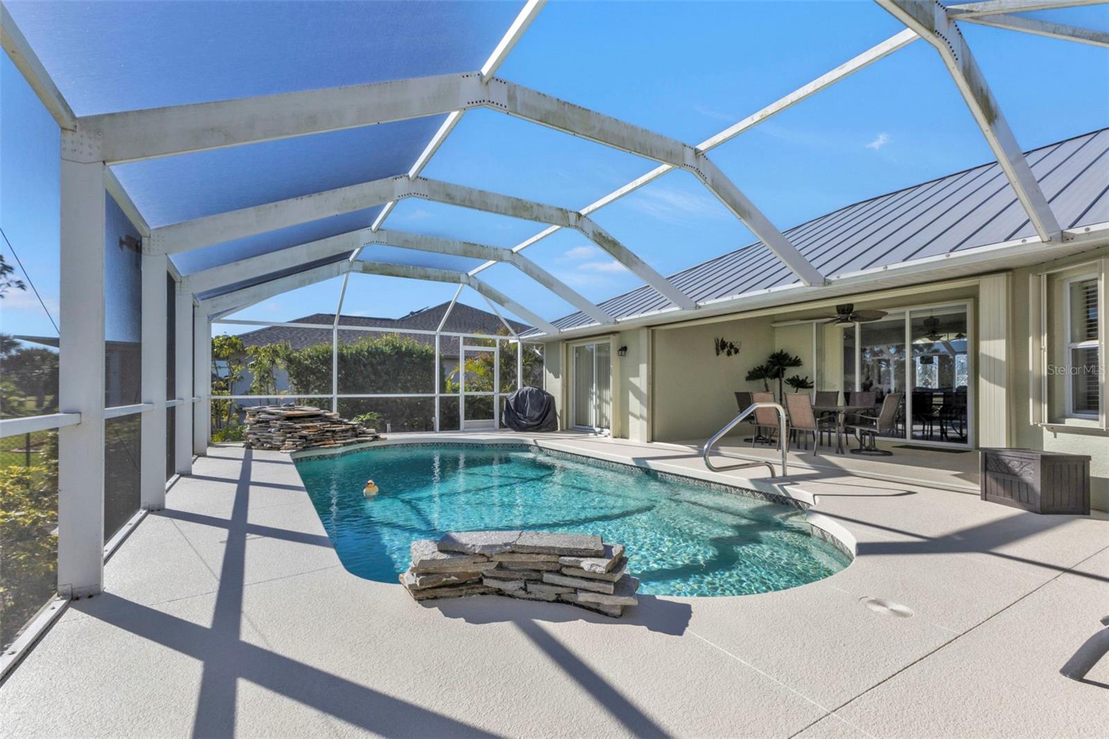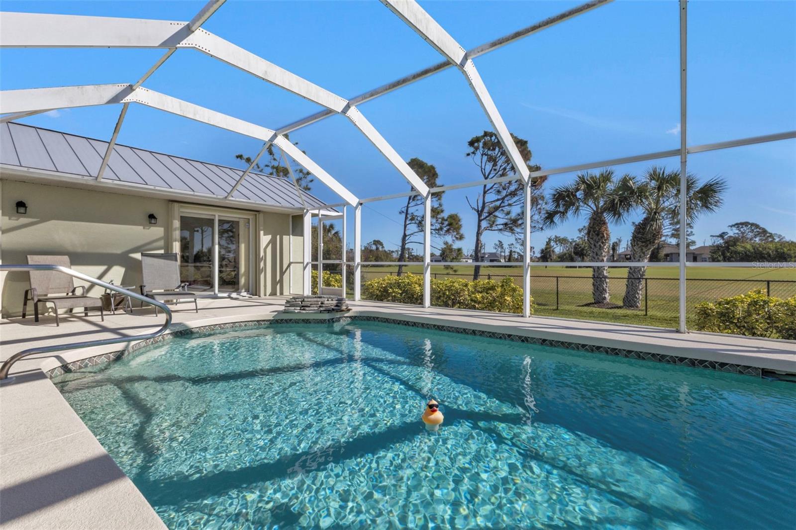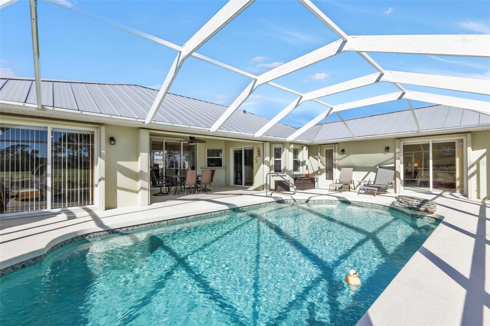 LINDA casa com 3 quartos, 2 banheiros, garagem para 3 carros e piscina localizada no campo de golfe em Rotonda West. CLIQUE NO LINK DO TOUR VIRTUAL 1 PARA O VÍDEO E NO LINK VIRTUAL 2 PARA O TOUR 3D. Apresentando uma planta baixa clara e aberta, piso laminado e azulejo nas principais áreas de estar, tetos altos abobadados, estantes de plantas e MUITO MAIS! Passe bons momentos com amigos e familiares em uma sala de estar e jantar aberta com uma grande janela e controle deslizante de vidro para muita iluminação natural. A cozinha oferece TODOS os eletrodomésticos de aço inoxidável, bancadas de superfície sólida, backsplash de azulejos, armário despensa, balcão para café da manhã e copa. O espaçoso quarto principal tem um controle deslizante de vidro para a varanda, closets DUAL e um banheiro privativo com pia dupla, banheira de imersão, chuveiro com box ALL Tile e armário de linho. Os quartos de hóspedes estão em uma planta dividida, proporcionando muita privacidade com armários embutidos e um quarto de hóspedes compartilhado nas proximidades. Expanda seu espaço de convivência e entretenimento para a varanda, onde você pode saborear seu café da manhã ou relaxar com sua bebida favorita à noite. Dê um mergulho em uma piscina privativa AQUECIDA com cascata ou aproveite o sol no deck da piscina. Desfrute de um quintal totalmente vedado com vista para o campo de golfe! TELHADO DE METAL 2023 - PROTEÇÃO CONTRA FURACÃO - 2020 A/C - APARELHOS MAIS NOVOS - QUINTAL TOTALMENTE CERCADO - BAIXAS TAXAS DE HOA. A comunidade Rotonda West oferece um parque e reserva onde você pode desfrutar de trilhas para caminhada bem conservadas e um centro comunitário com atividades durante todo o ano! Apenas uma curta viagem de carro até as praias do Golfo de Boca Grande, Englewood ou Manasota Key, para citar algumas, onde você encontrará pesca de classe mundial e areia branca entre os dedos dos pés. Outras comodidades da área incluem restaurantes finos e casuais, lojas e boutiques, passeios de barco e golfe. Agende sua exibição HOJE!