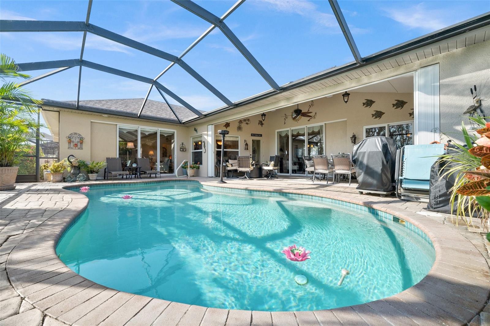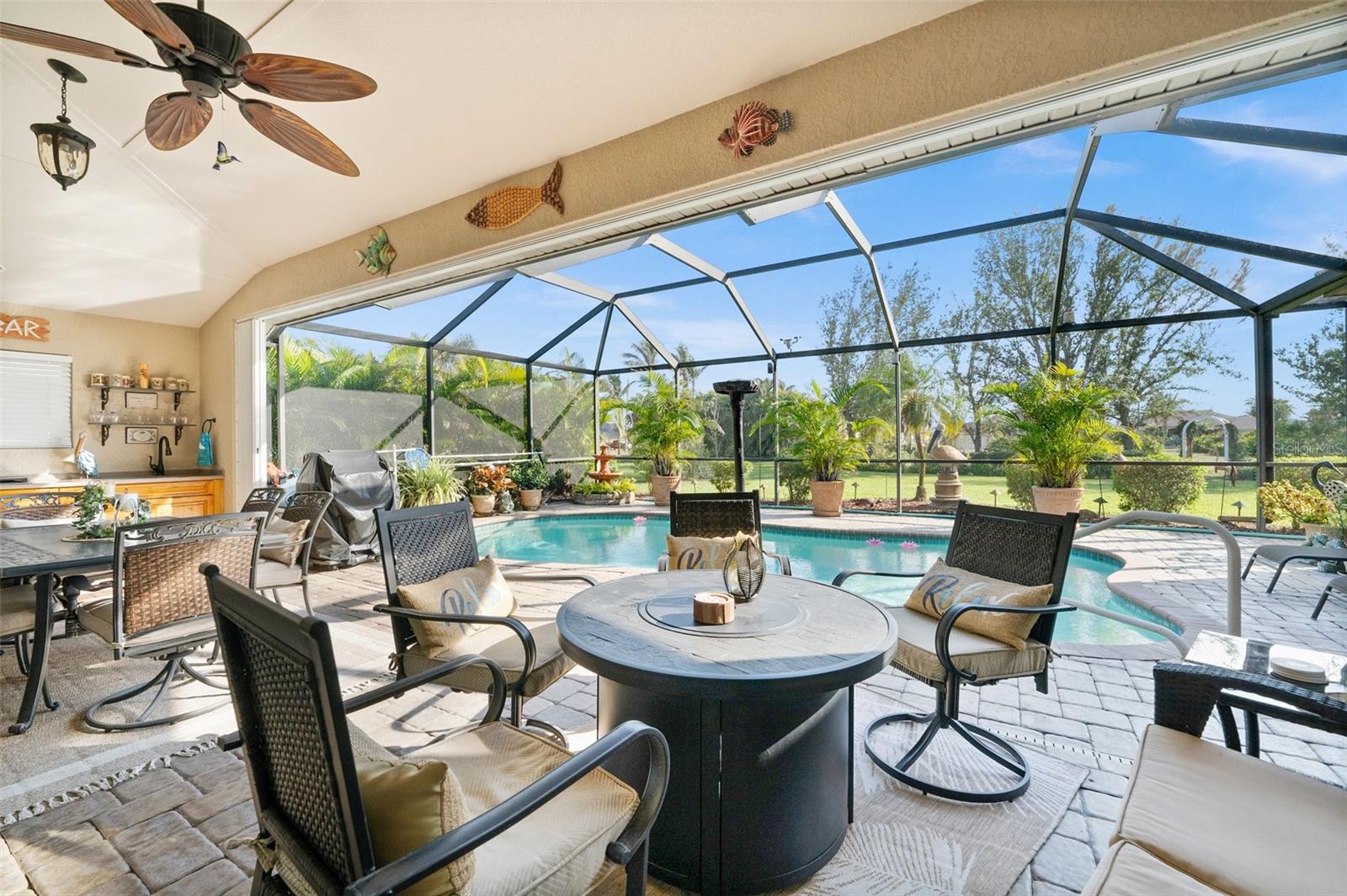 Preço reduzido! Nenhuma inundação necessária e taxas baixas de HOA! Viva o estilo de vida costeiro dos sonhos com este quarto de 3 quartos, 2 banheiros, garagem de 2 carros, piscina em casa com uma sala de jantar formal e uma sala de família, situada em um lote de grandes dimensões em Rotonda West. Com mais de 2.300 pés quadrados de espaço de estar lindamente projetado, esta casa é uma obra -prima de elegância e funcionalidade, com ladrilhos de porcelana nas principais áreas de estar, tetos com altos cofres e bandeja, iluminação recuada e pendente e muito mais! As salas de estar e jantar fornecem o cenário perfeito para reuniões inesquecíveis com amigos e familiares, fluindo perfeitamente para a cozinha para um entretenimento sem esforço. A cozinha gourmet oferece todos os aparelhos de aço inoxidável, bancadas em granito, um respingo traseiro de azulejos, uma ilha central, uma despensa espaçosa, uma barra de café da manhã e uma lanchonete de cozinha. A sala da família oferece o espaço perfeito para relaxar e entreter, com prateleiras embutidas e um grande controle deslizante de vidro que se abre para o Lanai, trazendo o ar livre. O espaçoso quarto principal tem um controle deslizante de vidro para o lanai, um armário organizado. Os quartos de hóspedes estão em uma planta baixa, proporcionando muita privacidade com armários e um banheiro de hóspedes compartilhado com torneira em cascata nas proximidades. Um oásis ao ar livre aguarda na varanda selecionada, onde você encontrará uma cozinha ao ar livre com uma gama Genair & Beverage Cool, perfeita para hospedar churrascos de verão, uma piscina de água salgada aquecida solar, onde você pode se deliciar com uma nadar refrescante o ano todo e um belo paisagismo exuberante. Jogue ou relaxe no quintal expansivo, cercado por paisagismo lindamente bem cuidado. A garagem de grandes dimensões possui uma oficina privada e espaço de armazenamento com uma parede que é facilmente removível, se desejar. 2022 Telhado - Janelas e portas de impacto do furacão - Rolando o obturador da porta da frente do furacão - acorde Lanai Shutter- pavimentador Driveay - Sistema de segurança - Solar de propriedade - lavadora e secadora de alta eficiência - Irrigação - iluminação da paisagem. A Comunidade de Rotonda West oferece um Park & Reserve, onde você pode desfrutar de trilhas para caminhada bem mantidas, um centro comunitário com atividades durante todo o ano e 5 campos de golfe públicos! Apenas a uma curta viagem de carro até as praias do Golfo de Boca Grande, Englewood ou Manasota, para citar alguns onde você encontrará pesca de classe mundial e areia branca entre os dedos dos pés. Outras comodidades da área incluem refeições finas e casuais, lojas e butiques, passeios de barco e golfe. Agende sua exibição hoje!