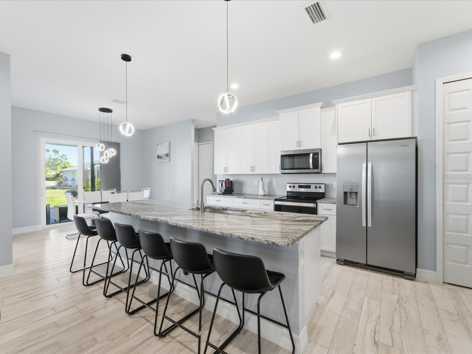NOVA casa com PISCINA personalizada com 4 quartos, 2 banheiros, tetos de 10' e portas de 8' por toda parte, além de 5 conjuntos de portas de vidro deslizantes localizadas na distinta Rotonda West! Procurando alojamentos para hóspedes dos quais eles nunca mais vão querer sair? Esta casa tem um quarto de hóspedes incrível com portas de vidro deslizantes para sua própria varanda privativa! Quase 2.100 pés quadrados de espaço fabuloso, o exterior é igualmente impressionante com DUAS varandas totalizando 388 pés quadrados de vida ao ar livre coberta, além de um deck de piscina de 42'x20' e todas as janelas e portas resistentes a impactos. A cozinha e os banheiros possuem armários de madeira maciça com fechamento suave, complementados por granito durável de alto nível com veios incríveis percorrendo toda a casa, e toda a casa possui piso de porcelanato livre de alérgenos, fácil de limpar e manter. O quarto principal tem dois closets, pias duplas, banheiro privativo com um lindo box amplo de estilo romano totalmente revestido em azulejos, armário de roupa de cama, vaso sanitário privativo e luxuosa banheira de imersão. Você quer armazenamento?! A cozinha tem 2, sim 2 despensas, há um armário no corredor e outro armário de roupa no banheiro de hóspedes, e um quarto de hóspedes também tem um closet! A piscina tem um terraço para relaxar ou um local seguro e divertido para animais de estimação e netos! A localização desta propriedade é conveniente na seção Pine Valley, perto de Rotonda Circle, fica a poucos passos de um campo de golfe e perto de outros 4, perto das praias de Boca Grande, perto de 3 rampas para barcos e todas as comodidades estão ao seu alcance. Sobre água pública e esgoto público, e pedido do vendedor para que a LOMA coloque a propriedade na zona de inundação X. Não hesite em fazer deste o seu pedaço do paraíso da Flórida!