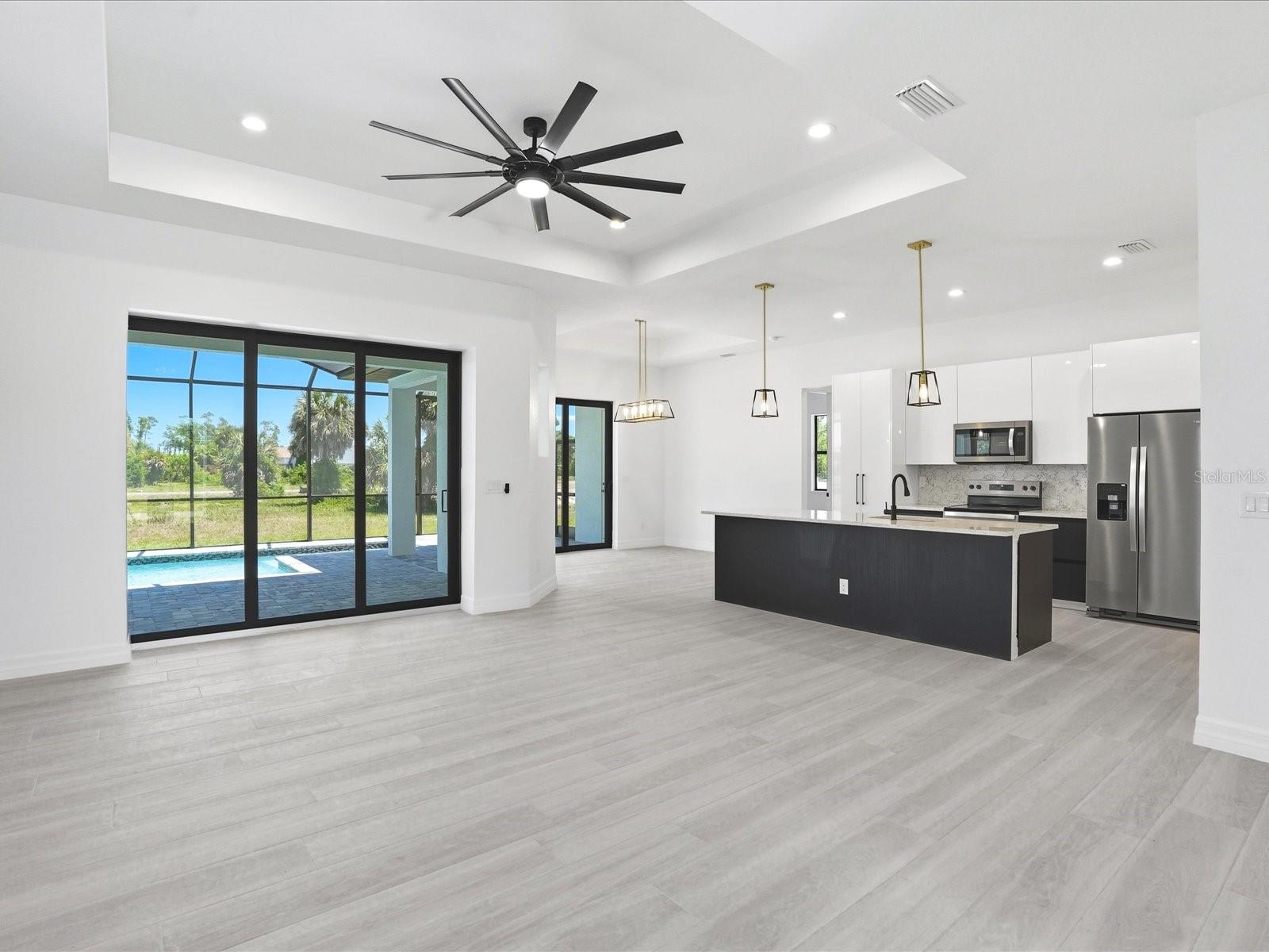 PRONTO PARA MUDANÇA | CONSTRUÇÃO NOVIDADE | CASA PISCINA | VIDRO DE IMPACTO | GARAGEM PARA 3 CARROS | BAIXO HOA. A partir do momento em que você chega, esta casa excepcional faz uma declaração - apresentando uma entrada de automóveis iluminada, uma varanda frontal convidativa e uma elegante entrada de porta dupla que dá o tom para o artesanato de qualidade encontrado por toda parte. Localizada na altamente desejável comunidade de campos de golfe de Rotonda West - a apenas 11 minutos de Englewood Beach, esta residência de 4 QUARTOS, 3 BANHEIROS e GARAGEM PARA 3 CARROS foi cuidadosamente projetada sem nenhum detalhe negligenciado e nenhuma característica subestimada. Entre em tetos altos e volumosos, portas de 2,5 metros e um layout de conceito aberto e cheio de luz. A sala de estar apresenta um teto dramático com sancas, iluminação embutida e um ventilador de teto de 6 pés, enquanto uma porta de vidro deslizante de 3 painéis se abre perfeitamente para a varanda coberta - criando o melhor estilo de vida interno e externo da Flórida. A área de jantar formal é ideal para entretenimento, aprimorada por portas duplas de vidro deslizantes e amplo espaço para um aparador elegante. No coração da casa, a cozinha inspirada no chef impressiona com uma enorme ILHA DE 9 PÉS, DUAS DESPENSAS enormes de 5 PÉS, eletrodomésticos de aço inoxidável de alta qualidade, backsplash de azulejos e madeira maciça, armários de fechamento suave cobertos com impressionantes bancadas de quartzo com veios. Acabamentos de design, ferragens de níquel escovado e detalhes em estilo shiplap - apresentados na ilha, na parede da sala de estar e no hall de entrada - elevam todo o espaço. A planta baixa de quartos divididos oferece privacidade e flexibilidade. A luxuosa Suíte Primária oferece acesso à varanda, teto retangular, janela de popa, closets duplos e um banheiro privativo tipo spa com amplo box amplo de azulejos com chuveiros duplos, pias de quartzo divididas, toalete privativo e armazenamento de roupa de cama. Uma suíte júnior primária oferece seu próprio banheiro privativo, que também funciona como uma conveniente banheira de piscina - ideal para os hóspedes. Em toda a casa, desfrute de piso de porcelanato livre de alérgenos e de fácil manutenção e um pacote de iluminação premium, incluindo ventiladores de teto, iluminação pendente e lustres elegantes. Saia para o seu oásis privado - com um deck de piscina de 41 pés com proteção solar, além de DUAS varandas, incluindo um espaço de entretenimento de 9 metros e uma segunda varanda privada fora do quarto de hóspedes traseiro. Construída para durabilidade e tranquilidade, esta casa inclui HURRICANE IMPACT WINDOWS & SLIDERS, um design HIP ROOF para economia potencial de seguros, ventilação fora do cume e construção superior de STEM WALL - projetada para as condições do sudoeste da Flórida. A aplicação FEMA LOMR está em processo, com a elevação do construtor posicionando a casa para **designação de Zona de Inundação X**. A enorme GARAGEM PARA 3 CARROS de 29' x 22' (679 pés quadrados) possui duas portas resistentes a furacões, além de uma conveniente porta de acesso lateral ao pátio. Desfrute de um HOA anual baixo de apenas US$ 190 com restrições de escritura que preservam a qualidade do bairro – ideal para moradia em tempo integral, uso sazonal ou potencial de investimento do Airbnb. Rotonda West é uma comunidade muito procurada e planejada que oferece cinco campos de golfe, o restaurante The Hills, parques com quadras de pickleball, playgrounds, trilhas para caminhada, calçadas e canais pitorescos para pesca - tudo a poucos minutos de marinas, lanchas e das praias imaculadas do Golfo de Englewood. Com 2.025 pés quadrados sob ar que vive ainda maior graças ao seu design aberto e tetos volumosos, esta casa pronta para morar oferece luxo, função e localização. Preço de venda - agende sua exibição privada hoje mesmo. Fotos profissionais em breve.