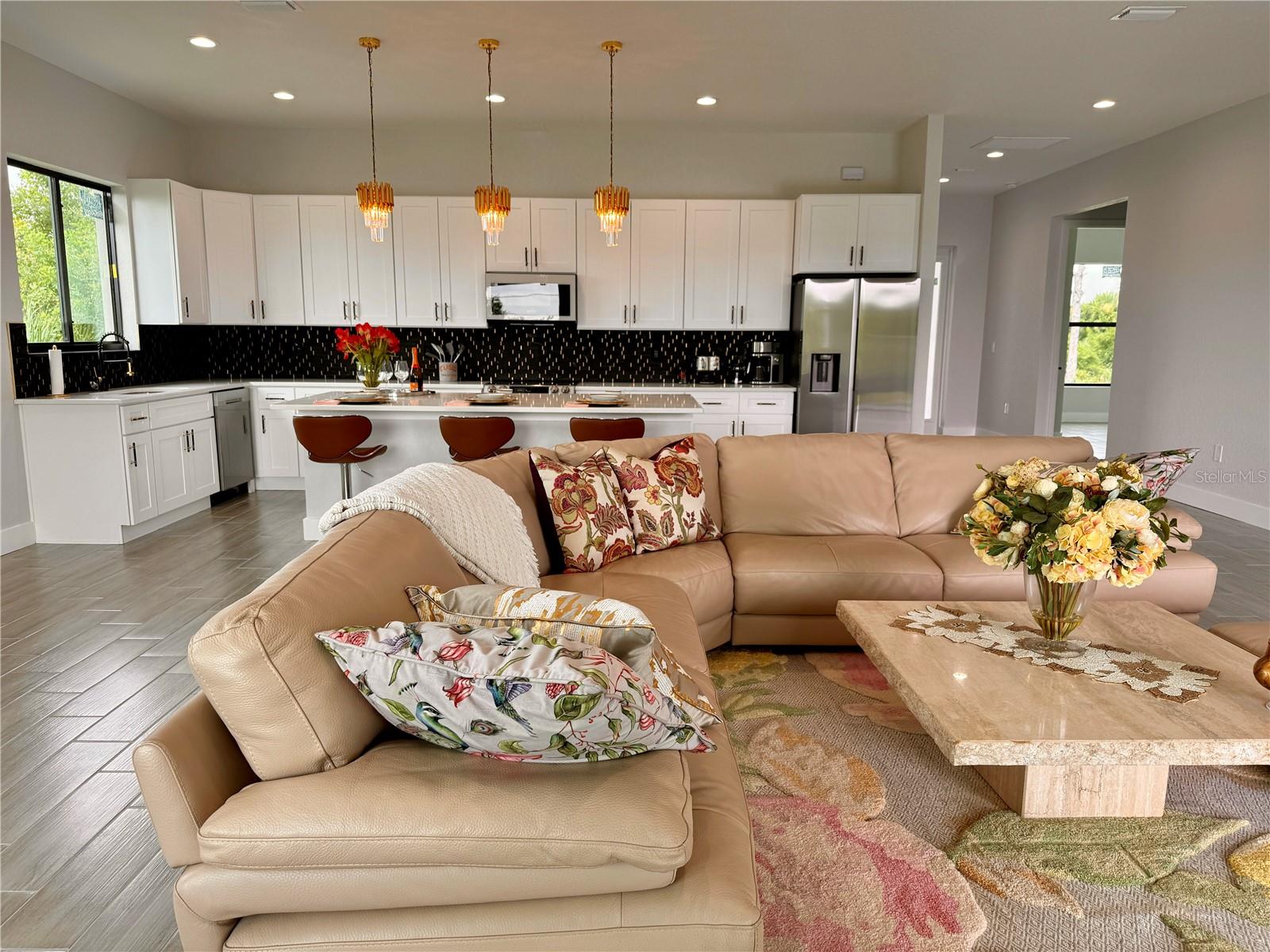 Uma ou mais fotos foram virtualmente encenadas. CASA PERSONALIZADA EXQUISITA situada na serenidade e beleza dos Lagos Rotonda. Esta casa personalizada 2024 oferece ao proprietário exigente uma oportunidade única de experimentar o LUXO ao encontrar a funcionalidade cara a cara! Com atenção meticulosa a cada detalhe, esta casa recém-construída possui quase 1.900 pés quadrados de espaço interno, uma grande LANAI, garagem para 2 carros e pórtico frontal. O GRAND Entryway lhe dá as boas-vindas com uma moderna porta frontal de 8' de altura com luz lateral e teto de 13'. O quarto de hóspedes da frente oferece uma janela tipo bay window e é um ótimo escritório doméstico. O quarto de hóspedes 2 é confortável, com ventilador de teto e vista ensolarada. O Hall Bath compartilhado tem acabamento em uma bela paleta de cores costeiras modernas. A suíte principal é generosamente repartida, oferece vistas perfeitas da janela de grandes dimensões, grande WALK IN CLOSET, pias duplas e ambos os banheiros convidam uma sensação de SPA com lindos balcões de granito, amplos chuveiros de tábuas de azulejos, armários de fechamento suave em cauda de andorinha e glamourosos espelho e luminárias. Você vai ADORAR a vibração brilhante e alegre desta casa, que apresenta impressionantes portas internas de 8' de altura, tetos de 10' aprimorados com um degrau de 16", portas deslizantes panorâmicas de 12', popa e janelas panorâmicas, piso de PLANK TILE, 5 1/ Rodapé de 4", iluminação inteligente, backsplash elegante de azulejos pretos e dourados, puxadores de gabinete de alta qualidade, ventiladores e acessórios atualizados e muito mais. ELEMENTOS DE DESIGN decadentes que diferenciam esta casa são visíveis a cada passo. Deslize sua mão ao longo da borda elegante e caminhe lentamente ao redor desta Grand Center Island de 11' para obter a experiência completa desta cozinha e sala de jantar magistralmente projetadas. Relaxe e descontraia, divirta-se com facilidade e crie novas memórias em seu espaçoso Great Room com vista para a varanda e o quintal. Esta casa apresenta outras atualizações, como lavanderia com janela, pia e armário, janelas, portas e controles deslizantes de impacto de furacão, construção de blocos de concreto, calhas em todos os lados, telhas arquitetônicas, piso de garagem acabado, calçada para pavimentação, passarela e Lanai . ISTO É IMPERDÍVEL! Localizado a poucos minutos da ilha de Boca Grande, Englewood Beach, 99 buracos de golfe, pesca de classe mundial, restaurantes incríveis, lojas e próximo aos distritos culturais de Veneza, Port Charlotte e Punta Gorda. Viva um estilo de vida extraordinário na Costa do Golfo, ligue hoje para sua exibição privada. Lote vago ao lado e atrás desta casa também estão disponíveis, e temos informações sobre pacotes de piscina a partir de US$ 65 mil. O certificado de elevação mostra que a parte superior do andar inferior tem 10,4 pés, economizando $$ em seguro. Ligue para mais detalhes.