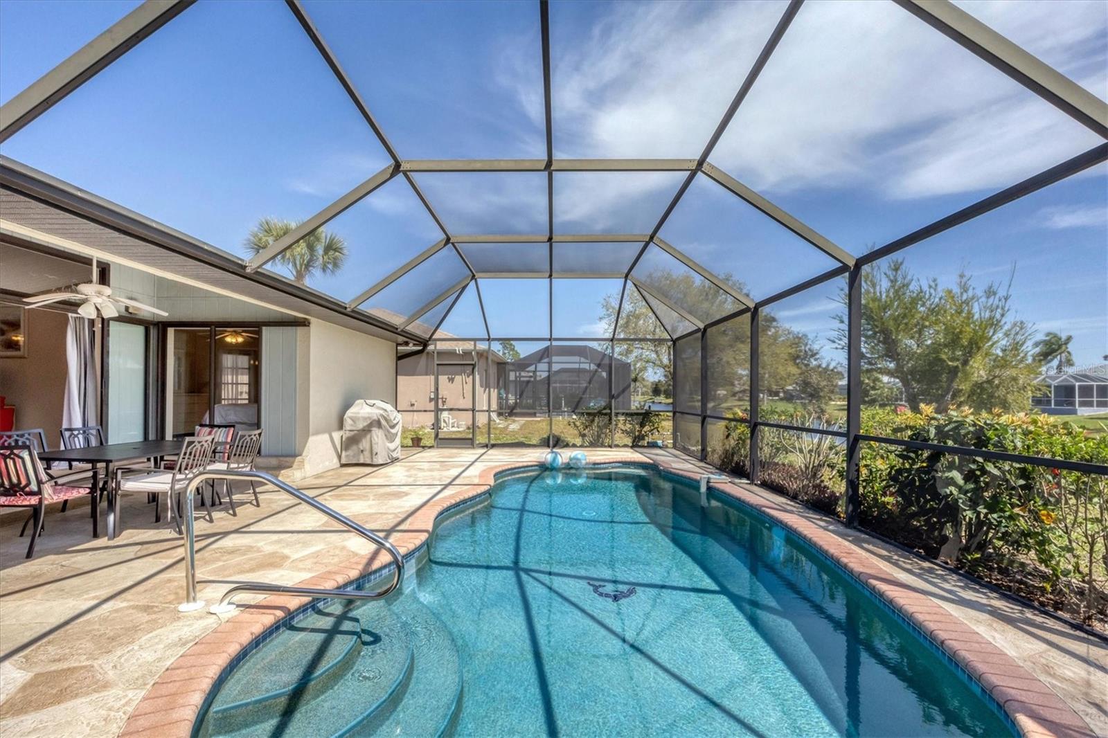 Bem-vindo à sua encantadora casa no canal de água doce situada na comunidade de golfe de Rotonda West! Este retiro pitoresco oferece a combinação perfeita de conveniência e lazer. É cercado pela vida selvagem da Flórida e oferece acesso a cinco impressionantes campos de golfe, totalizando 99 buracos. Ao entrar, você é inundado de luz natural, aprimorada por portas de vidro deslizantes que fundem perfeitamente os espaços internos e externos. Imagine começar o dia com vistas serenas do canal enquanto saboreia seu café da manhã no deck de concreto estampado ao redor da piscina aquecida. Do lado de fora, o paisagismo maduro é adornado com belas pedras e concreto que criam uma atmosfera tranquila para relaxar, minimizando a manutenção. Esteja você organizando um churrasco à beira da piscina ou aproveitando o sol da Flórida, este oásis no quintal oferece infinitas oportunidades de diversão. No interior, a casa possui três quartos, dois banheiros e garagem para dois carros, proporcionando amplo espaço para familiares e convidados. Esta planta dividida com cozinha aberta e área de estar é o local perfeito para entretenimento. A cozinha bem equipada tem uma grande península, eletrodomésticos atualizados e bancadas em granito. Ao lado da cozinha, um versátil espaço de estudo ou escritório oferece um retiro tranquilo para trabalho ou relaxamento. Com seu layout aberto e design atencioso, esta casa combina facilmente funcionalidade com conforto, ideal para a vida cotidiana ou para férias. Convenientemente localizada perto de praias imaculadas, restaurantes locais e destinos de compras boutique, esta propriedade oferece o melhor da vida costeira ao seu alcance. Esteja você explorando praias arenosas, jogando golfe em vários campos ou jantando em restaurantes à beira-mar, tudo o que você precisa está ao seu alcance. Aproveite esta oportunidade para experimentar o estilo de vida descontraído da Flórida, vivendo nesta bela comunidade de golfe com HOAs baixos e sem associação obrigatória de golfe. Agende uma exibição hoje mesmo e faça deste charmoso canal o seu próprio pedaço do paraíso! 2023 Roof-2023 Eletrodomésticos - Tela de piscina de alta qualidade 2023. Característica do quarto: Armário de roupa de cama no banheiro (quarto principal).