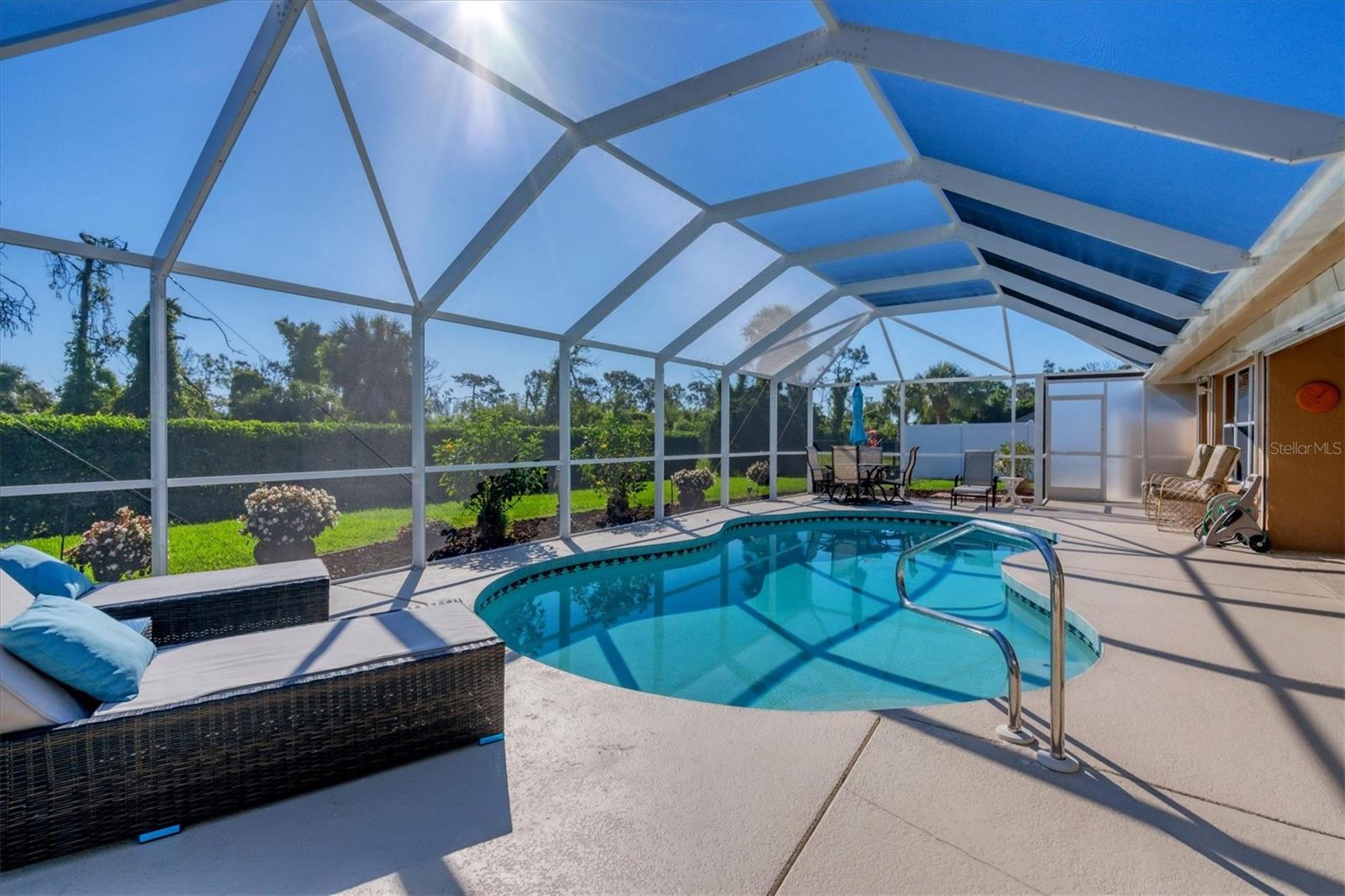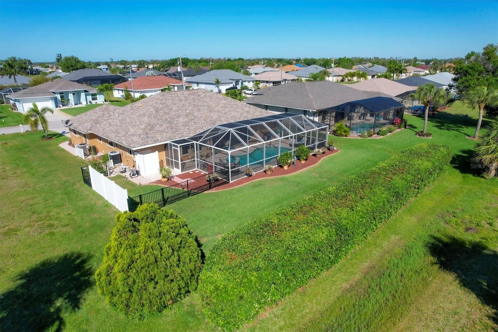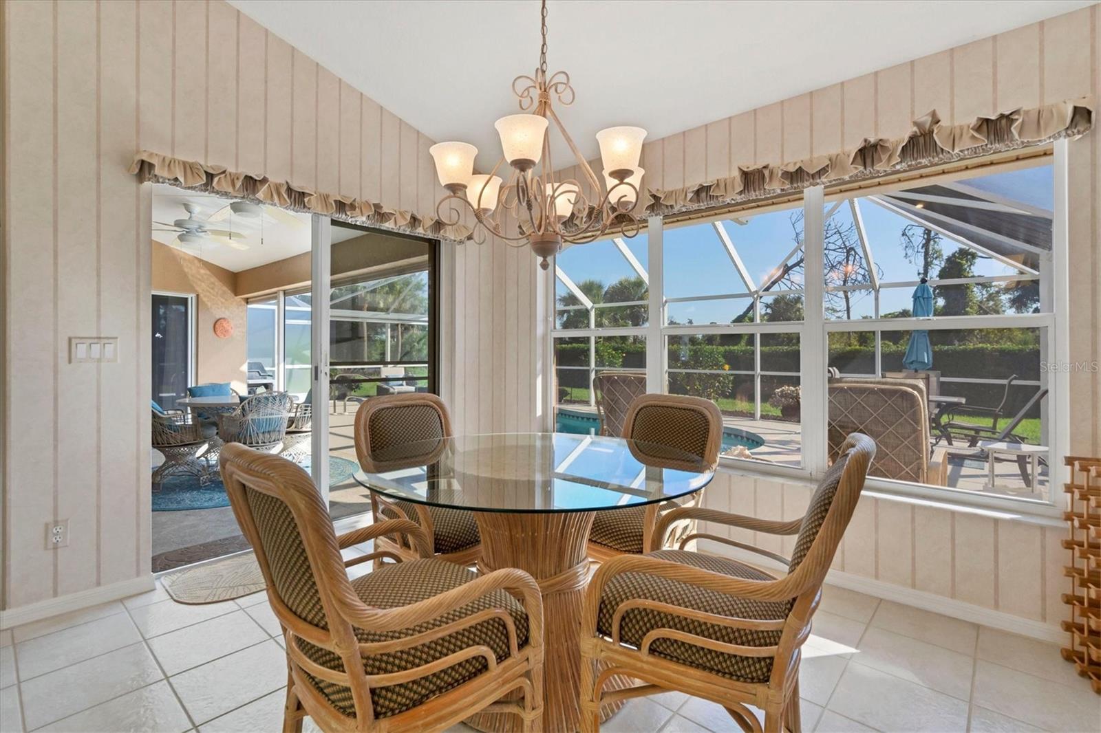 NÃO É UMA ZONA DE INUNDAÇÃO! Financiamento ao vendedor disponível! Bem-vindo ao seu pedaço do paraíso na prestigiada seção Pinehurst de Rotonda West. Situada em meio a uma paisagem exuberante, esta casa mobiliada pronta para uso personalizada oferece uma mistura de elegância, conforto e funcionalidade, com 2 quartos, 2 banheiros e uma sala versátil. A sala possui uma grande janela de vidro que permite a vista da grande sala ao mesmo tempo que proporciona silêncio e pode facilmente ser convertida num terceiro quarto. À chegada, o exterior meticulosamente cuidado cativa com o seu paisagismo exuberante e o convidativo alpendre frontal com tela. Passe pelas impressionantes portas frontais de vidro duplo gravado até o saguão, onde tetos altos de catedral e uma planta aberta o cumprimentam. A grande sala, inundada de luz natural por meio de amplos controles deslizantes, oferece vistas da piscina recentemente reformada e do verdejante campo de golfe além. Ideal para entretenimento, a cozinha bem equipada possui balcões de granito, armários amplos, despensa, balcão para café da manhã e água filtrada para a pia e geladeira. Desfrute de refeições na sala de jantar com vista para a piscina, para o buraco 16 do campo de golfe Pinemoor e para o lago parcial. Retire-se para a espaçosa suíte master, com vista para a piscina, tetos abobadados, armários para ele e para ela e banheiro privativo com pias duplas. , um box amplo e uma banheira de hidromassagem. O layout do quarto dividido garante privacidade aos hóspedes. Do lado de fora, a varanda com tela acena com uma grande área de estar externa coberta e uma piscina cintilante, oferecendo vistas serenas do campo de golfe e sebes paisagísticas para privacidade, além de um pátio cercado e chuveiro externo privativo. Atualizações adicionais incluem ar-condicionado 2021, telhado 2019, persianas contra furacões, novo sistema de música Sonos, aspiração central e irrigação. Mobiliado pronto para uso, incluindo roupas de cama novas, utensílios de cozinha novos e móveis novos, facilita a mudança e começa a desfrutar da vida no sudoeste da Flórida. Melhorias como um novo aquecedor de piscina, conversão de água salgada e triagem de privacidade totalmente automática na varanda aumentam o fascínio. As comodidades do Rotonda West incluem um parque de 165 acres com um novo centro comunitário de 8.000 pés quadrados, lagos, trilhas para caminhada e cinco campos de golfe administrados pela Rotonda Golf Partners. Os entusiastas da praia apreciarão a proximidade das praias de Manasota Key e Boca Grande, enquanto há muitas opções de compras e restaurantes. Não perca a oportunidade de chamar de sua esta casa meticulosamente mantida. Explore o tour virtual em 3D para vivenciar sua beleza em primeira mão. Transforme seus sonhos de viver na costa em realidade neste requintado retiro em Rotonda West.