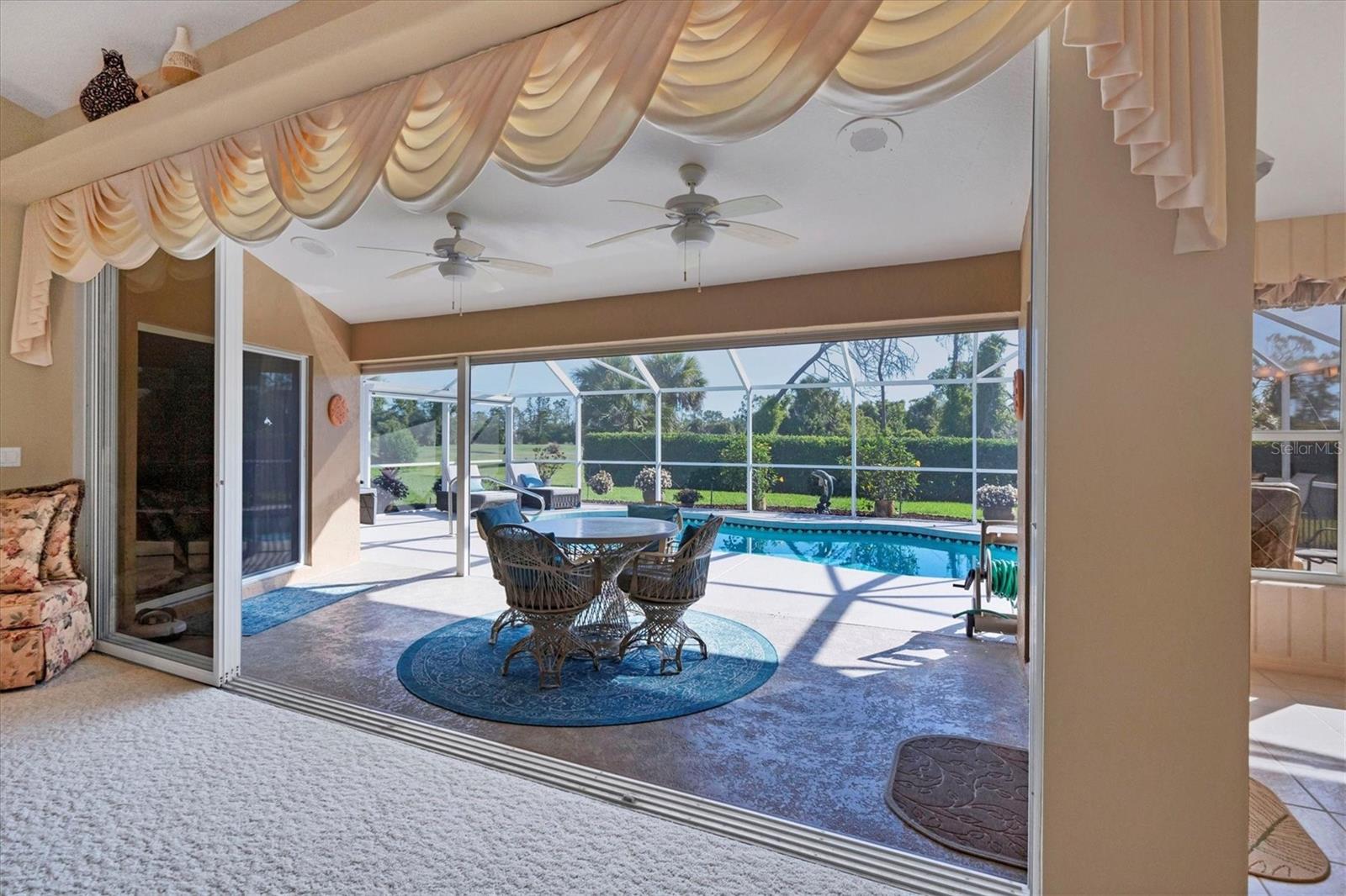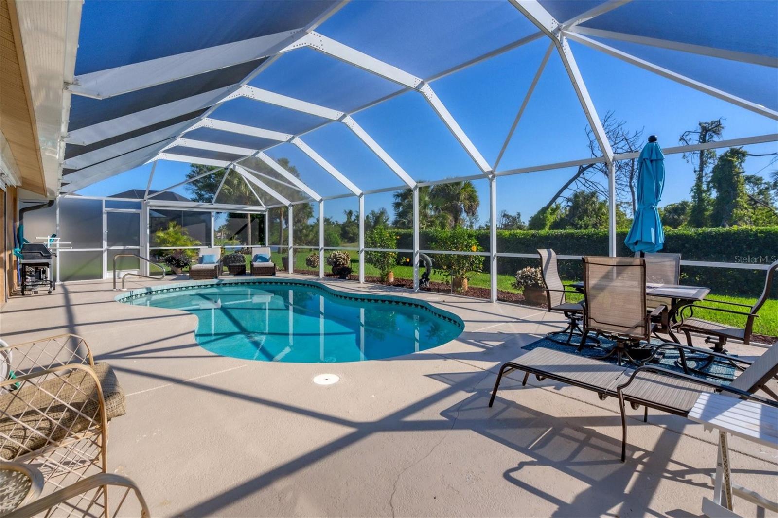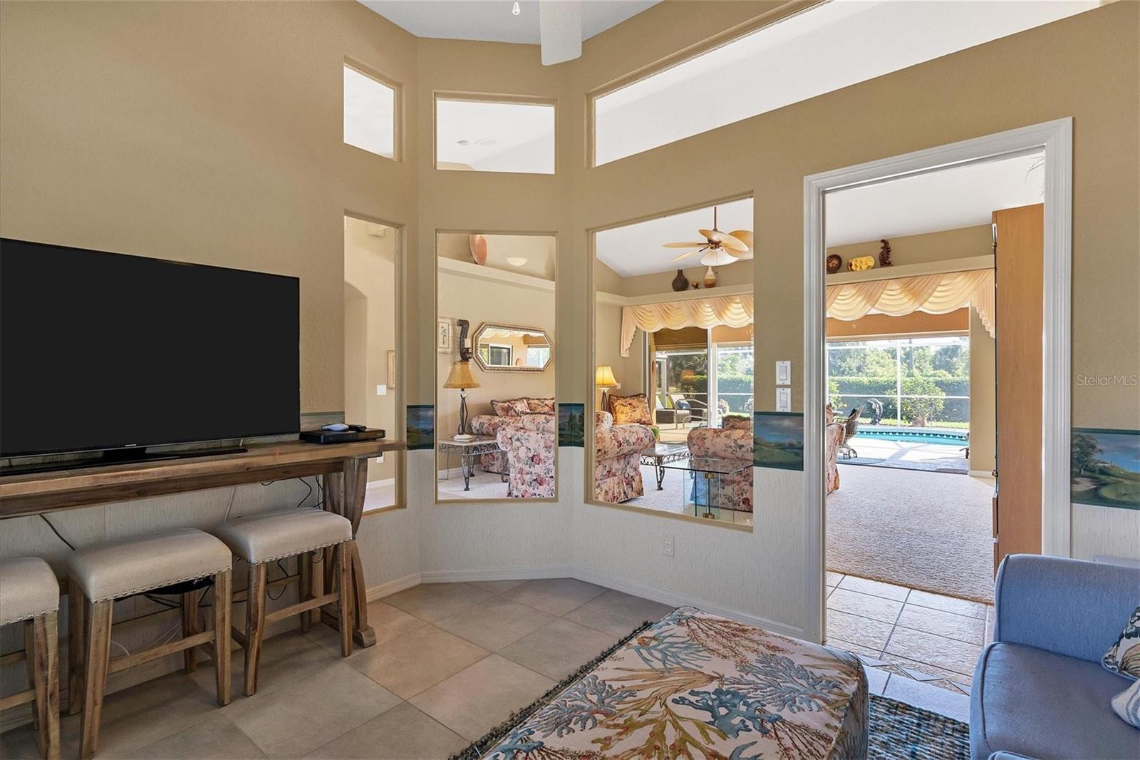 NÃO É UMA ZONA DE INUNDAÇÃO! Financiamento ao vendedor disponível! Bem-vindo ao seu pedaço do paraíso na prestigiada seção Pinehurst de Rotonda West. Situada em meio a uma paisagem exuberante, esta casa mobiliada pronta para uso personalizada oferece uma mistura de elegância, conforto e funcionalidade, com 2 quartos, 2 banheiros e uma sala versátil. A sala possui uma grande janela de vidro que permite a vista da grande sala ao mesmo tempo que proporciona silêncio e pode facilmente ser convertida num terceiro quarto. À chegada, o exterior meticulosamente cuidado cativa com o seu paisagismo exuberante e o convidativo alpendre frontal com tela. Passe pelas impressionantes portas frontais de vidro duplo gravado até o saguão, onde tetos altos de catedral e uma planta aberta o cumprimentam. A grande sala, inundada de luz natural por meio de amplos controles deslizantes, oferece vistas da piscina recentemente reformada e do verdejante campo de golfe além. Ideal para entretenimento, a cozinha bem equipada possui balcões de granito, armários amplos, despensa, balcão para café da manhã e água filtrada para a pia e geladeira. Desfrute de refeições na sala de jantar com vista para a piscina, para o buraco 16 do campo de golfe Pinemoor e para o lago parcial. Retire-se para a espaçosa suíte master, com vista para a piscina, tetos abobadados, armários para ele e para ela e banheiro privativo com pias duplas. , um box amplo e uma banheira de hidromassagem. O layout do quarto dividido garante privacidade aos hóspedes. Do lado de fora, a varanda com tela acena com uma grande área de estar externa coberta e uma piscina cintilante, oferecendo vistas serenas do campo de golfe e sebes paisagísticas para privacidade, além de um pátio cercado e chuveiro externo privativo. Atualizações adicionais incluem ar-condicionado 2021, telhado 2019, persianas contra furacões, novo sistema de música Sonos, aspiração central e irrigação. Mobiliado pronto para uso, incluindo roupas de cama novas, utensílios de cozinha novos e móveis novos, facilita a mudança e começa a desfrutar da vida no sudoeste da Flórida. Melhorias como um novo aquecedor de piscina, conversão de água salgada e triagem de privacidade totalmente automática na varanda aumentam o fascínio. As comodidades do Rotonda West incluem um parque de 165 acres com um novo centro comunitário de 8.000 pés quadrados, lagos, trilhas para caminhada e cinco campos de golfe administrados pela Rotonda Golf Partners. Os entusiastas da praia apreciarão a proximidade das praias de Manasota Key e Boca Grande, enquanto há muitas opções de compras e restaurantes. Não perca a oportunidade de chamar de sua esta casa meticulosamente mantida. Explore o tour virtual em 3D para vivenciar sua beleza em primeira mão. Transforme seus sonhos de viver na costa em realidade neste requintado retiro em Rotonda West.