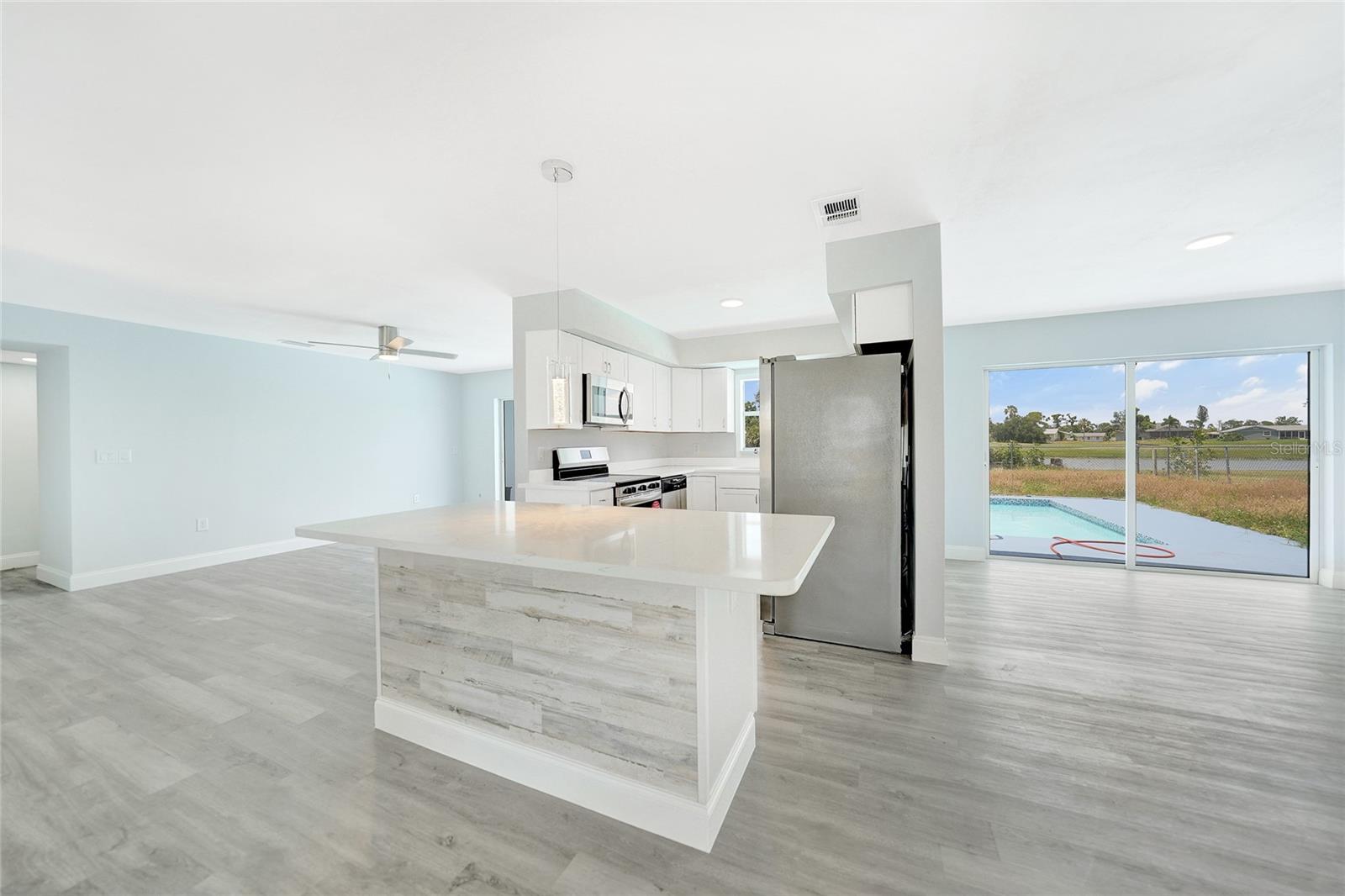 Localizada na pitoresca comunidade de golfe de Rotonda West, esta deslumbrante casa com 3 quartos, 2 banheiros e 1 carro com piscina na garagem oferece 1.779 pés quadrados sob o ar e possui uma localização privilegiada com vista para um lago tranquilo no campo de golfe. Esta casa apresenta uma planta tradicional com salas de estar e familiares separadas, proporcionando amplo espaço para relaxamento e entretenimento. Totalmente remodelada, esta casa possui luxuoso piso de tábuas vinílicas, adicionando um toque de elegância ao espaço. A cozinha é uma delícia para o chef, com bancadas de quartzo, armários de madeira e eletrodomésticos de aço inoxidável. O banheiro de hóspedes também serve como banheiro da piscina, garantindo comodidade tanto para moradores quanto para hóspedes. Os quartos de hóspedes são de dimensões generosas, oferecendo conforto e privacidade para familiares e convidados. A grande suíte principal é um verdadeiro refúgio, com closets e banheiro privativo com box amplo de azulejos do chão ao teto. Saia para sua varanda coberta excepcionalmente grande e para o deck da piscina, onde você pode relaxar e descontrair enquanto aprecia as vistas deslumbrantes do lago e do campo de golfe. Este espaço ao ar livre é perfeito para realizar reuniões e aproveitar o sol da Flórida. Rotonda West é conhecida pelos seus 5 campos de golfe, proporcionando inúmeras oportunidades para os entusiastas do golfe. Além disso, as praias do Golfo ficam a uma curta distância de carro, oferecendo o refúgio perfeito para os amantes do sol e da areia. Convenientemente localizada perto de opções de compras e restaurantes, esta casa oferece a combinação ideal de luxo, conforto e conveniência. Não perca a chance de possuir esta casa requintada em Rotonda West e experimentar o melhor estilo de vida da Flórida.
