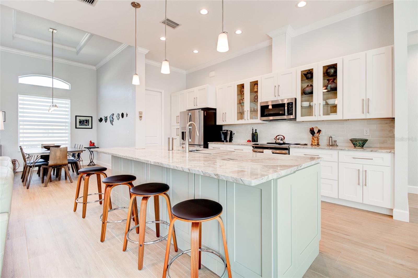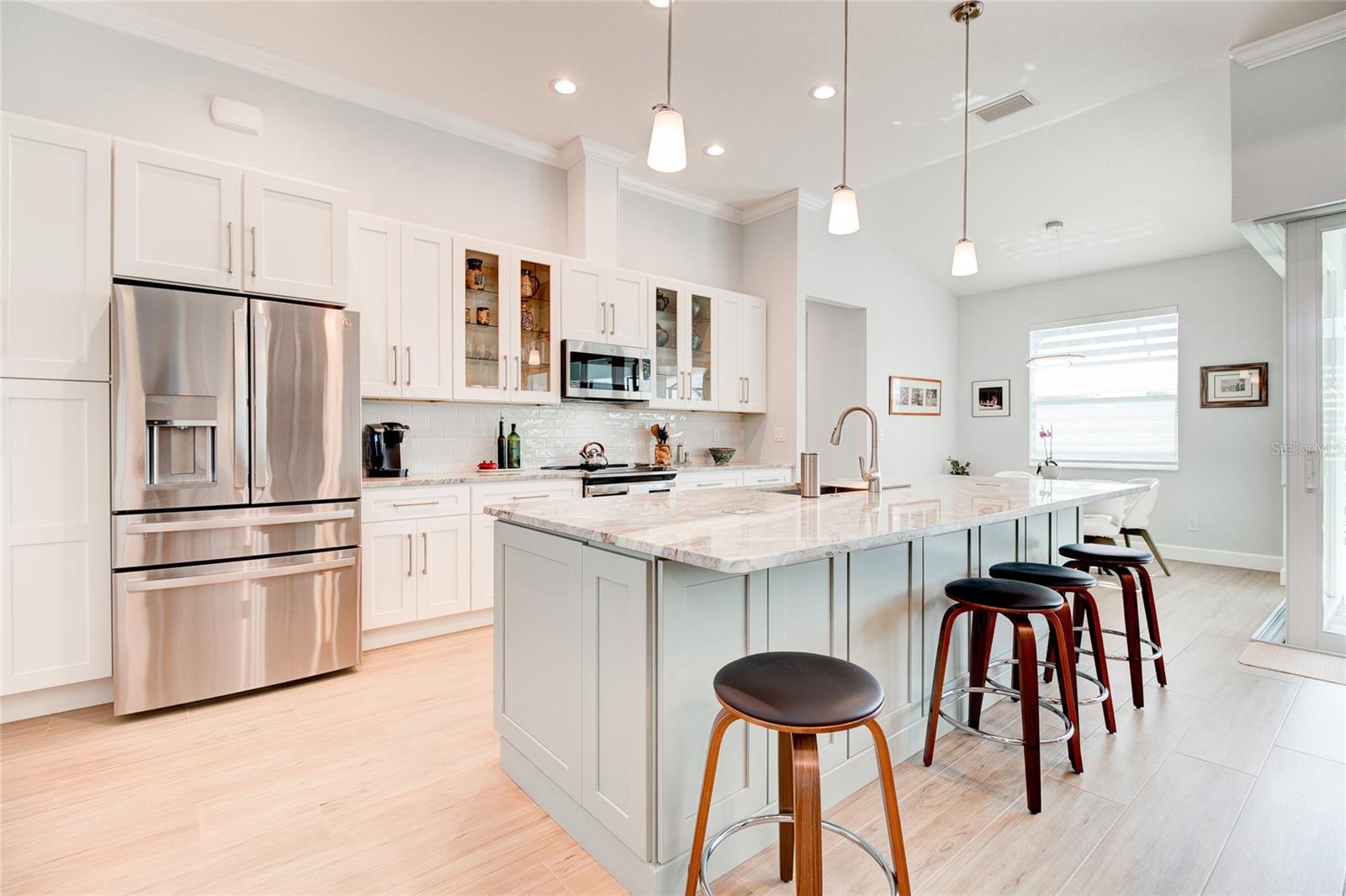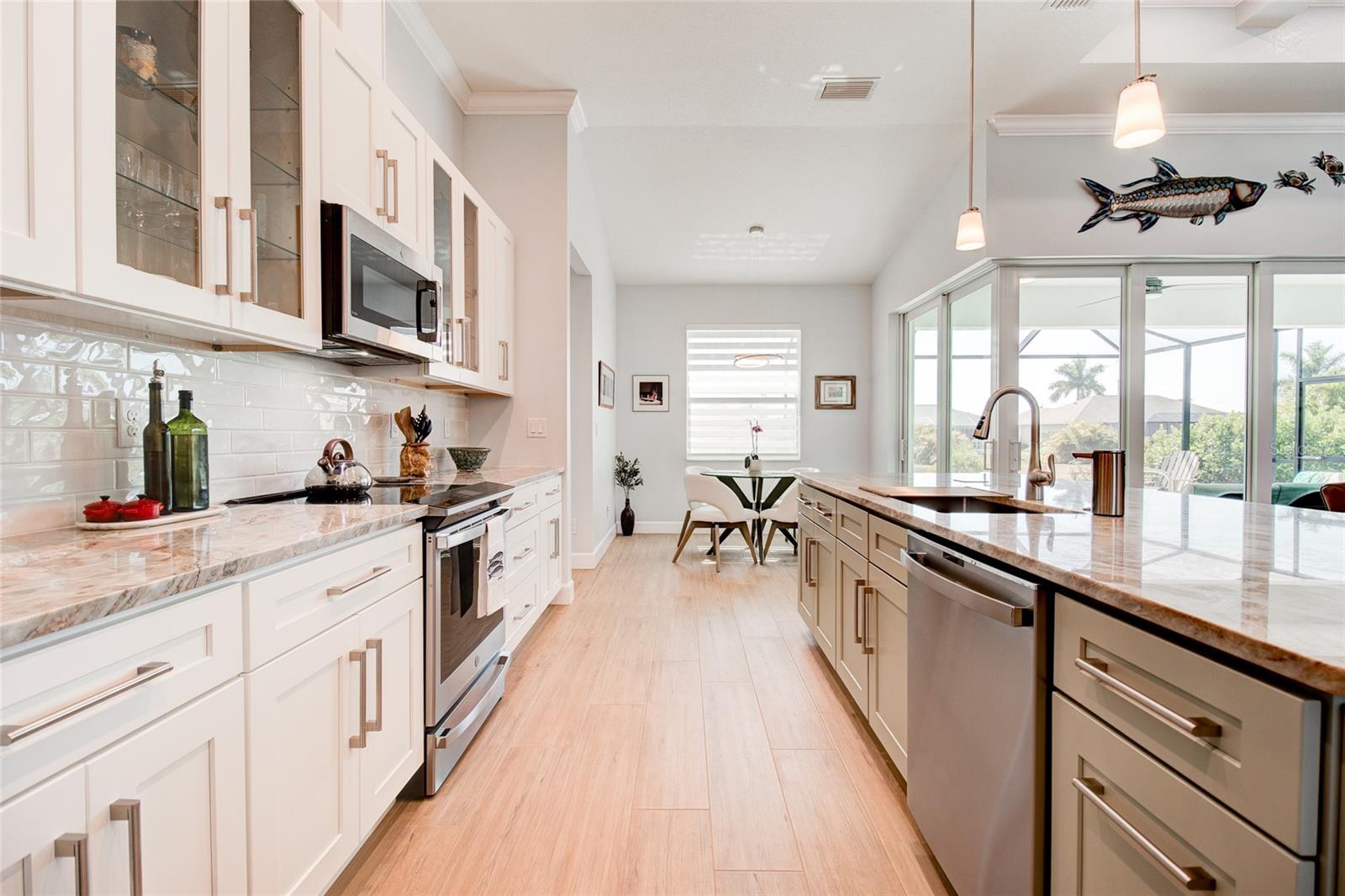 MELHOR QUE NOVO! Casa construída sob medida com todos os sinos e assobios. Casa com menos de 2 anos em um terreno de grandes dimensões de 80'x200', localizado na zona de inundação X preferida, com 16.000 pés quadrados/0,37 acres, com três quartos, 2 banheiros, garagem para três carros e linda piscina de água salgada aquecida. Novo telhado em fevereiro de 2023 com barreira resistente à água removível e adesiva atualizada para uma camada extra de proteção. A casa possui janelas e portas de vidro duplo isoladas e de impacto para proteção sem esforço (sem venezianas para instalar). Portas de 8' de altura, acabamento de base de 5 1/4" e pacote de acabamento de sancas. Iluminação e ventiladores contemporâneos de alta eficiência, piso de porcelanato por toda parte. Todos os eletrodomésticos de aço inoxidável GE Profile, bandejas deslizantes no gabinete, granito nível 3 (marrom fantasia claro, quartzito, vedado), backsplash de azulejos personalizados. Banheiro principal com chuveiro "lava-carros" de grandes dimensões, chuveiro de azulejos com detalhes decorativos em azulejos epóxi com revestimento poliaspártico personalizado. Revestimento Pebbletech e faixa de azulejos decorativos, cascata em arco Pool Cage 18'x37', bomba de piscina de velocidade variável 1,8, chuveiro externo, meio-fio decorativo e pedra Pride of Ownership, agende uma consulta hoje.