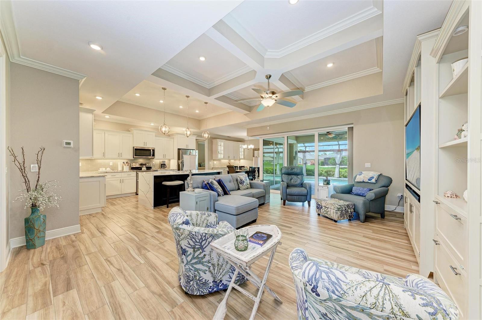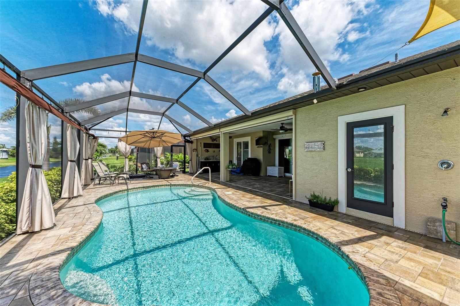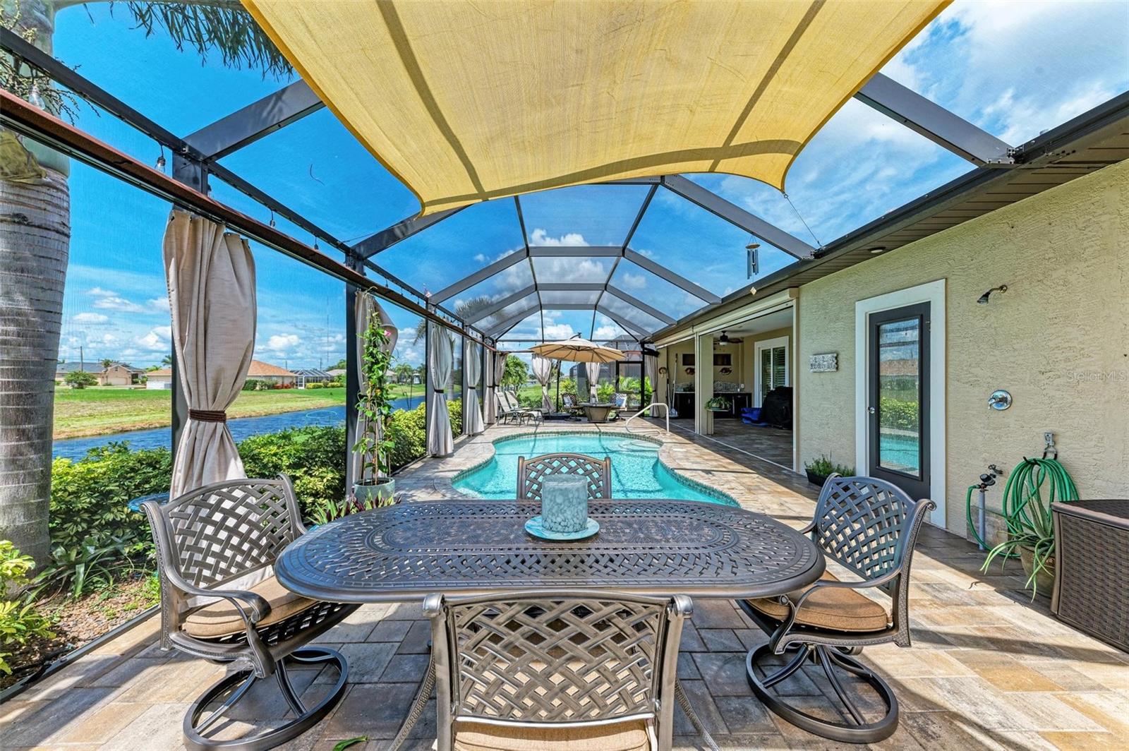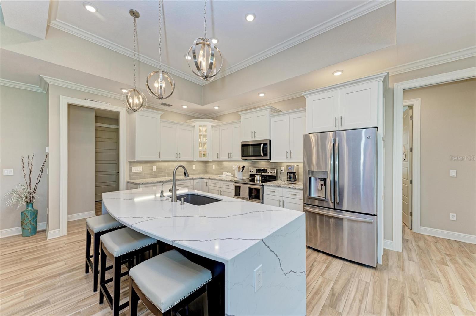 Ao entrar nesta entrada graciosa, observe os detalhes do teto da bandeja e o piso de cerâmica despreocupado em toda a casa. Observe que todas as portas internas têm 8 pés de altura e são portas sólidas de 6 painéis. O layout desta casa é excelente. O design dividido permite fechar os quartos enquanto as portas deslizantes retráteis proporcionam uma vista desobstruída da piscina a partir da cozinha, sala de estar e sala de jantar. Esta casa vive grande! A sala tem uma parede de arrumação embutida personalizada que alberga a TV e muito mais. O coração desta casa é a cozinha iluminada e iluminada com uma grande ilha superior de quartzo com bordas em “cascata”. Os amplos armários continuam na área de jantar, com muitas vitrines iluminadas. A varanda ampla é versátil o suficiente para entreter uma grande reunião familiar, com piscina aquecida de água salgada e cozinha externa, mas basta fechar as cortinas externas e você terá total privacidade por todos os lados. O canal de água doce é o local preferido de todas as aves pelas quais a Flórida é conhecida. A varanda possui telas de Kevlar com controle remoto que oferecem outra camada de proteção em caso de tempestade.