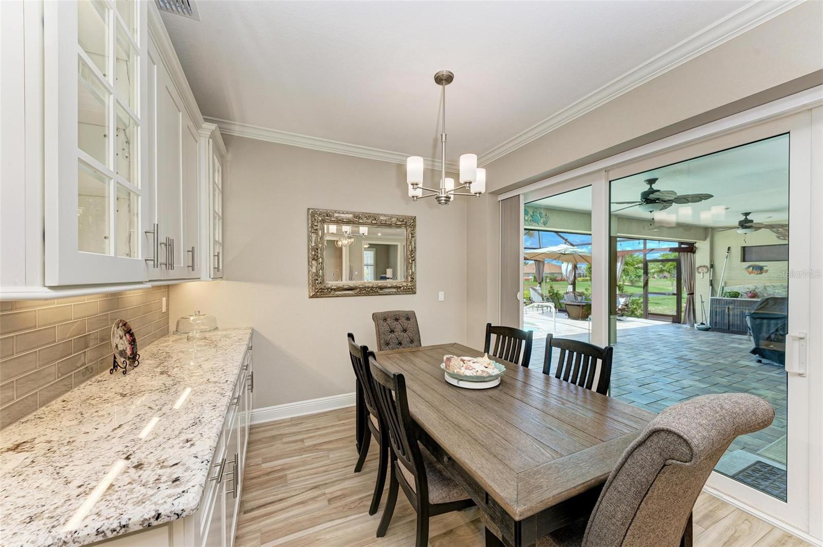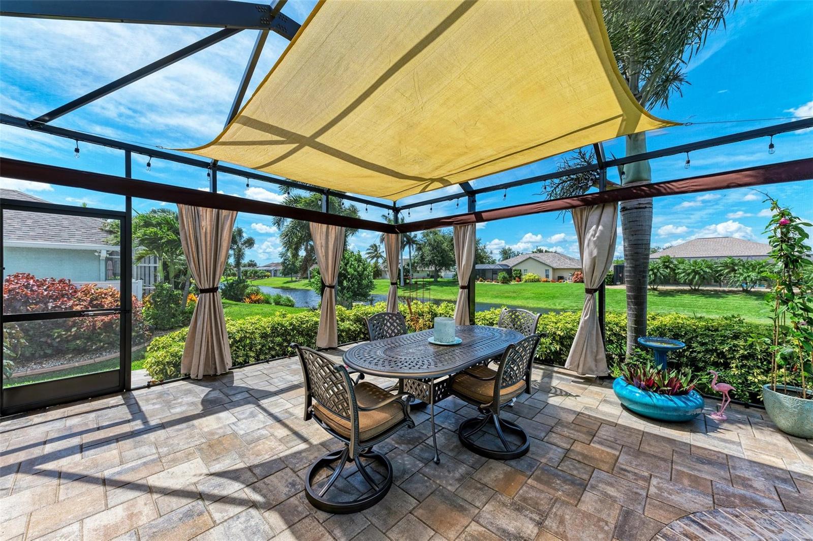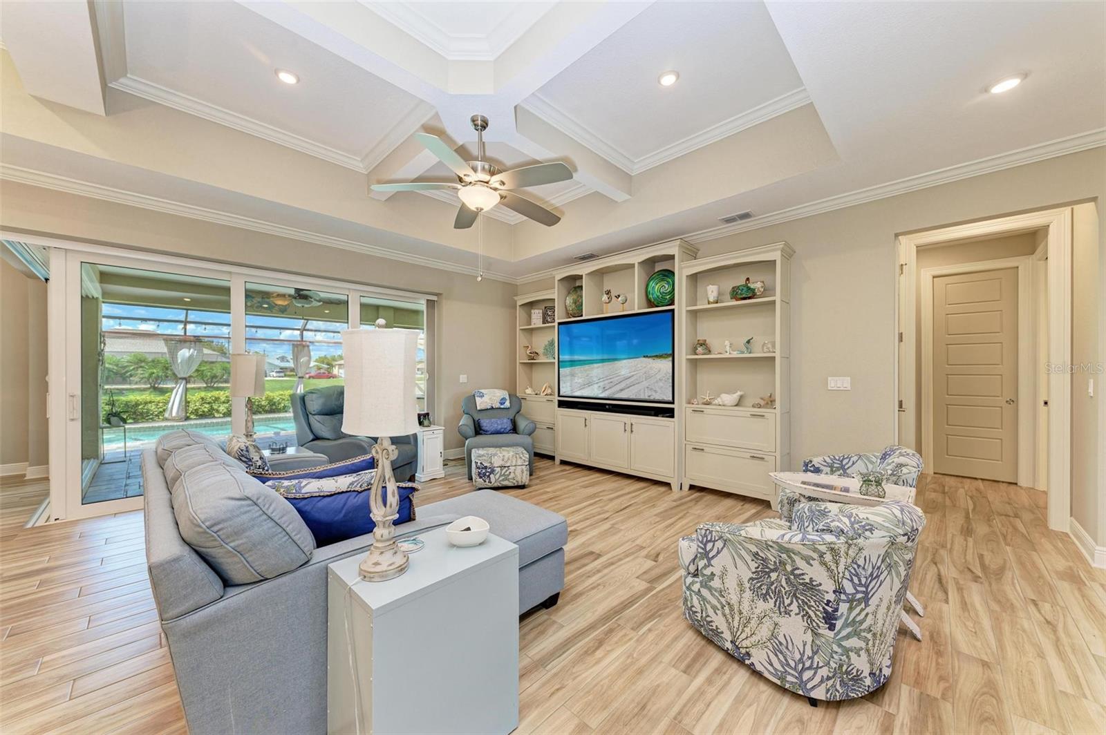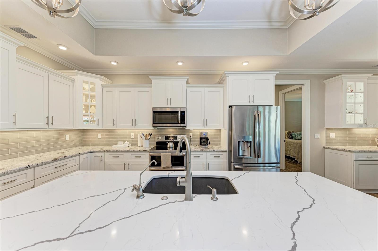 Ao entrar nesta entrada graciosa, observe os detalhes do teto da bandeja e o piso de cerâmica despreocupado em toda a casa. Observe que todas as portas internas têm 8 pés de altura e são portas sólidas de 6 painéis. O layout desta casa é excelente. O design dividido permite fechar os quartos enquanto as portas deslizantes retráteis proporcionam uma vista desobstruída da piscina a partir da cozinha, sala de estar e sala de jantar. Esta casa vive grande! A sala tem uma parede de arrumação embutida personalizada que alberga a TV e muito mais. O coração desta casa é a cozinha iluminada e iluminada com uma grande ilha superior de quartzo com bordas em “cascata”. Os amplos armários continuam na área de jantar, com muitas vitrines iluminadas. A varanda ampla é versátil o suficiente para entreter uma grande reunião familiar, com piscina aquecida de água salgada e cozinha externa, mas basta fechar as cortinas externas e você terá total privacidade por todos os lados. O canal de água doce é o local preferido de todas as aves pelas quais a Flórida é conhecida. A varanda possui telas de Kevlar com controle remoto que oferecem outra camada de proteção em caso de tempestade.