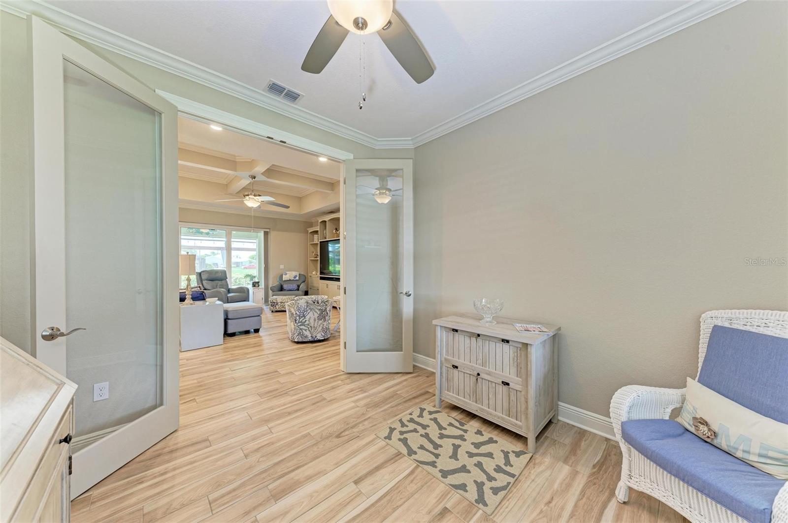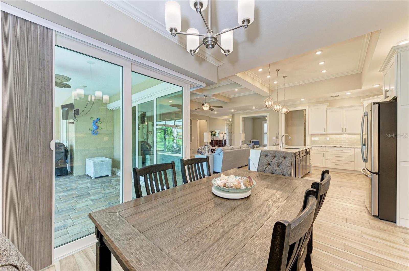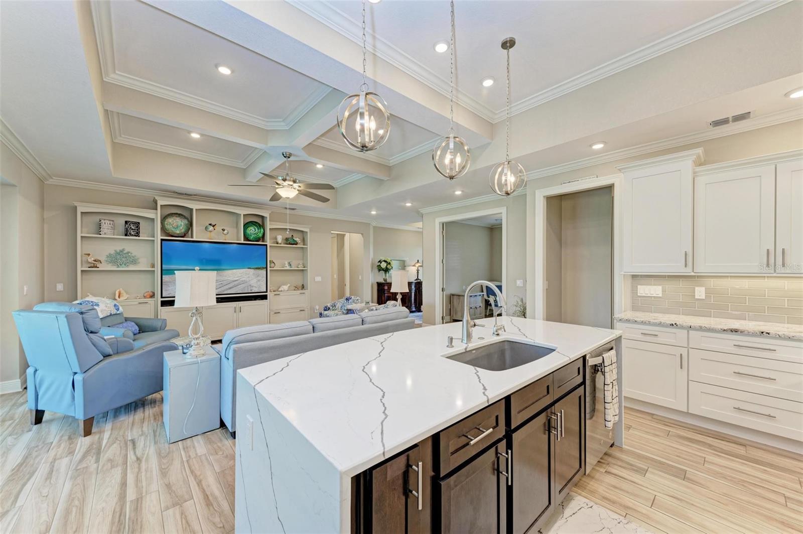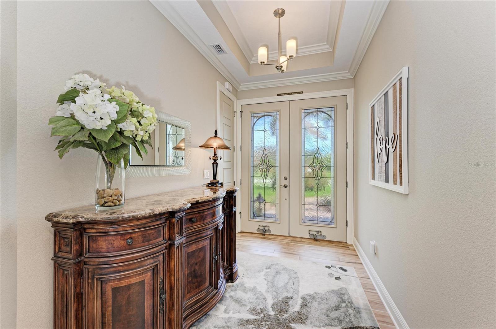 Ao entrar nesta entrada graciosa, observe os detalhes do teto da bandeja e o piso de cerâmica despreocupado em toda a casa. Observe que todas as portas internas têm 8 pés de altura e são portas sólidas de 6 painéis. O layout desta casa é excelente. O design dividido permite fechar os quartos enquanto as portas deslizantes retráteis proporcionam uma vista desobstruída da piscina a partir da cozinha, sala de estar e sala de jantar. Esta casa vive grande! A sala tem uma parede de arrumação embutida personalizada que alberga a TV e muito mais. O coração desta casa é a cozinha iluminada e iluminada com uma grande ilha superior de quartzo com bordas em “cascata”. Os amplos armários continuam na área de jantar, com muitas vitrines iluminadas. A varanda ampla é versátil o suficiente para entreter uma grande reunião familiar, com piscina aquecida de água salgada e cozinha externa, mas basta fechar as cortinas externas e você terá total privacidade por todos os lados. O canal de água doce é o local preferido de todas as aves pelas quais a Flórida é conhecida. A varanda possui telas de Kevlar com controle remoto que oferecem outra camada de proteção em caso de tempestade.