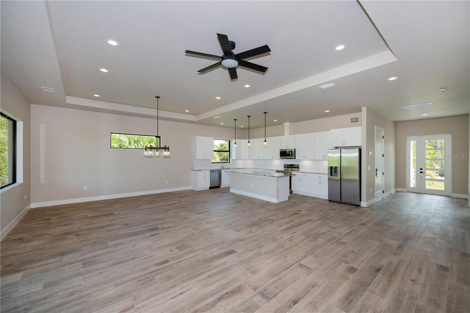 Esta bela casa de 3 quartos e 2 banheiros é sua chance de experimentar o paraíso em Rotonda West, Flórida. Imagine passar pela grande entrada e entrar em uma espaçosa área de estar com tetos altos e piso de tábuas deslumbrantes, estendendo-se até mesmo para a grande varanda. Uma abundância de luz natural preenche a planta aberta, perfeita para entretenimento. A cozinha do chef possui uma ilha estendida, iluminação pendente e inúmeros armários, tornando-a um sonho para qualquer cozinheiro doméstico. Bancadas de granito e eletrodomésticos de aço inoxidável acrescentam um toque de elegância, enquanto a janela acima da pia oferece uma vista pitoresca. Relaxe e descontraia-se na suíte master, com closet espaçoso e banheiro privativo com chuveiro com paredes de vidro e pia dupla. Dois quartos adicionais oferecem amplo espaço para família ou convidados. Aproveite o estilo de vida da Flórida na ampla varanda, perfeita para relaxar ou organizar reuniões. Esta localização privilegiada coloca você perto de belas praias como Manasota Key e Boca Grande. Desfrute de passeios de barco, golfe, paddle boarding, ciclismo ou simplesmente aproveite o sol. Além disso, com fácil acesso aos aeroportos próximos, viajar é muito fácil. Não perca esta oportunidade de fazer deste o seu pedaço do paraíso!