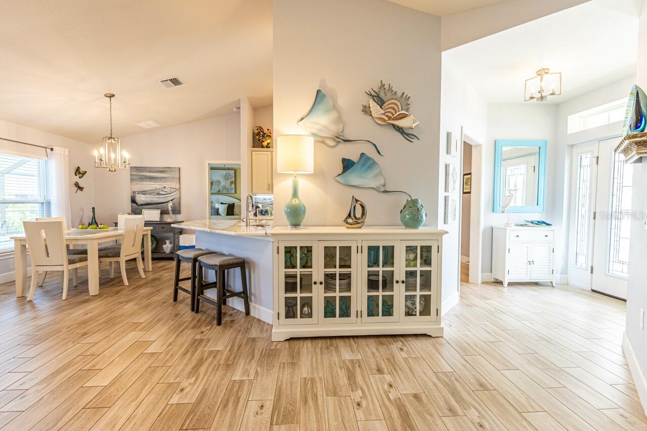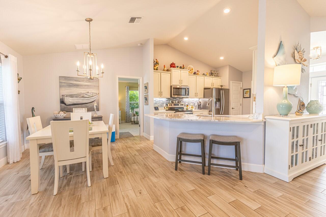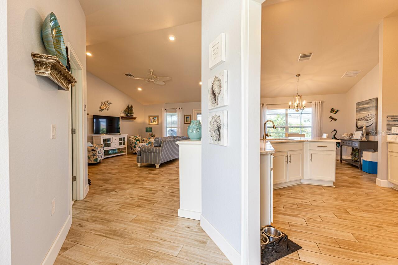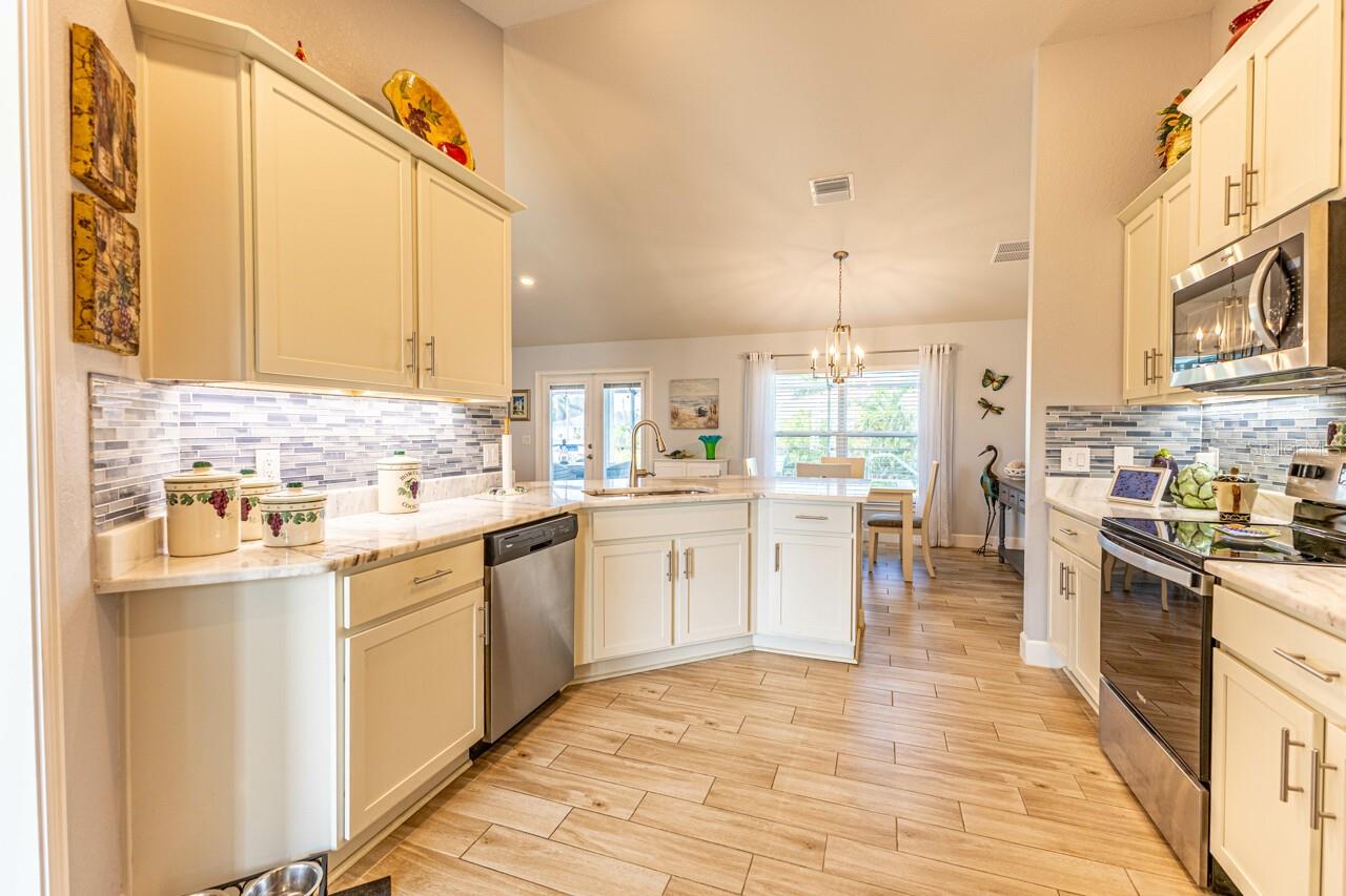 Esta casa bem conservada possui quatro quartos, garagem para três carros e piscina de água salgada, além de inúmeras comodidades. O interior apresenta atualizações recentes, incluindo novas bancadas de mármore na cozinha e nos banheiros. A cozinha oferece um layout aberto, eletrodomésticos de aço inoxidável, armários shaker brancos, iluminação sob os armários e backsplash de azulejos de vidro. O piso é uma mistura de tábuas de madeira e carpetes macios nos quartos. Uma planta dividida com tetos de catedral e ampla luz natural realça a sensação de abertura da casa. Cortinas personalizadas, persianas, ventiladores atualizados e luminárias estão presentes por toda parte. O banheiro principal inclui pia dupla, box de vidro moderno e bancada de mármore. No exterior existe uma grande piscina aquecida com um extenso deck blindado e uma área pavimentada adicional para entretenimento. O paisagismo conta com árvores frutíferas, plantas exóticas e palmeiras, com passarelas, irrigação e iluminação paisagística. A casa também possui venezianas e uma conexão elétrica pronta para gerador.