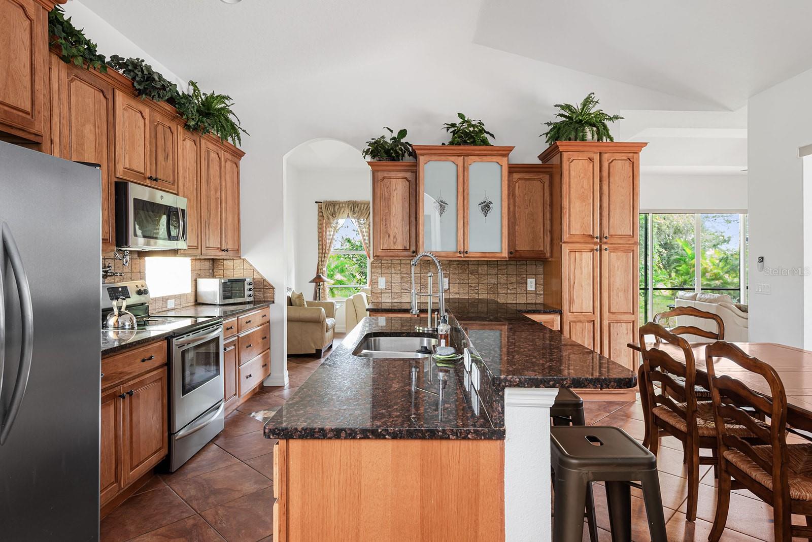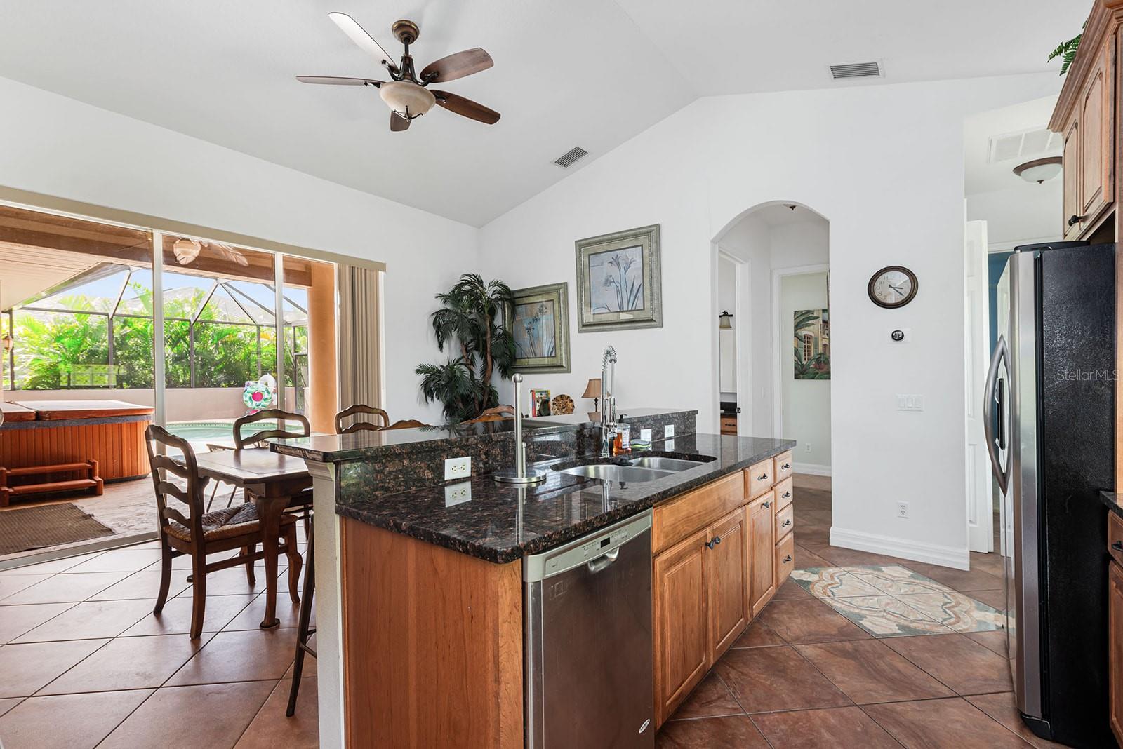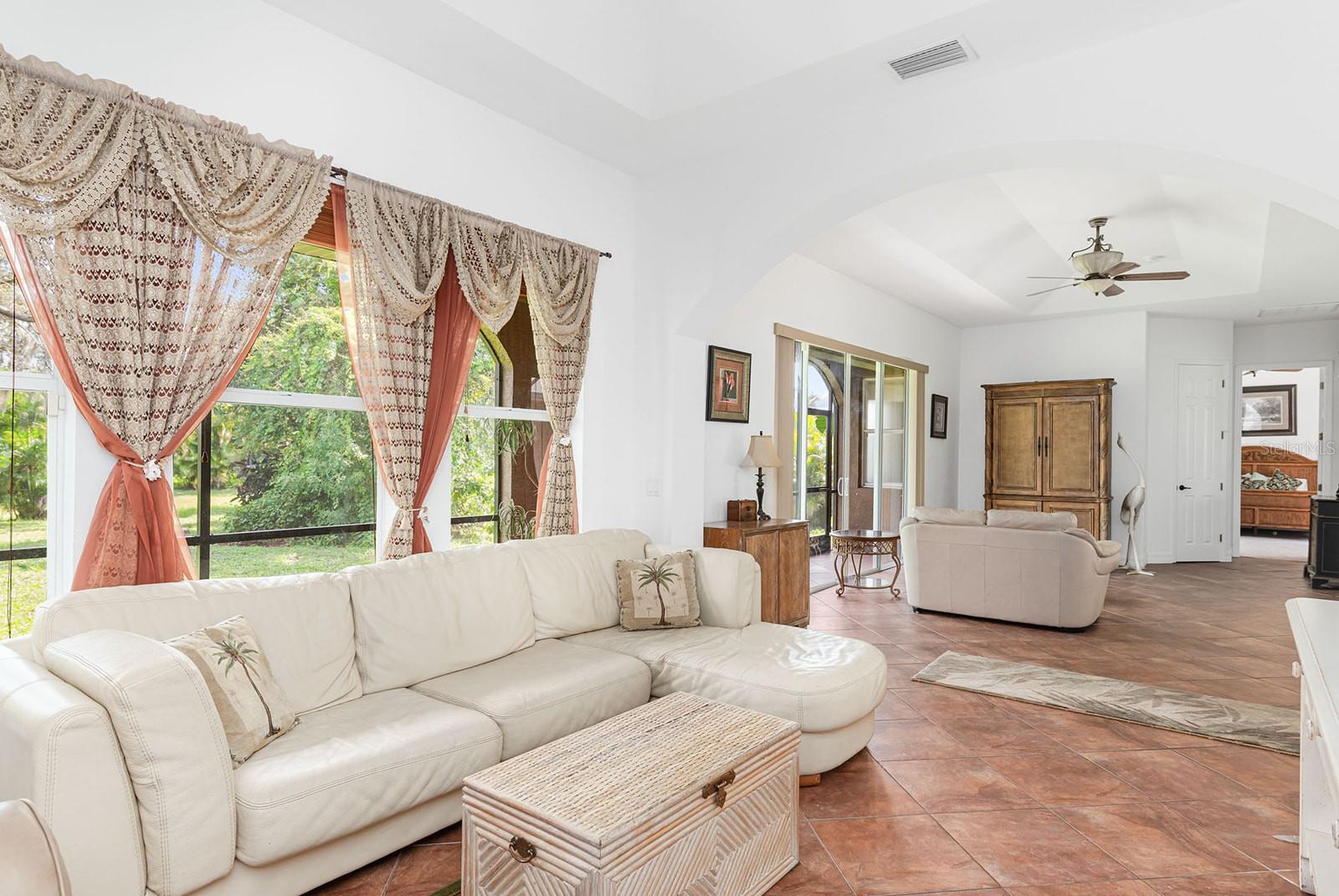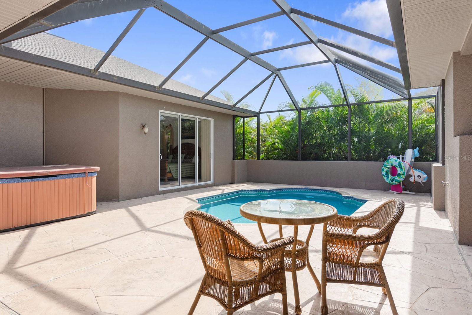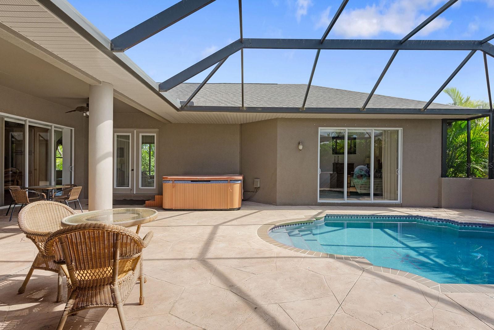 Esta PISCINA COURT YARD apresenta novos TELHADOS 2023, HVACS mais recentes, persianas anti-furacão e uma nova GAIOLA DE TELA DE ALUMÍNIO! Lindamente trabalhada e situada em um LOTE GRANDE, esta casa possui uma variedade de características excepcionais em uma das ruas mais bonitas de Rotonda West. Uma entrada protegida leva você a um encantador pátio, onde você encontrará uma espaçosa piscina e uma área de varanda completa com uma cozinha de verão ao ar livre, incluindo pia, fogão e espaço para uma pequena geladeira. A SUÍTE DE HÓSPEDES SEPARADA DE 317 PÉS QUADRADOS (ADU) inclui um amplo closet e banheiro completo, proporcionando privacidade e conforto - perfeita para uma SUÍTE DE SOGROS, casa com piscina ou aluguel com acesso compartilhado à piscina. A CASA PRINCIPAL possui mais de 1.800 pés quadrados onde você pode desfrutar de elegantes salas de estar e jantar, um terceiro banheiro com fácil acesso à piscina e vários controles deslizantes em quase todos os quartos que se abrem para o pátio - perfeito para aproveitar o clima da Flórida e ambientes internos. /vida ao ar livre. A cozinha é o sonho de um chef, com bancadas de granito, balcão e recanto para café da manhã, eletrodomésticos de aço inoxidável, incluindo torneira para encher panelas com braço estendido sobre o fogão e lindos armários de madeira. A suíte master oferece um enorme closet com banheiro privativo de spa, banheira de jardim, box amplo separado, bancadas de granito e pias duplas. Esta casa é imperdível para quem busca luxo e relaxamento! Uma SALA DE BÔNUS foi feita a partir da lavanderia interna anterior para espaço adicional para dormir ou pode ser transformada em um ótimo escritório, despensa / depósito ou facilmente convertida novamente. Atualmente, a lavadora/secadora está instalada na enorme garagem para dois carros. Rotonda West é uma comunidade LOW HOA com vários parques, calçadas, campos de golfe e muito mais para explorar, além de estar convenientemente localizada a poucos quilômetros de restaurantes, lojas, Boca Grande, Manasota Key e várias praias do golfo.