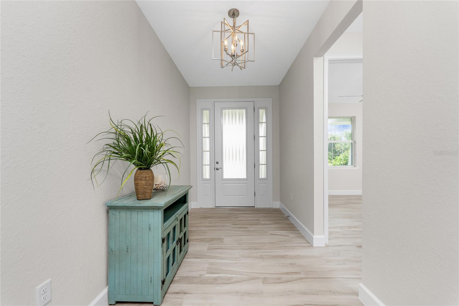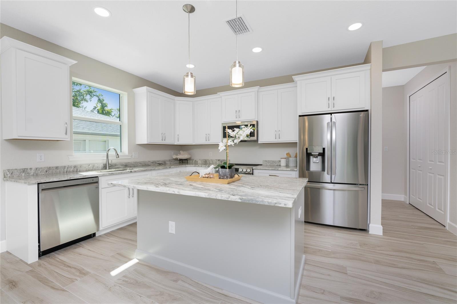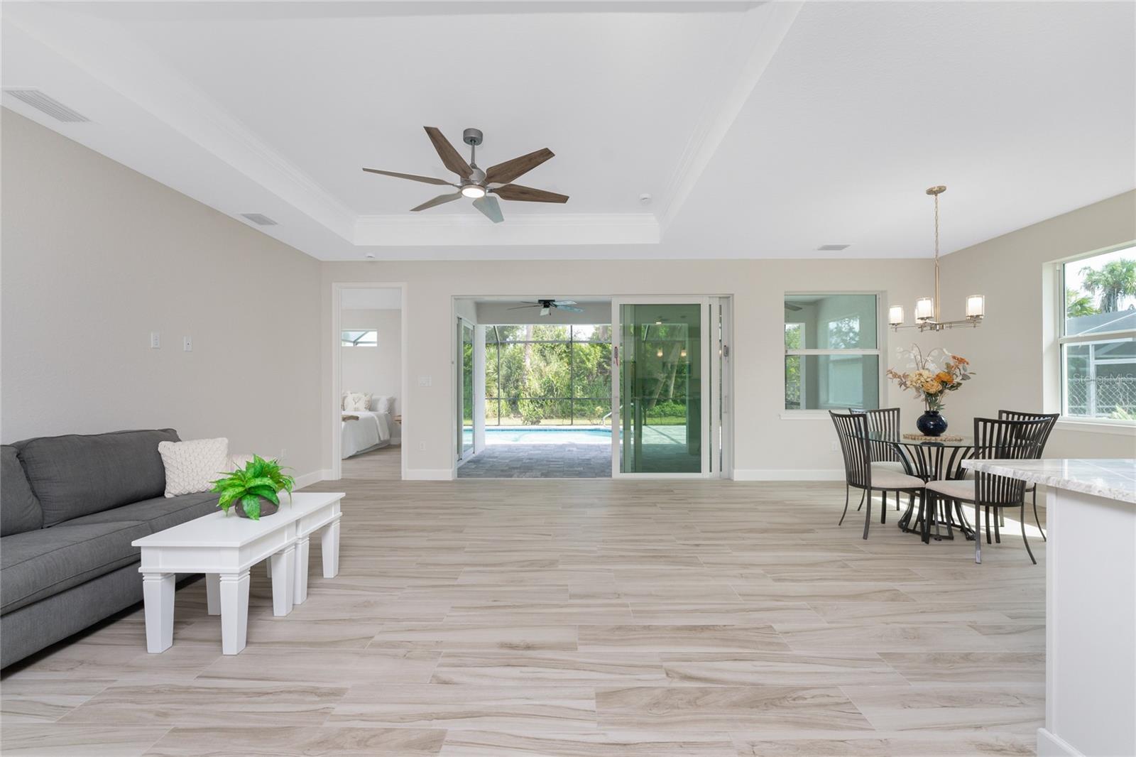 Por que construir quando você pode possuir esta extraordinária casa com piscina de blocos de concreto construída em 2023 e nunca habitada em Rotonda Heights! Uma calçada de pavimentação e colunas decorativas na convidativa varanda da frente dão o tom para o que está dentro. Esta casa de três quartos e dois banheiros exibe azulejos de design por toda parte, encanamentos atualizados, ventiladores de teto, luminárias elegantes, portas de 2,5 metros, spray isolamento de espuma e cores neutras da parede que realçam seu interior claro e luminoso. Se você adora entretenimento, a grande sala de conceito aberto com teto e molduras, cozinha e área de jantar oferecem o ambiente perfeito para conversas fáceis com amigos e familiares durante as reuniões. O chef da família irá apreciar os armários brancos em estilo shaker com portas de fechamento suave, bancadas de granito de nível 3, eletrodomésticos de aço inoxidável e uma grande ilha central com balcão para café da manhã na cozinha. O quarto principal da suíte oferece closet, porta de correr de acesso à área da piscina e banheiro luxuoso com pia dupla com tampo de granito, box amplo e closet adicional. Os dois quartos de hóspedes possuem armários embutidos, enquanto o banheiro de hóspedes oferece uma penteadeira com tampo de granito e uma combinação de banheira/chuveiro para maior comodidade. Uma lavanderia interna tem uma pia com tampo de granito e prateleiras para fornecer armazenamento adicional. As portas de vidro deslizantes com bolsos triplos na grande sala estendem perfeitamente o seu espaço de estar para a ampla varanda de pavimentação, completa com ventiladores de teto e vistas serenas da floresta. A piscina oferece o lugar perfeito para afastar suas preocupações. Os destaques adicionais incluem portas e janelas de impacto em toda a casa, classificação de zona de inundação X, eletricidade subterrânea e uma garagem de bom tamanho para 2 carros. Rotonda Heights é uma comunidade tranquila em um ambiente pitoresco, oferecendo lagos serenos, muitas atividades ao ar livre e acesso conveniente a campos de golfe, parques e praias de areia branca da Costa do Golfo próximos. Este é o lugar ideal para quem procura um estilo de vida descontraído e ativo na Flórida. Entre em contato conosco hoje para agendar sua exibição privada.
