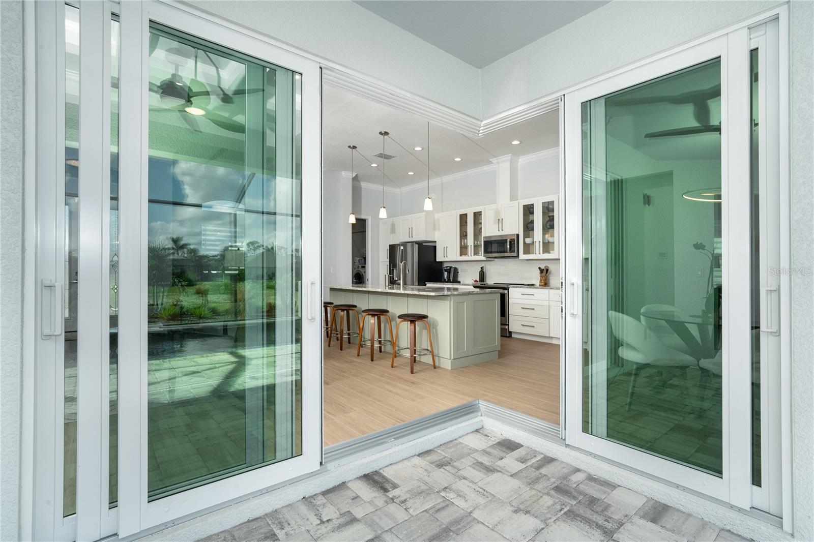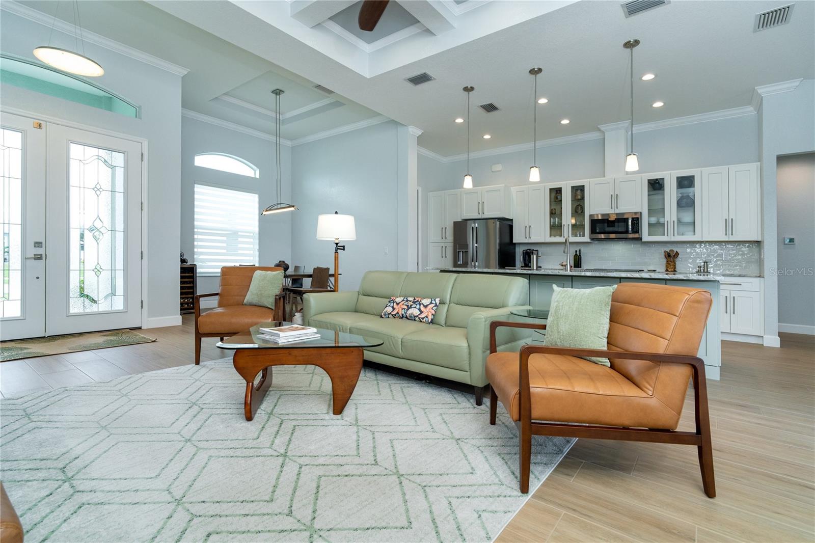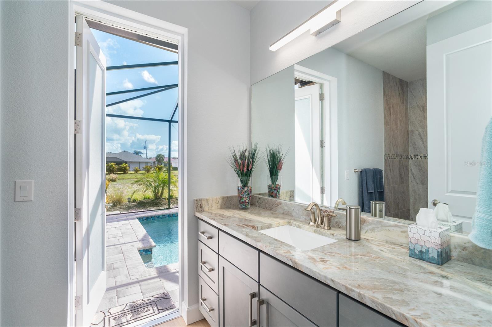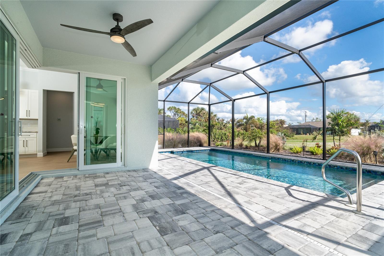 MELHOR QUE NOVO! Por que esperar para construir quando você pode mudar-se diretamente para esta deslumbrante casa contemporânea com piscina, construída sob medida, com 2 anos de idade, na muito procurada comunidade de golfe de Rotonda West, na prestigiada Rotonda Blvd North? Esta casa, localizada em um terreno de grandes dimensões de 80 'x 200' (0,37 acres) na zona de inundação X preferida, possui uma planta baixa de conceito aberto cuidadosamente projetada com várias atualizações do construtor e do proprietário por toda parte. A partir do momento em que você passa pela porta dupla de vidro sem barreiras e entra no vestíbulo elevado, você será cativado pela planta dividida, iluminada e aberta, que separa a suíte principal dos quartos 2 e 3, garantindo privacidade em lados opostos do quarto. área de estar principal. O design contemporâneo da casa apresenta detalhes elegantes, como tetos altos com sancas duplas, iluminação e ventiladores personalizados de alta eficiência, teto em caixotões com iluminação extra, portas de 8', portas de bolso, controles deslizantes de 90 graus, acabamento de base de 5 ¼ ”e elegante Piso em porcelanato de tábuas de madeira por toda parte. A cozinha do chef está equipada com equipamentos G.E. Aparelhos perfilados em aço inoxidável, armários com fechamento automático com prateleiras deslizantes Shelf Genie no gabinete e uma ilha espaçosa (50" P x 9'9,5" L) com assentos e armazenamento em ambos os lados. Lindas bancadas de quartzito nível 3 e um backsplash de azulejos personalizado elevam o espaço, tornando-o um verdadeiro paraíso culinário. O banheiro da suíte principal oferece uma experiência luxuosa com um chuveiro grande para lavagem de carros com bancos combinando, porcelanato, detalhes decorativos em azulejos e piso de pedra selado, bem como uma banheira de imersão separada. Janelas e portas de vidro de impacto com isolamento duplo fornecem proteção contra furacões sem esforço. Os destaques adicionais incluem uma espaçosa garagem para 3 carros com revestimento de piso epóxi e poliaspártico personalizado, um novo telhado (instalado em fevereiro de 2023) com uma barreira resistente à água atualizada e uma piscina personalizada lindamente projetada. A piscina de água salgada aquecida de 11'x25' inclui revestimento Pebble tec durável, azulejos decorativos e reflexivos, uma cachoeira em arco, uma bomba de velocidade variável de 1,8 e uma grande gaiola de piscina de 18'x37' com pátio de pavimentação adjacente e passarela. Recursos externos, como meio-fio personalizado, cantaria, paisagismo personalizado e iluminação aumentam ainda mais a atratividade do meio-fio da propriedade. O orgulho de propriedade é evidente em todos os cantos desta casa. Agende hoje mesmo a sua visita privada e experimente o charme e a qualidade desta propriedade excepcional!