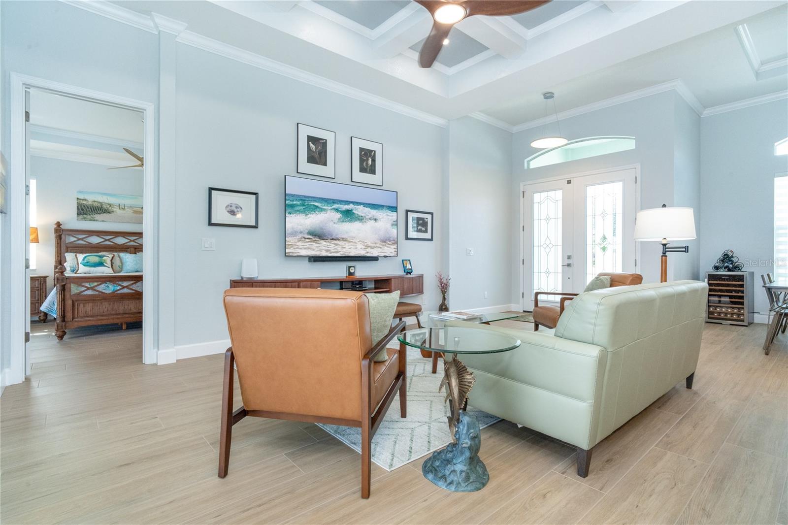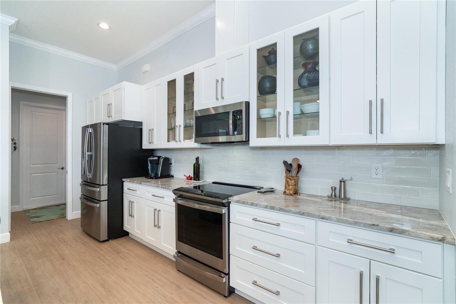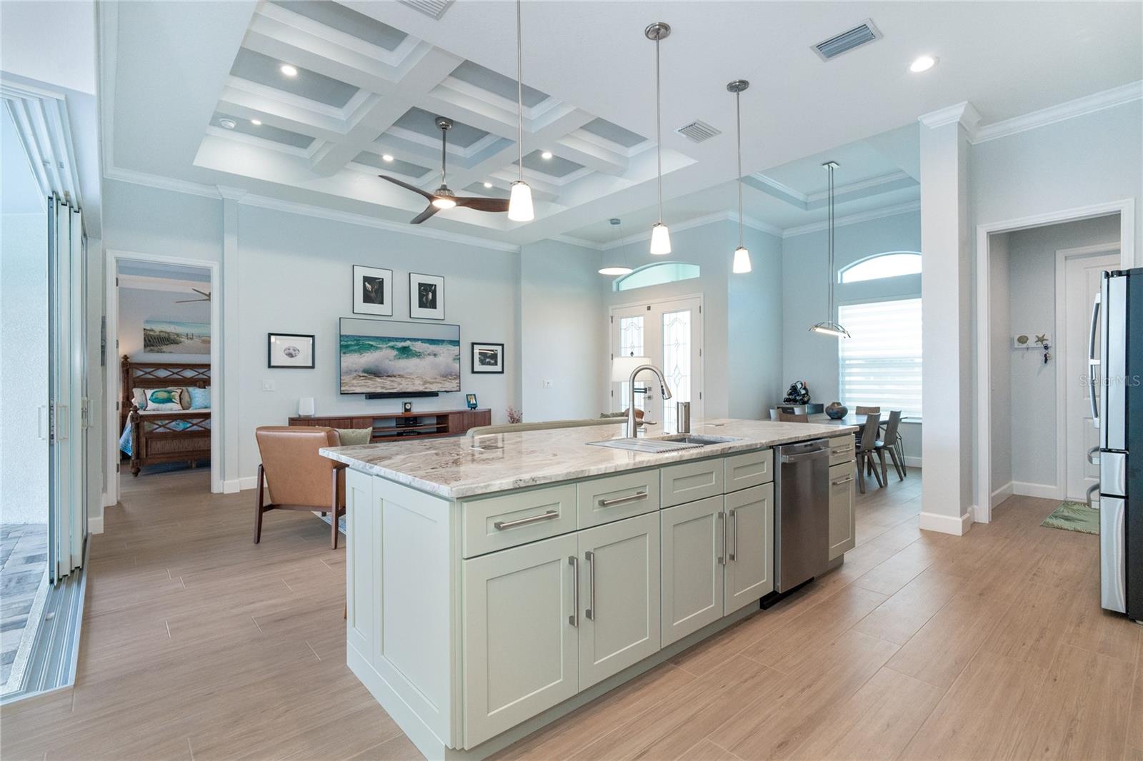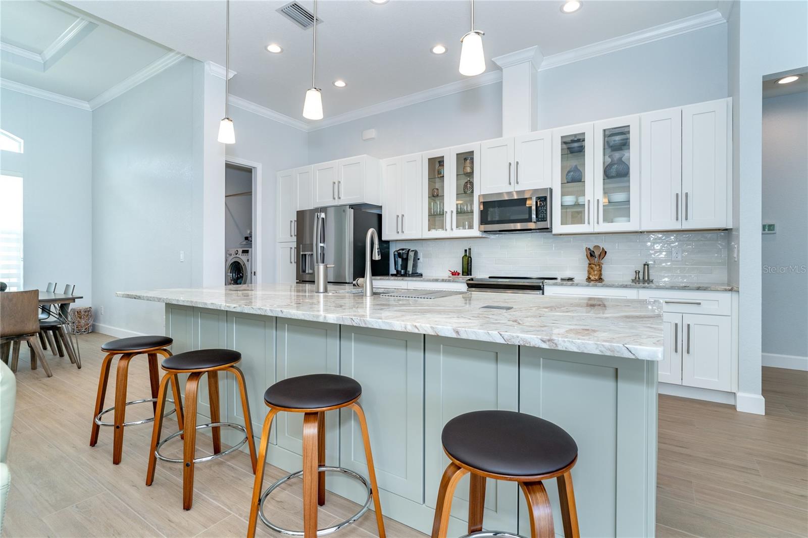MELHOR QUE NOVO! Por que esperar para construir quando você pode mudar-se diretamente para esta deslumbrante casa contemporânea com piscina, construída sob medida, com 2 anos de idade, na muito procurada comunidade de golfe de Rotonda West, na prestigiada Rotonda Blvd North? Esta casa, localizada em um terreno de grandes dimensões de 80 'x 200' (0,37 acres) na zona de inundação X preferida, possui uma planta baixa de conceito aberto cuidadosamente projetada com várias atualizações do construtor e do proprietário por toda parte. A partir do momento em que você passa pela porta dupla de vidro sem barreiras e entra no vestíbulo elevado, você será cativado pela planta dividida, iluminada e aberta, que separa a suíte principal dos quartos 2 e 3, garantindo privacidade em lados opostos do quarto. área de estar principal. O design contemporâneo da casa apresenta detalhes elegantes, como tetos altos com sancas duplas, iluminação e ventiladores personalizados de alta eficiência, teto em caixotões com iluminação extra, portas de 8', portas de bolso, controles deslizantes de 90 graus, acabamento de base de 5 ¼ ”e elegante Piso em porcelanato de tábuas de madeira por toda parte. A cozinha do chef está equipada com equipamentos G.E. Aparelhos perfilados em aço inoxidável, armários com fechamento automático com prateleiras deslizantes Shelf Genie no gabinete e uma ilha espaçosa (50" P x 9'9,5" L) com assentos e armazenamento em ambos os lados. Lindas bancadas de quartzito nível 3 e um backsplash de azulejos personalizado elevam o espaço, tornando-o um verdadeiro paraíso culinário. O banheiro da suíte principal oferece uma experiência luxuosa com um chuveiro grande para lavagem de carros com bancos combinando, porcelanato, detalhes decorativos em azulejos e piso de pedra selado, bem como uma banheira de imersão separada. Janelas e portas de vidro de impacto com isolamento duplo fornecem proteção contra furacões sem esforço. Os destaques adicionais incluem uma espaçosa garagem para 3 carros com revestimento de piso epóxi e poliaspártico personalizado, um novo telhado (instalado em fevereiro de 2023) com uma barreira resistente à água atualizada e uma piscina personalizada lindamente projetada. A piscina de água salgada aquecida de 11'x25' inclui revestimento Pebble tec durável, azulejos decorativos e reflexivos, uma cachoeira em arco, uma bomba de velocidade variável de 1,8 e uma grande gaiola de piscina de 18'x37' com pátio de pavimentação adjacente e passarela. Recursos externos, como meio-fio personalizado, cantaria, paisagismo personalizado e iluminação aumentam ainda mais a atratividade do meio-fio da propriedade. O orgulho de propriedade é evidente em todos os cantos desta casa. Agende hoje mesmo a sua visita privada e experimente o charme e a qualidade desta propriedade excepcional!