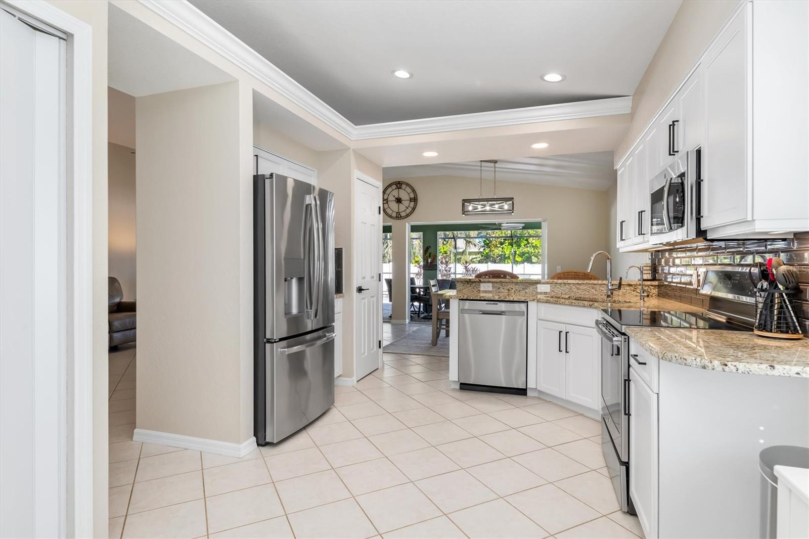 Enorme ajuste de preço! Bem-vindo a esta casa lindamente atualizada de 3 quartos e 2 banheiros com uma garagem, oferecendo uma mistura perfeita de conforto e estilo. Apresentando tetos altos e dois conjuntos de portas de parede deslizantes que levam a um espaçoso lanai, esta casa é ideal para relaxamento e entretenimento. Recém -pintado com o novo hardware de porta e luminárias atualizadas, todos os detalhes foram cuidadosamente projetados. A garagem é um destaque, com um piso revestido de epóxi e uma lavagem conveniente. Do lado de fora, desfrute de uma piscina de água salgada aquecida com uma marinha de sol, instalada em 2021 e cercada por uma gaiola rastreada e pavimentadoras recém -seladas. A área da piscina é perfeita para prazer durante todo o ano. A propriedade também inclui uma unidade de concreto separada de 6 "com um portão duplo que leva ao estacionamento para trailers e uma conexão elétrica de 50 amp. Muito espaço para armazenar seus reboques e veículos extras em uma área fechada presa. Muita espaço para adicionar uma garagem ou manca de manobra (essa propriedade permite que uma estrutura de inundação não requer que uma abundância não tenha uma queda de silenciosa. Espaço para relaxar. (2024), Pintura interior fresca, luminárias atualizadas e hardware de porta atualizado.