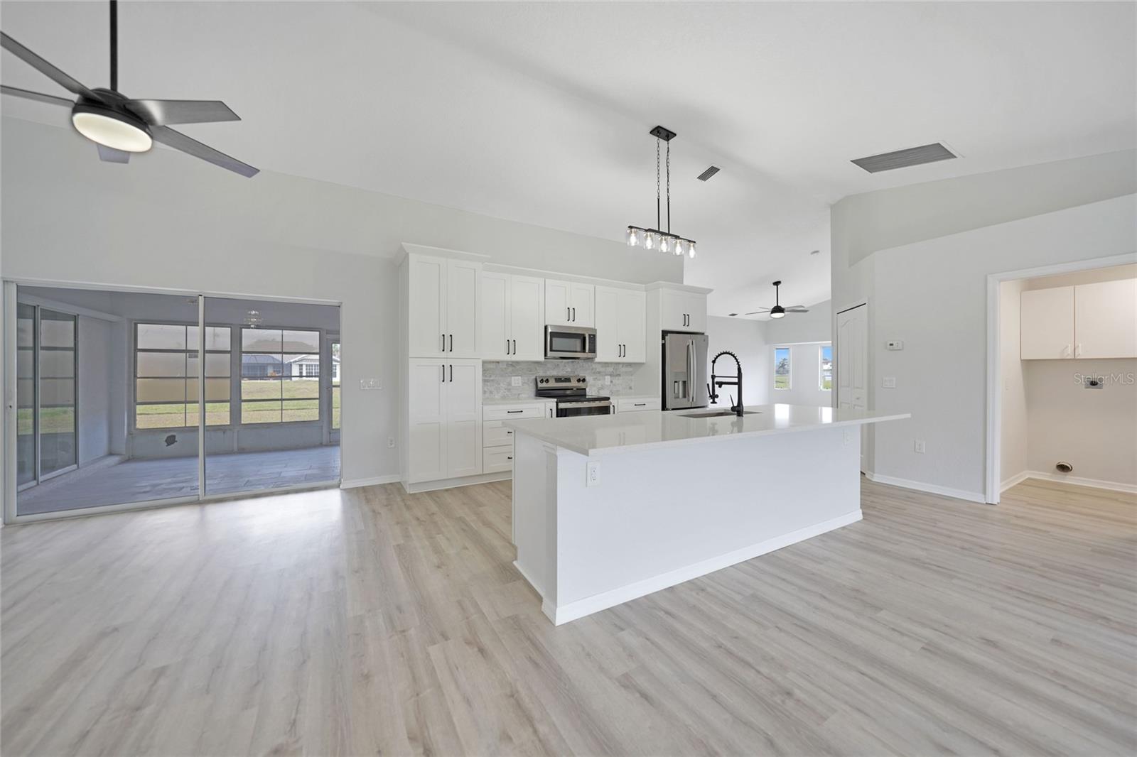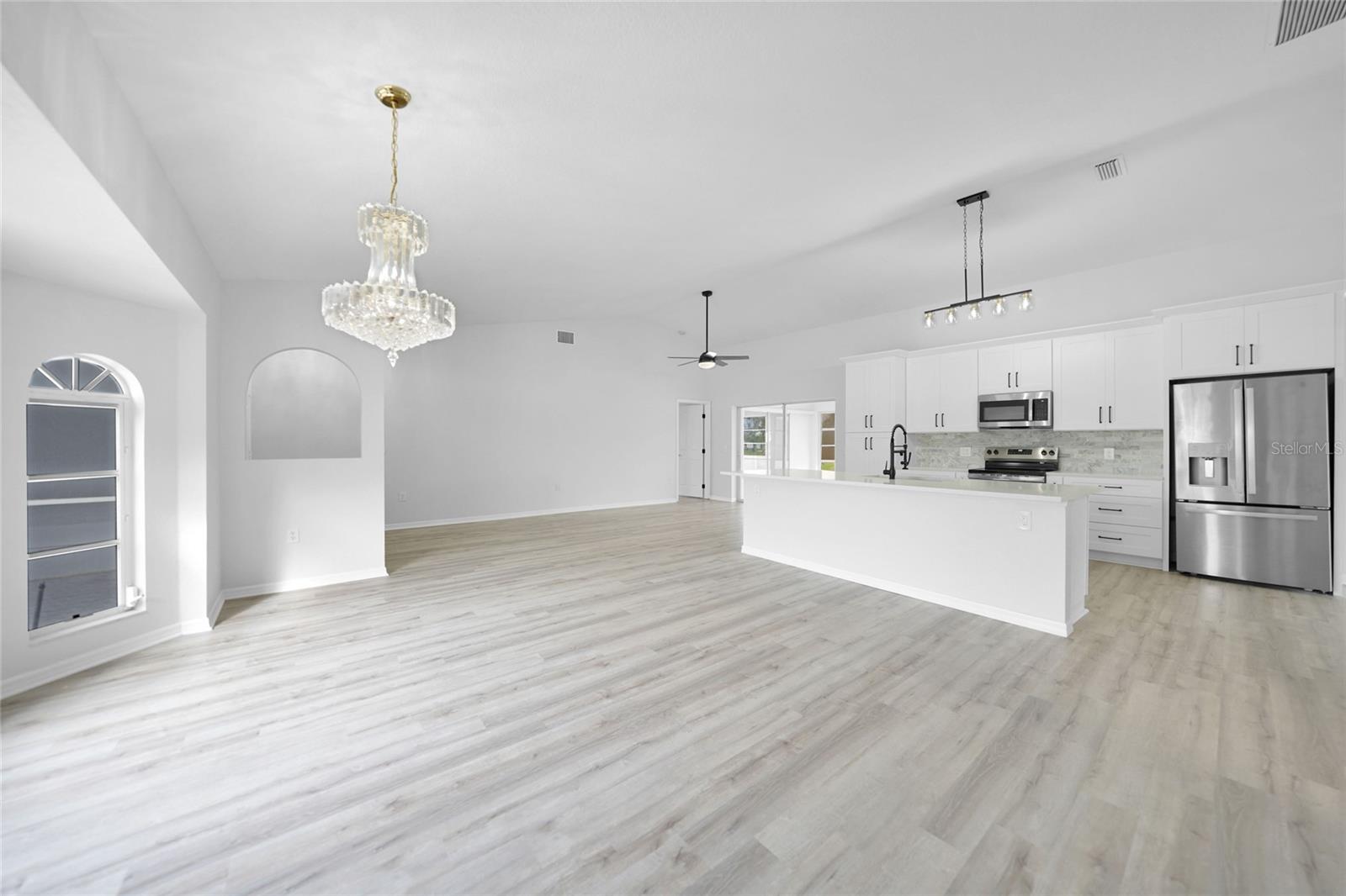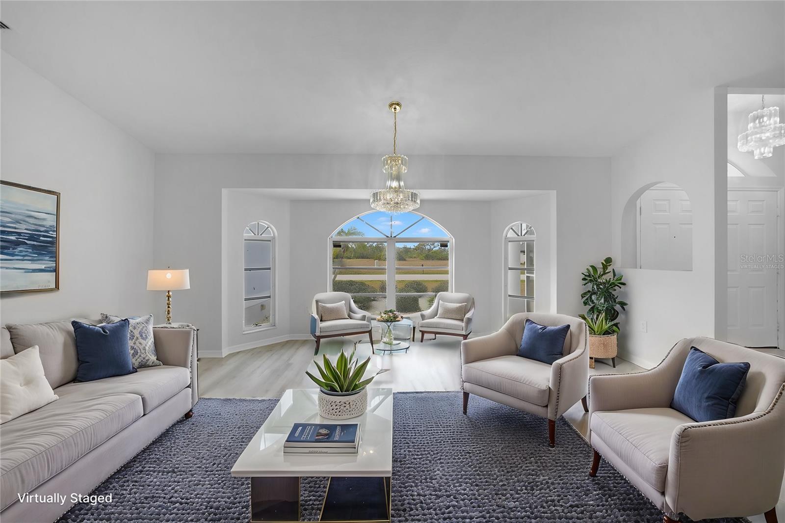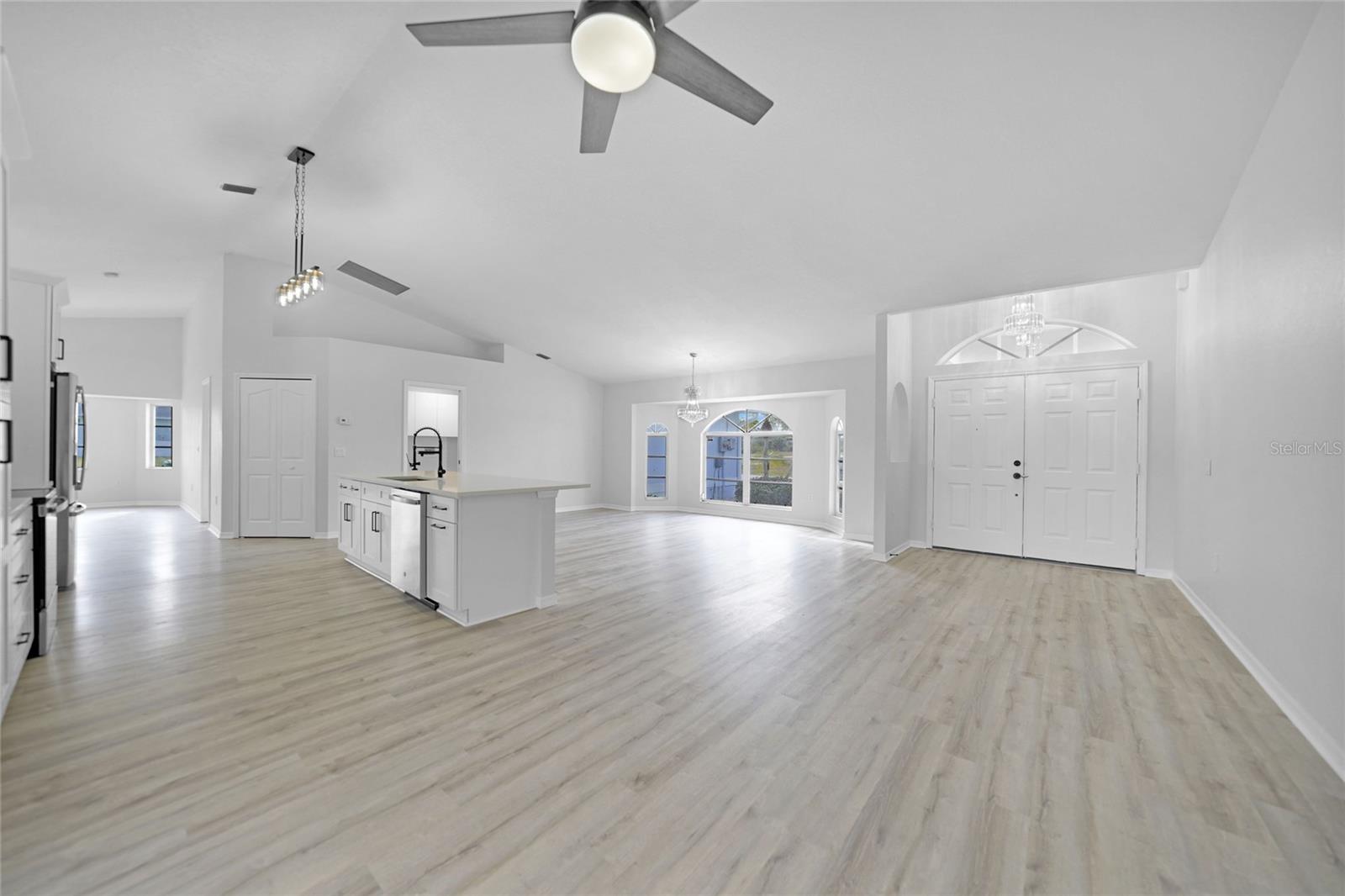 Bem-vindo a esta casa elegantemente remodelada de 4 quartos e 2 banheiros na desejável comunidade de Rotonda West! Oferecendo mais de 2.400 pés quadrados sob o ar, este refúgio moderno é cuidadosamente projetado com uma planta baixa, perfeita para uma vida e entretenimento confortáveis e um novo telhado! Entre para descobrir o piso de tábua de vinil luxuoso (LVT) em todas as áreas principais, com ladrilhos elegantes nos banheiros para facilitar a manutenção. A nova cozinha é um showstopper, com armários de madeira com moldagem por coroa, bancadas de quartzo deslumbrantes, um backsplash chique e uma ilha espaçosa com uma barra de café da manhã. Aparelhos de aço inoxidável e iluminação atualizada completam a aparência moderna, tornando esta cozinha o sonho de um chef. A expansiva suíte primária é um verdadeiro retiro, oferecendo uma sala de estar privada com portas que levam à sala da Flórida, dois generosos armários e um banheiro privativo. O banheiro semelhante ao spa inclui uma vaidade de pia dupla com bancadas de quartzo, um chuveiro e uma banheira de imersão separada para o relaxamento final. Os tetos abobadados aprimoram o ambiente arejado da casa, enquanto novas iluminação e fãs adicionam um toque novo e contemporâneo. Vários espaços de estar, incluindo uma sala de estar formal e uma sala de estar acolhedora, oferecem amplo espaço para reuniões. A lavanderia interna oferece conveniência adicional. Situado em um estacionamento de canto com uma garagem para dois carros, a propriedade também apresenta persianas para tranquilidade. Aprecie o estilo de vida da Flórida na encantadora comunidade de Rotonda West, conhecida por seus cinco campos de golfe e proximidade com a praia de Englewood e Boca Grande-apenas a 10 minutos de carro! Restaurantes, compras e recreação ao ar livre estão ao seu alcance. Não perca esta oportunidade de possuir uma casa meticulosamente atualizada em um local privilegiado. Agende sua turnê privada hoje!