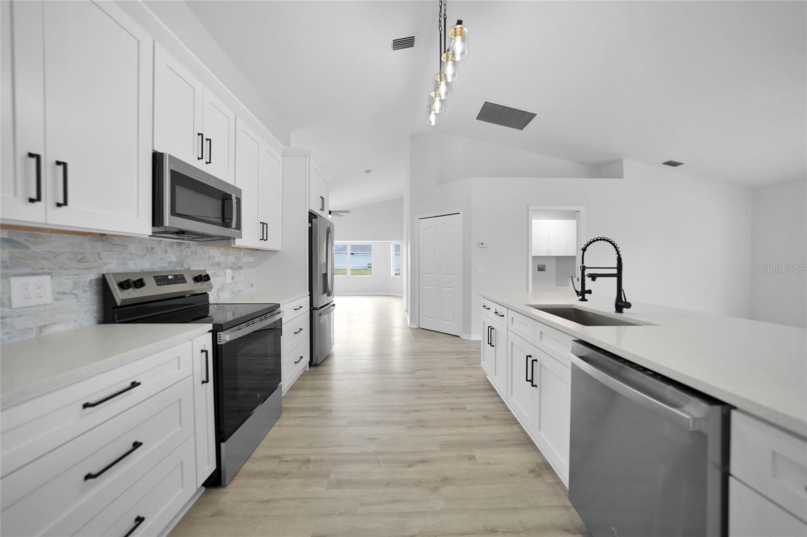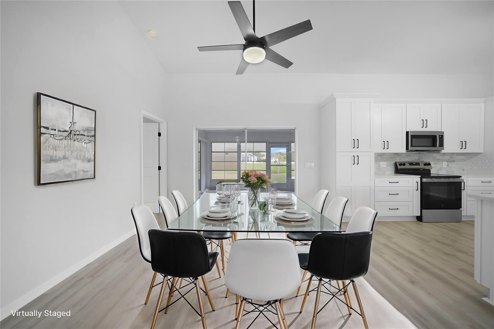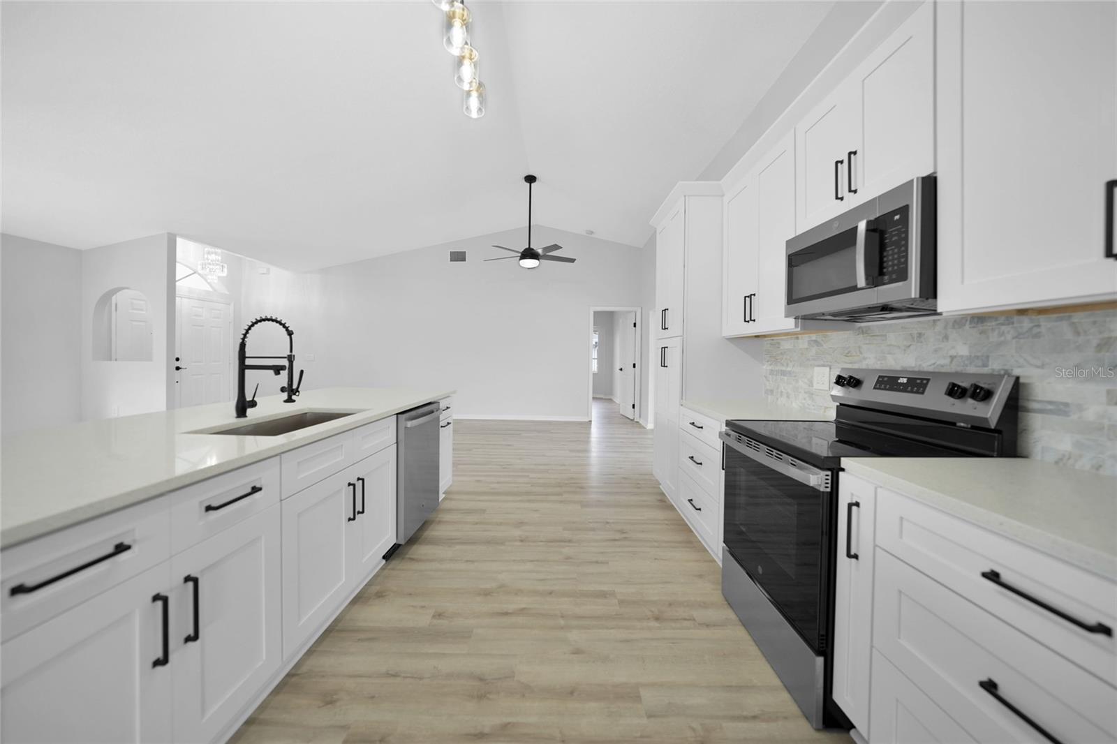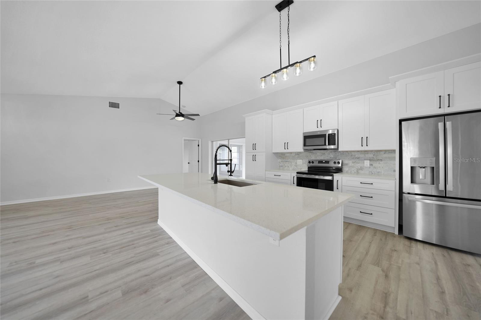 Bem-vindo a esta casa elegantemente remodelada de 4 quartos e 2 banheiros na desejável comunidade de Rotonda West! Oferecendo mais de 2.400 pés quadrados sob o ar, este refúgio moderno é cuidadosamente projetado com uma planta baixa, perfeita para uma vida e entretenimento confortáveis e um novo telhado! Entre para descobrir o piso de tábua de vinil luxuoso (LVT) em todas as áreas principais, com ladrilhos elegantes nos banheiros para facilitar a manutenção. A nova cozinha é um showstopper, com armários de madeira com moldagem por coroa, bancadas de quartzo deslumbrantes, um backsplash chique e uma ilha espaçosa com uma barra de café da manhã. Aparelhos de aço inoxidável e iluminação atualizada completam a aparência moderna, tornando esta cozinha o sonho de um chef. A expansiva suíte primária é um verdadeiro retiro, oferecendo uma sala de estar privada com portas que levam à sala da Flórida, dois generosos armários e um banheiro privativo. O banheiro semelhante ao spa inclui uma vaidade de pia dupla com bancadas de quartzo, um chuveiro e uma banheira de imersão separada para o relaxamento final. Os tetos abobadados aprimoram o ambiente arejado da casa, enquanto novas iluminação e fãs adicionam um toque novo e contemporâneo. Vários espaços de estar, incluindo uma sala de estar formal e uma sala de estar acolhedora, oferecem amplo espaço para reuniões. A lavanderia interna oferece conveniência adicional. Situado em um estacionamento de canto com uma garagem para dois carros, a propriedade também apresenta persianas para tranquilidade. Aprecie o estilo de vida da Flórida na encantadora comunidade de Rotonda West, conhecida por seus cinco campos de golfe e proximidade com a praia de Englewood e Boca Grande-apenas a 10 minutos de carro! Restaurantes, compras e recreação ao ar livre estão ao seu alcance. Não perca esta oportunidade de possuir uma casa meticulosamente atualizada em um local privilegiado. Agende sua turnê privada hoje!