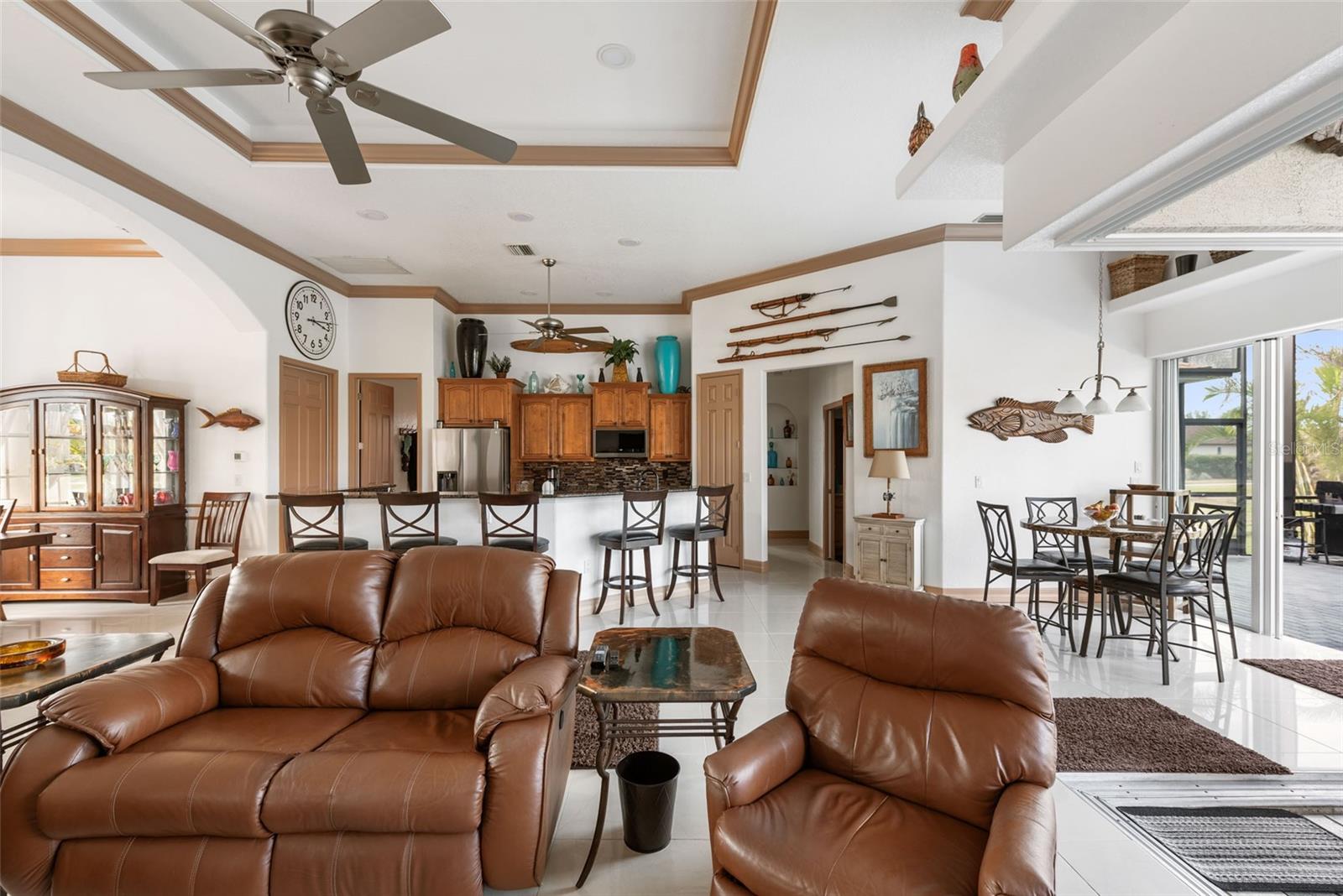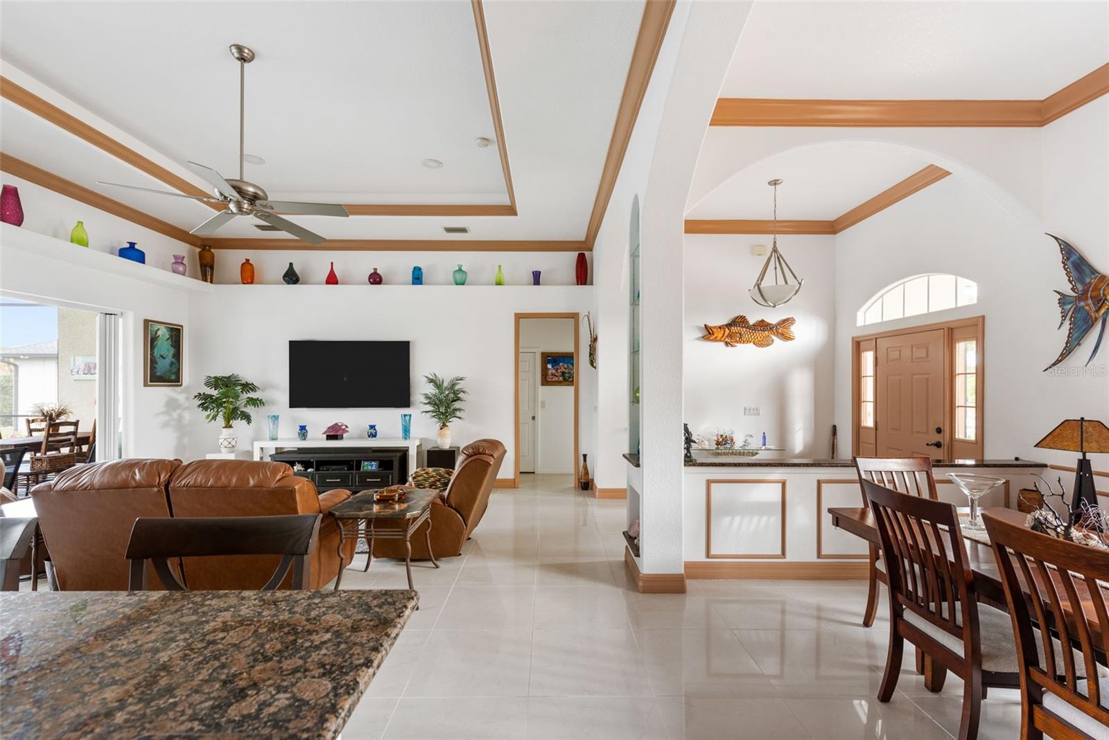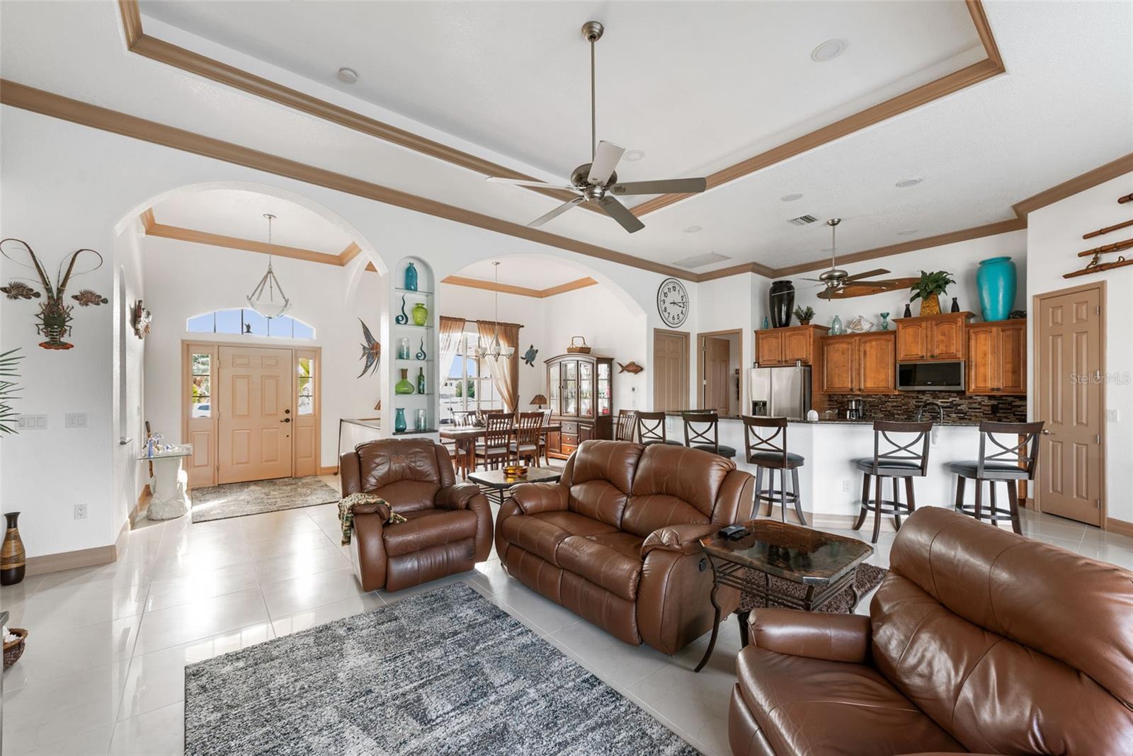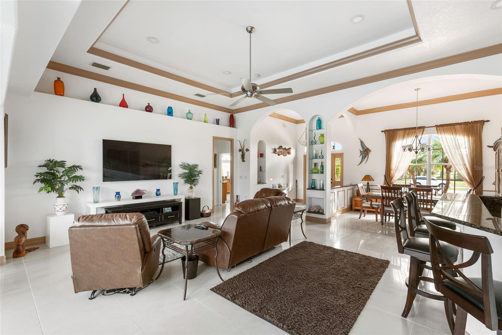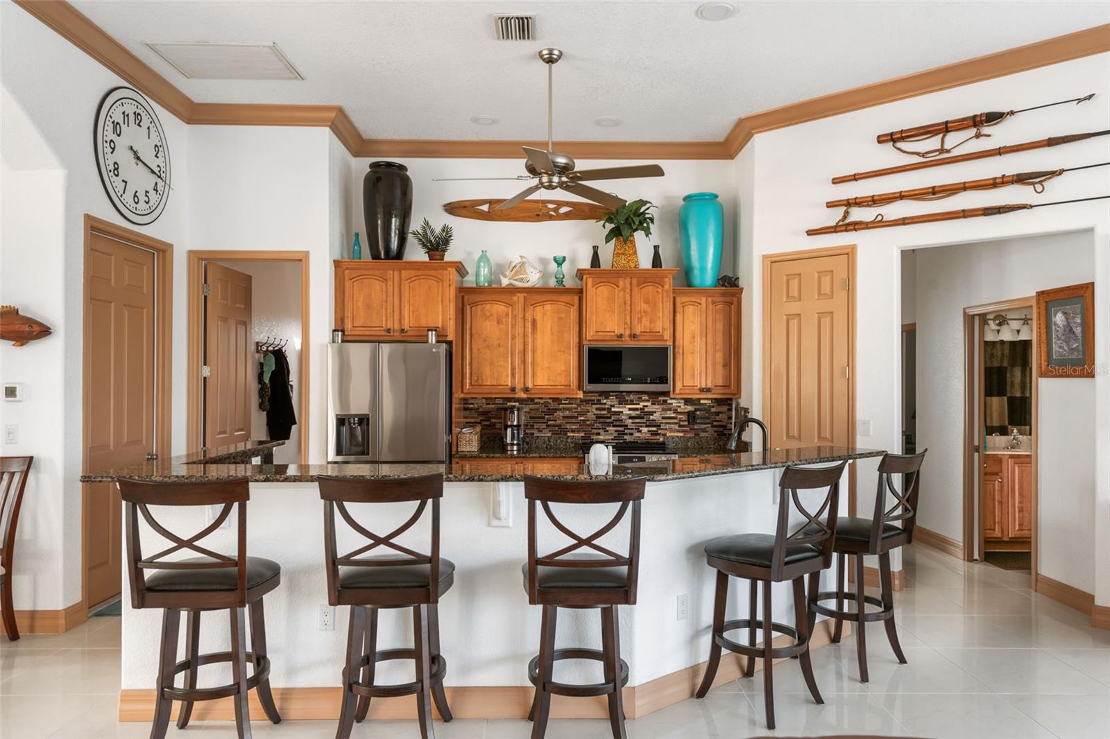 Esta deslumbrante casa, construída como um "modelo de construtor", apresenta características excepcionais por toda parte. O porcelanato 24x24 enfeita os espaços de convivência, enquanto o luxuoso piso de vinil adiciona calor a todos os quartos. Situada em um terreno grande de 200x80 em um cinturão verde sereno, esta casa oferece um ambiente tranquilo. Ao entrar, você será saudado por tetos de 3,5 metros e um nicho de arte iluminado. A espaçosa sala de estar possui tetos de 11 pés com um teto cativante de 12 pés, um ventilador de teto e uma prateleira de exposição iluminada. A cozinha apresenta armários de madeira de bordo com iluminação elegante acima, bancadas de granito e pia dupla de aço inoxidável com descarte. Prateleiras iluminadas, luzes sob o armário, ventilador de teto e luzes embutidas melhoram o ambiente e a funcionalidade. Aparelhos LG de aço inoxidável de última geração com conectividade à Internet, incluindo fogão, geladeira, micro-ondas e lava-louças, completam este paraíso culinário. A sala de jantar, adornada com tetos de 3,3 metros e um nicho de arte, oferece um espaço formal para entretenimento. O quarto principal é um verdadeiro refúgio, com tetos de 3 metros, um controle deslizante de 2,5 metros que leva à piscina e um closet espaçoso com teto de 2,7 metros e prateleiras adicionais acima do cabideiro. O banheiro principal é um oásis semelhante a um spa, com tetos de catedral, janelas de blocos de vidro e pia dupla com bancada de pedra. Uma banheira de hidromassagem e um grande chuveiro com quatro chuveiros (dois padrão, dois de chuva) oferecem o máximo relaxamento. Pisos e paredes de cerâmica, porta de vidro, banheiro privativo, amplo armário de roupa de cama, lustre e luzes embutidas completam este espaço luxuoso. A ampla varanda é um paraíso para artistas. Uma piscina tecnológica de seixos cintilantes, aquecida e adornada com uma cachoeira, é a peça central. A gaiola da piscina possui uma tela panorâmica e o deck da piscina ao redor é completo com pavimentação. Um chuveiro externo, uma área de estar coberta e uma área externa para grelhar proporcionam amplo espaço para relaxamento e diversão. A iluminação paisagística traseira adiciona um toque de magia à noite. O banheiro de hóspedes possui uma combinação banheira/chuveiro com uma porta que dá para a piscina, uma pia de tigela única, uma penteadeira de madeira, bancadas em Corian e armários de armazenamento acima. A lavanderia está equipada com lavadora e secadora GE Profile, armário para guardar pequenos eletrodomésticos, armário de madeira com pia e conveniente tábua de passar roupa dobrável. A garagem para dois carros possui piso de epóxi, porta resistente a furacões de 2,5 metros de altura, painel elétrico de 200 A e sistema de irrigação. Os recursos adicionais incluem tomadas especiais no intradorso frontal para luzes de Natal com um interruptor interno e portas de 2,5 metros de altura em toda a casa. Se procura uma casa verdadeiramente excepcional, que ofereça um estilo de vida luxuoso e confortável, não procure mais. Agende sua exibição privada hoje mesmo!