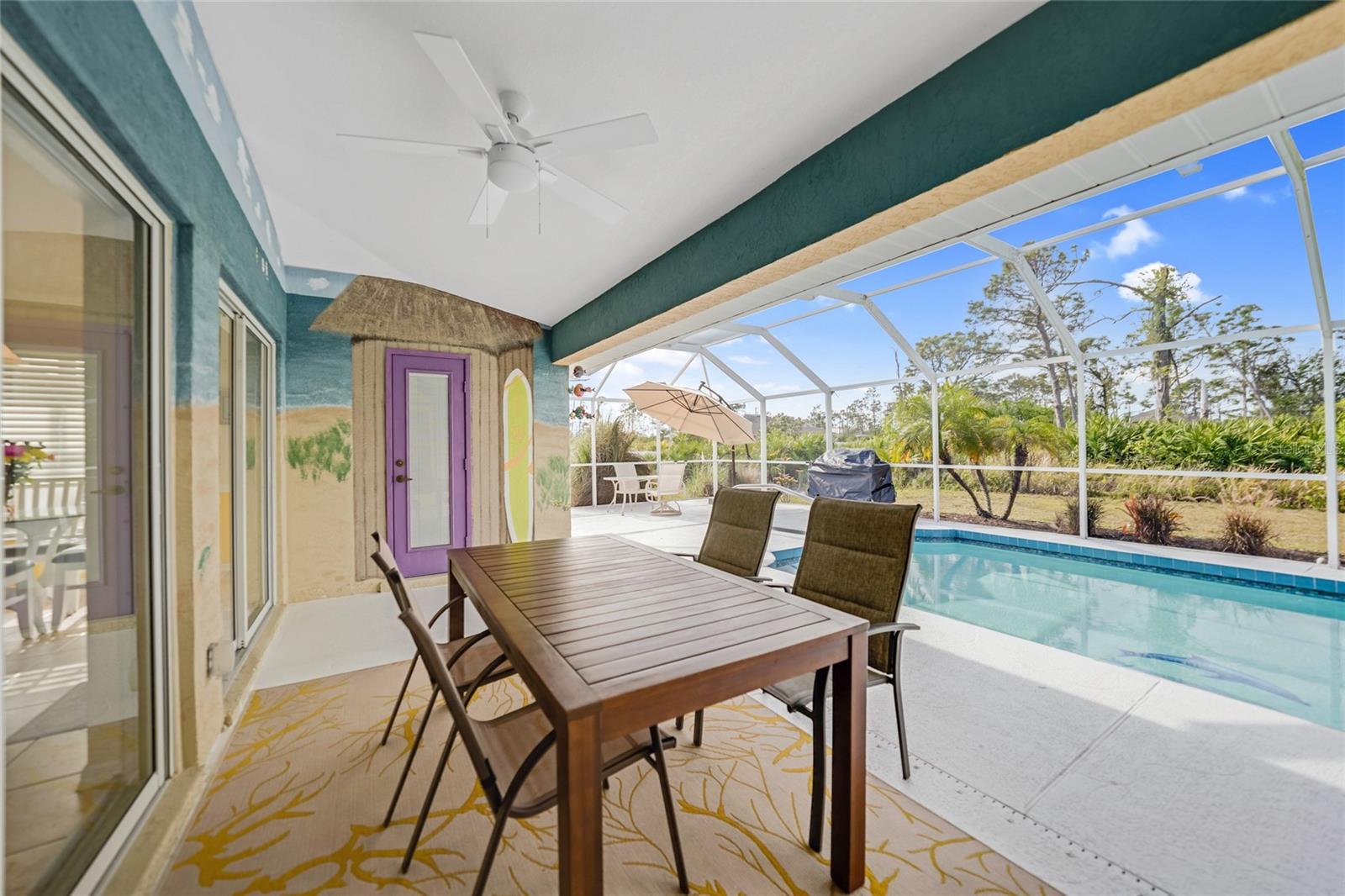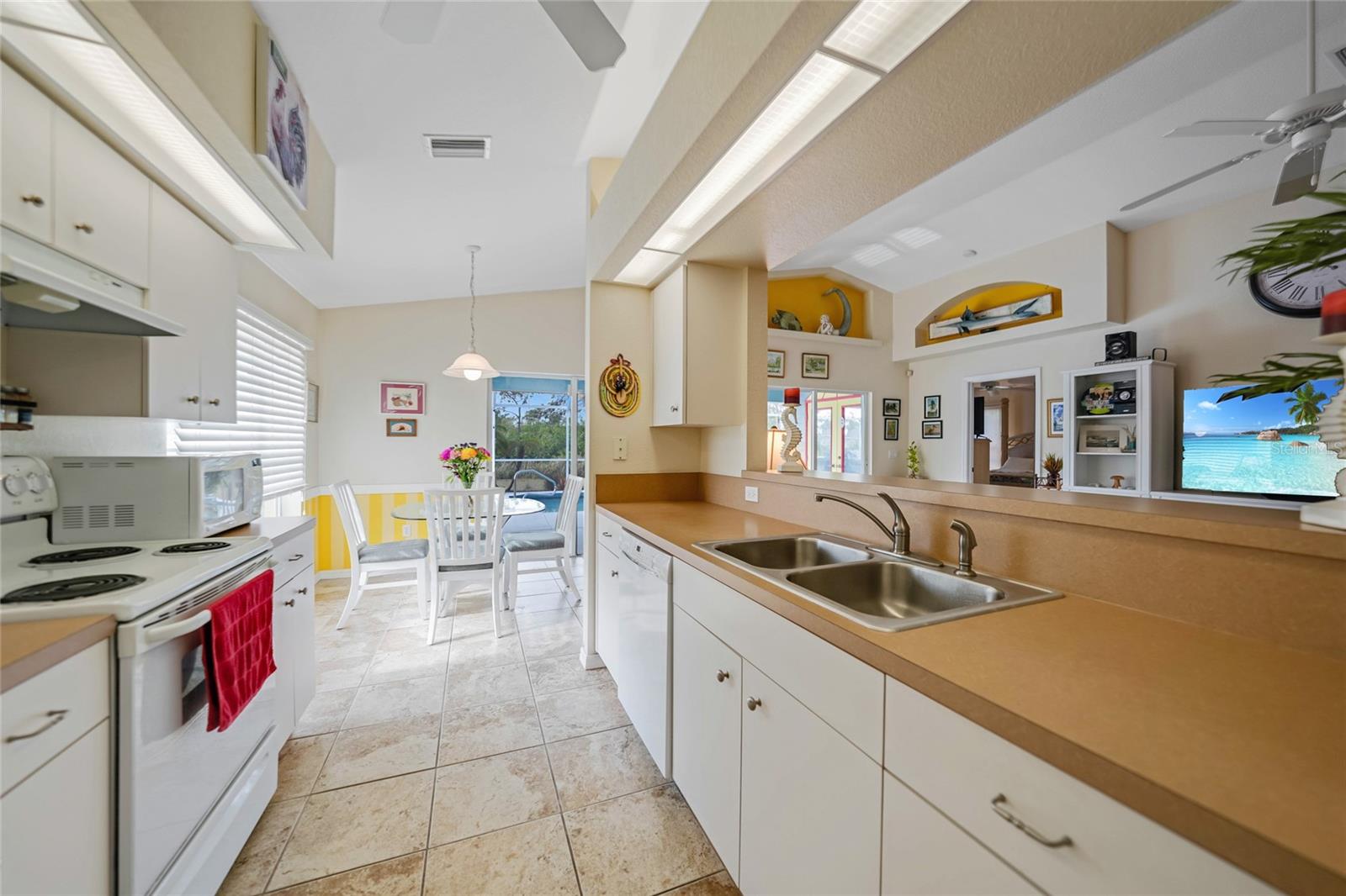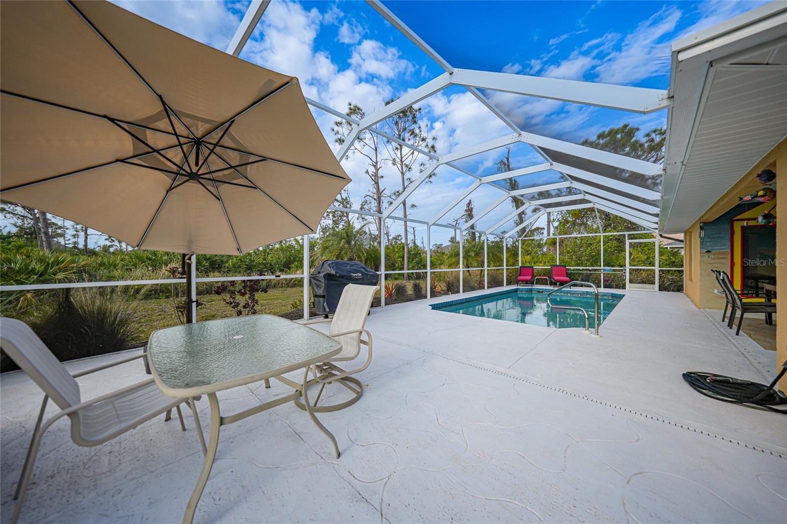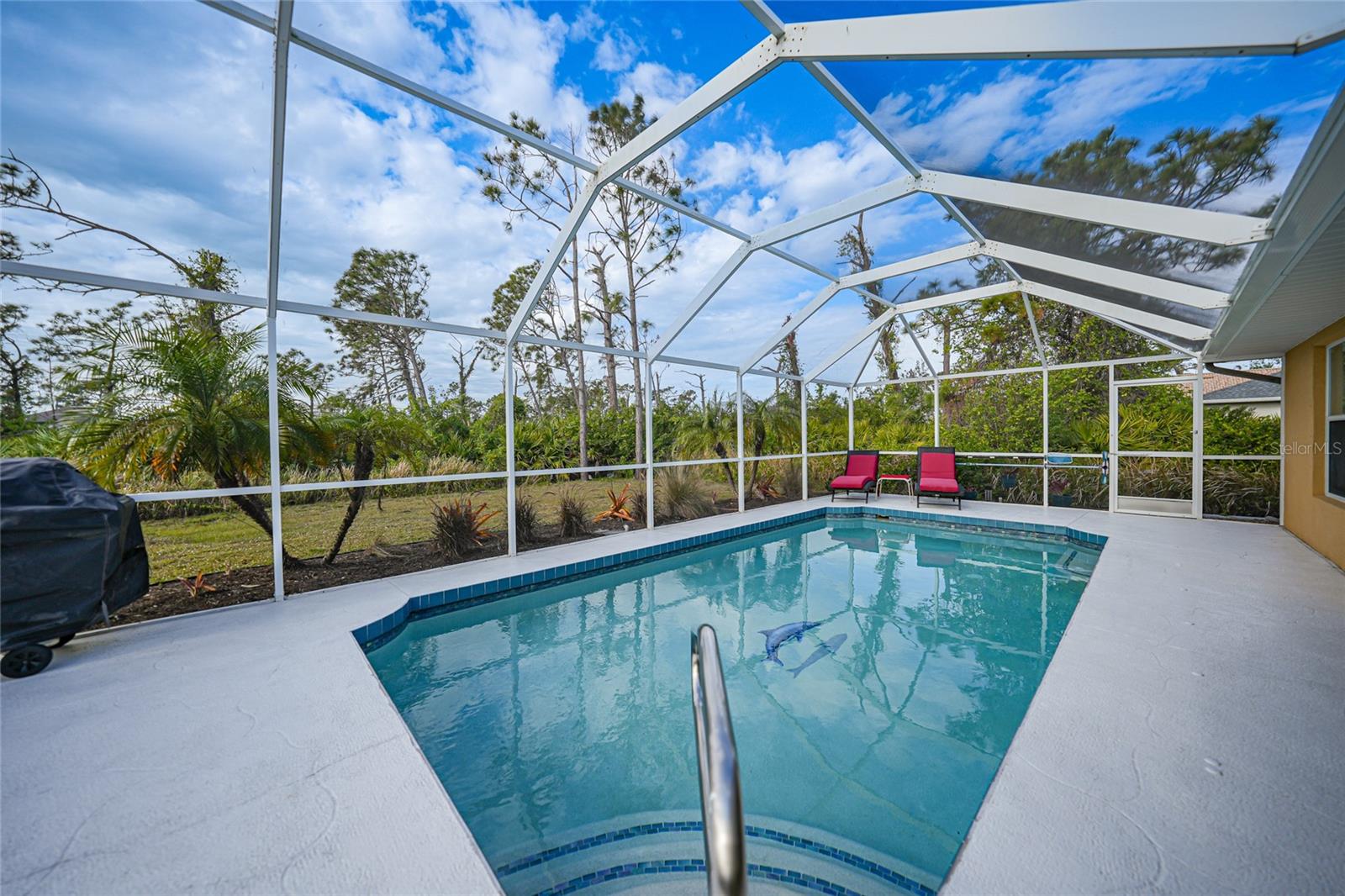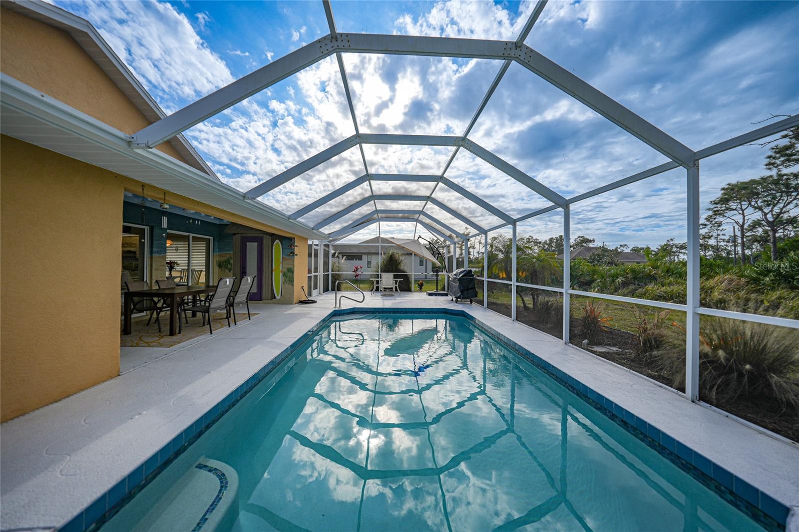 Uma garagem extra vem com esta bela piscina em casa (não na zona de inundação) em 2 lotes. A garagem extra tem uma sala com ar condicionado que pode ser usada para sala de artesanato, covil ou até quarto. Ou você pode derrubar a parede e encaixar outro carro na garagem. A casa foi rezonada e nenhum seguro de inundação é necessário. Quando você entra nesta casa, seus olhos são imediatamente atraídos para a linda piscina que foi recurutada em 2024 e aquecedor de piscina em 2022. Há também um meio de banho à beira da piscina, para que sem água pingando em toda a casa. Relaxe na piscina ou sente -se na grande Lanai e absorva o clima adorável da Flórida. Não se preocupe durante a temporada de furacões, pois o telhado foi feito em 2021 e a casa tem persianas de furacões. Os proprietários afirmam que não sofreram danos nesta última temporada de furacões !!! Que vantagem é isso. O interior desta casa é tão adorável. A cozinha totalmente equipada tem bar de café da manhã, comendo espaço e tem vista para a grande sala grande com sala de jantar separada. Os dois quartos de hóspedes na frente da casa estão a poucos passos de seu próprio banheiro. Relaxe na sua suíte primária, pois tem um banho de suíte com as pias dele e dela, chuveiro separado, banheira grande de imersão e controles deslizantes para a área da piscina. Se você é um artesão ou adora mexer em carros, a segunda garagem grande é para você! Há muito espaço para todas as suas ferramentas e há uma sala separada que está sendo usada como sala de artesanato e pode ser facilmente convertida em outro quarto. Certifique -se de agendar sua exibição hoje! Por favor, consulte o 3D Tour anexado a esta listagem. Móveis disponíveis para compra separada.