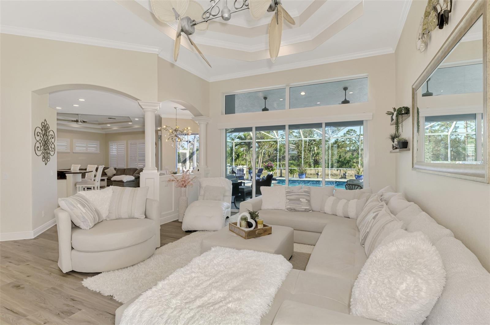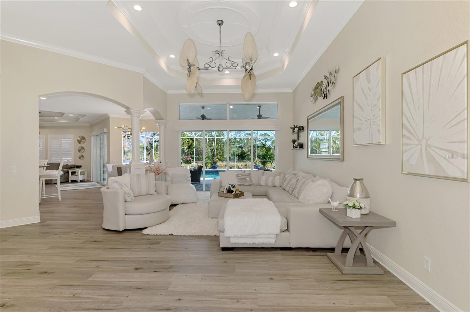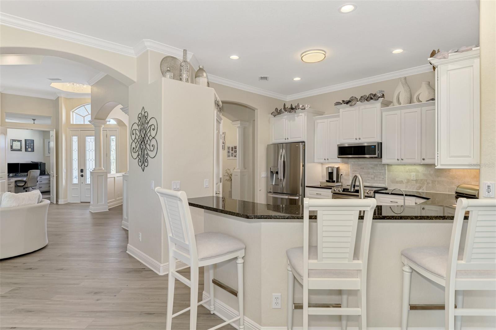 Bem -vindo ao 1059/1061 BLVD de limite! Aninhado em Rotonda West, esta casa executiva exemplifica detalhes arquitetônicos personalizados. À medida que você se aproxima da entrada da calçada, você notará imediatamente a atenção meticulosa aos detalhes. Abrangendo quase 2.900 pés quadrados, esta casa de 4 quartos e 2,5 banheiros combina luxo, conforto e o charme da vida na Flórida. Entrando, você será bem-vindo pela sofisticação dos tetos de bandeja de 10 a 14 ', pisos de tábuas de vinil de luxo, persianas de plantações, molduras de coroas extensas, portas de 8 pés e elementos arquitetônicos, como colunas, portas arqueadas e uma janela de aquário personalizada. Os novos controles deslizantes de vidro de impacto de 8 pés e as janelas de travestia quadro vistas pitorescas da piscina e do espaço ao ar livre no estilo da piscina da grande e elegante sala de estar. A área de jantar aberta é perfeita para entretenimento, enquanto a cozinha cuidadosamente renovada (incluindo aparelhos atualizados em 2023) oferece estilo e funcionalidade. Adjacente à aconchegante área de Dinette, há uma grande sala familiar, ideal para noites de cinema ou jogo em família. O quarto primário privado oferece um retiro tranquilo com amplo espaço e conforto. Localizada a poucos passos de distância, o quarto quarto está sendo usado atualmente como um escritório em casa, fornecendo um espaço versátil para trabalho, exercício ou estudo. Os outros dois quartos, um dos quais é generosamente dimensionado para acomodar uma cama king size e possui um grande armário, estão escondidos em um corredor privado perto da lavanderia e banheiro adicional. Esse layout pensativo garante privacidade e conveniência para todos os ocupantes. Esta casa apresenta armários de armazenamento adicionais que faltam em muitas casas da Flórida. Além disso, a garagem de 3 carros tem mais de 700 pés quadrados e possui tetos de 11 pés com muito espaço de estacionamento e armazenamento. O Lanai enfrenta a exposição mais desejável e procurada sudeste ao sol. A área da piscina foi completamente atualizada a um custo de US $ 31.000, com uma matriz prisma de borda úmida e acabamento de contas de vidro, ladrilhos de linha de água, lidar com blocos, prateleira de sol adicionada, bancada e uma lanai ressurgida. A piscina de água salgada é aquecida e também apresenta jatos pop-up no piso para facilitar a limpeza e uma bomba de piscina e filtro de alta eficiência de alta eficiência atualizados. O Lanai também possui um meio banheiro controlado pelo clima e um chuveiro ao ar livre. Other significant updates include designer light fixtures, high-efficiency lights and ceiling fans, new toilets and shower tile niches, a freshly painted exterior, a new roof installed in 2023, Bahama hurricane shutters, a Lennox 25+ Seer 5 Ton HVAC system with a 12,000 BTU mini split, new water heater, well pump, water conditioner, and reverse osmosis system, enhancing the home's efficiency and modern appeal. Do lado de fora, você encontrará seu oásis privado com uma mistura de palmeiras maduras, plantas tropicais, restrição personalizada e detalhes em pedra. O lote adicional (1059) é adornado com palmeiras e árvores frutíferas, incluindo uma oliveira. A propriedade apóia as terras estaduais, fornecendo a privacidade e a tranquilidade definitivas. Certifique -se de revisar a lista anexada de todas as atualizações importantes - você certamente as apreciará!